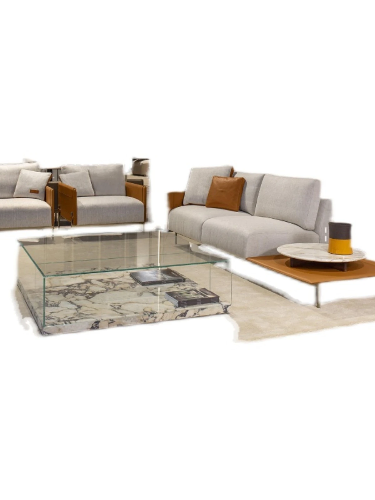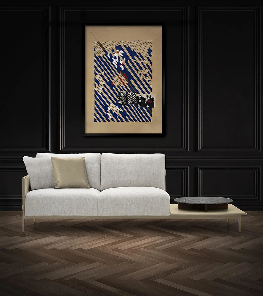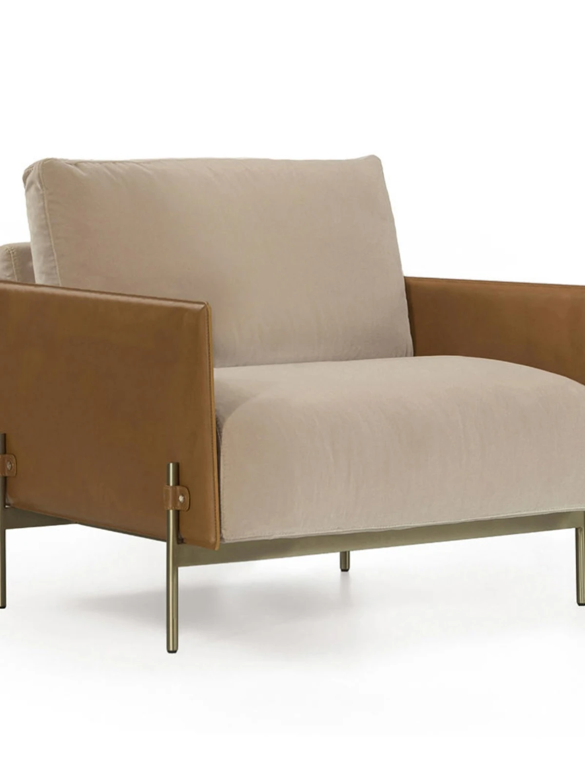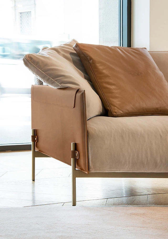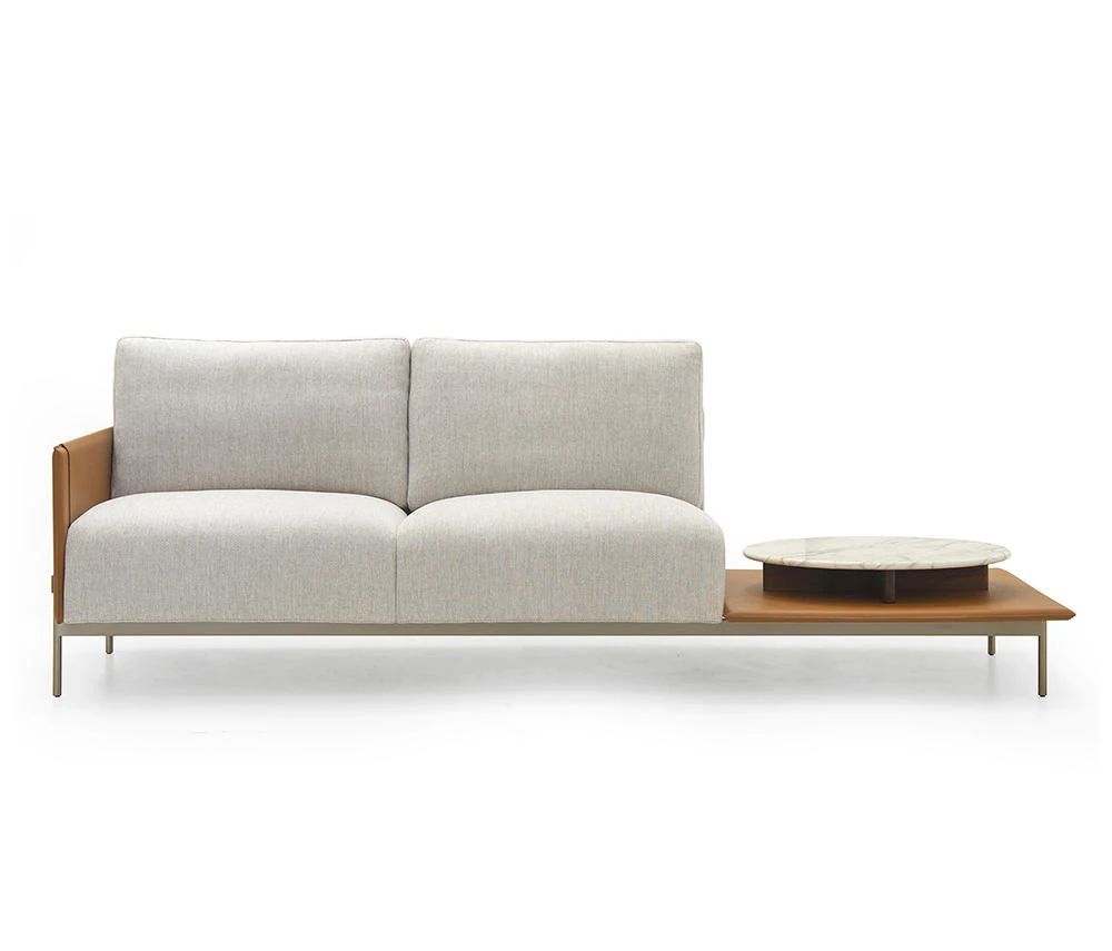 最新デザインのクリエイティブなメタルフレーム、チタンコーティングのレザーとコットンリネンを使用したショップ・民宿向けのラテックスソファ。おしゃれで快適な空間を演出します!