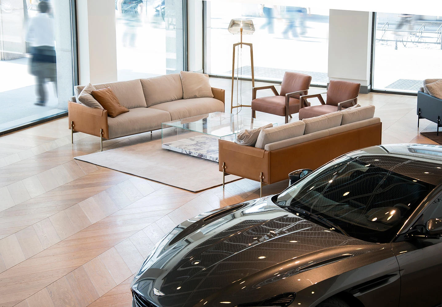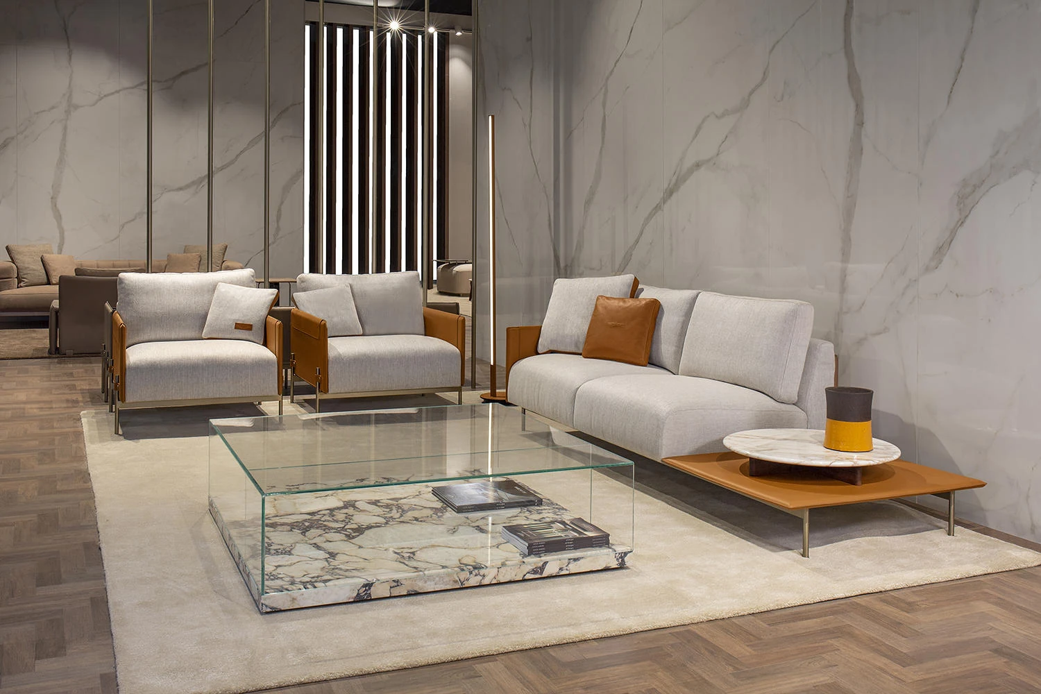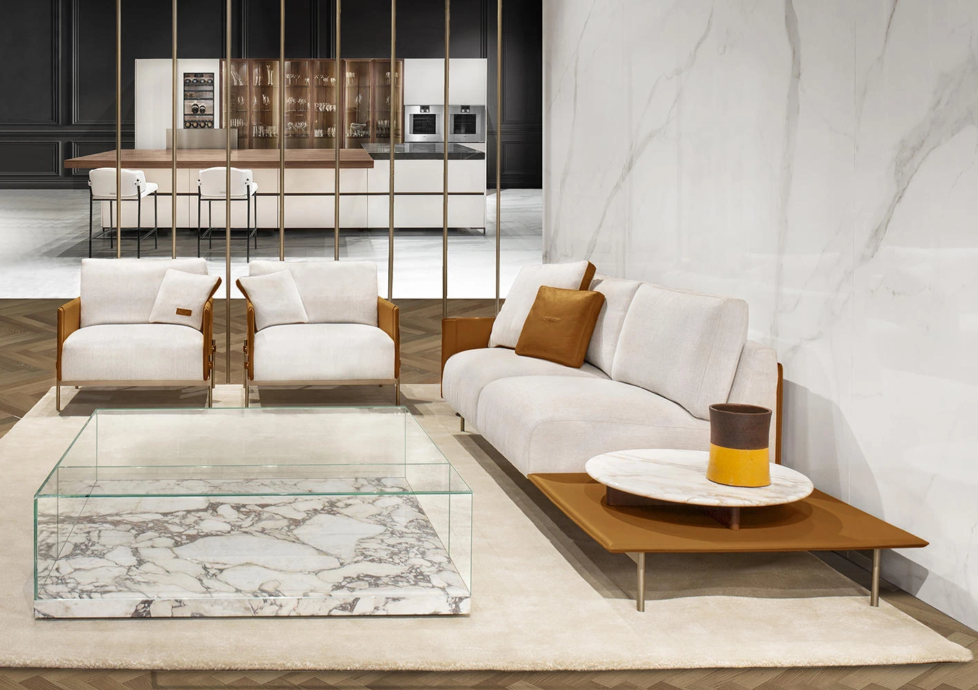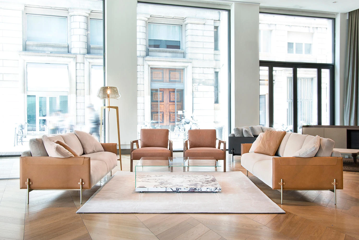 最新デザインのクリエイティブなメタルフレーム、チタンコーティングのレザーとコットンリネンを使用したショップ・民宿向けのラテックスソファ。おしゃれで快適な空間を演出します!