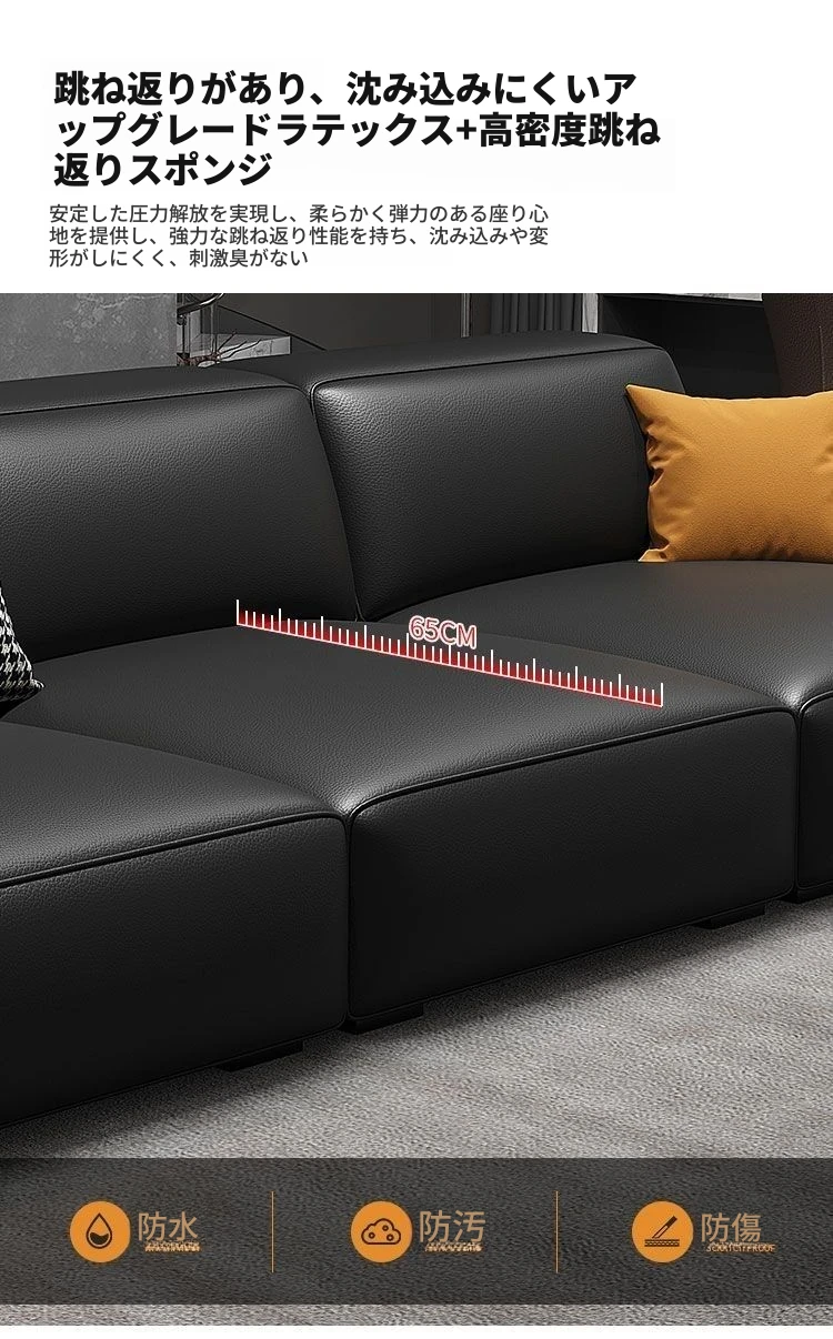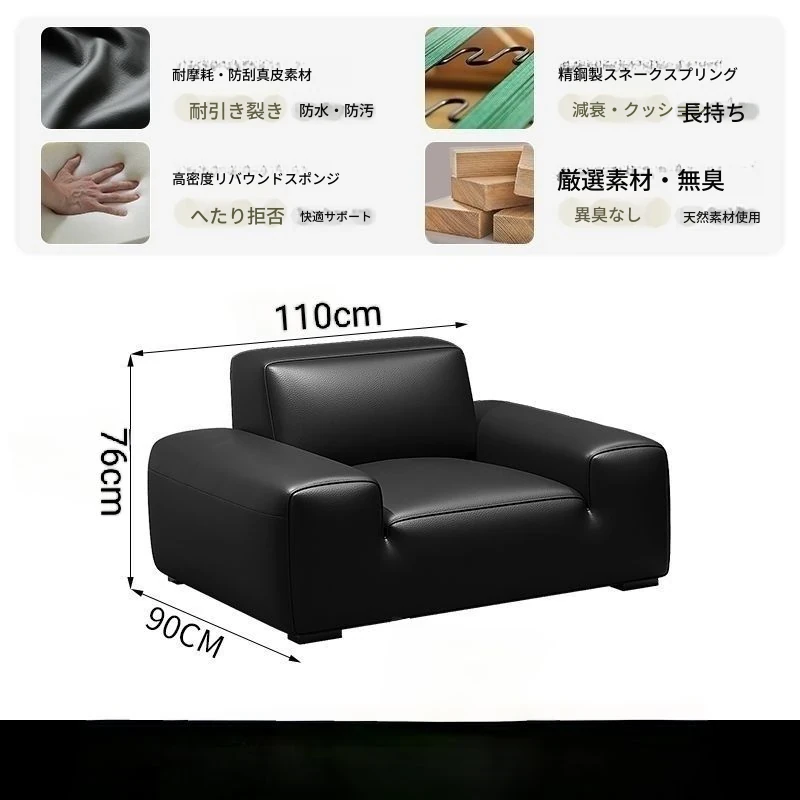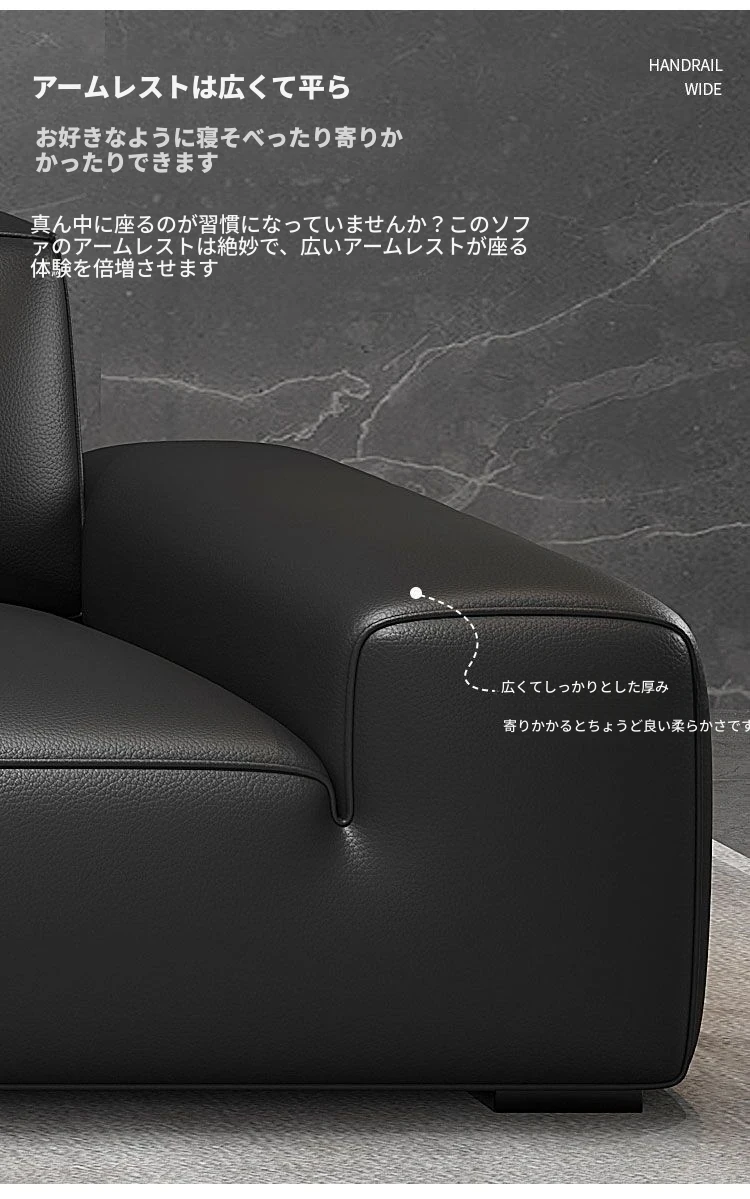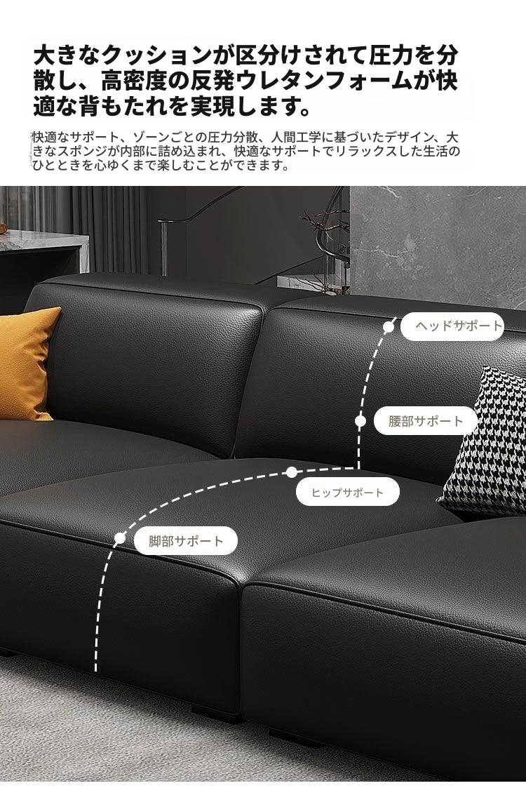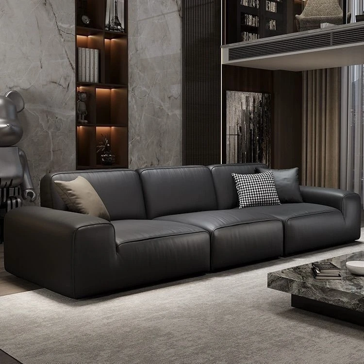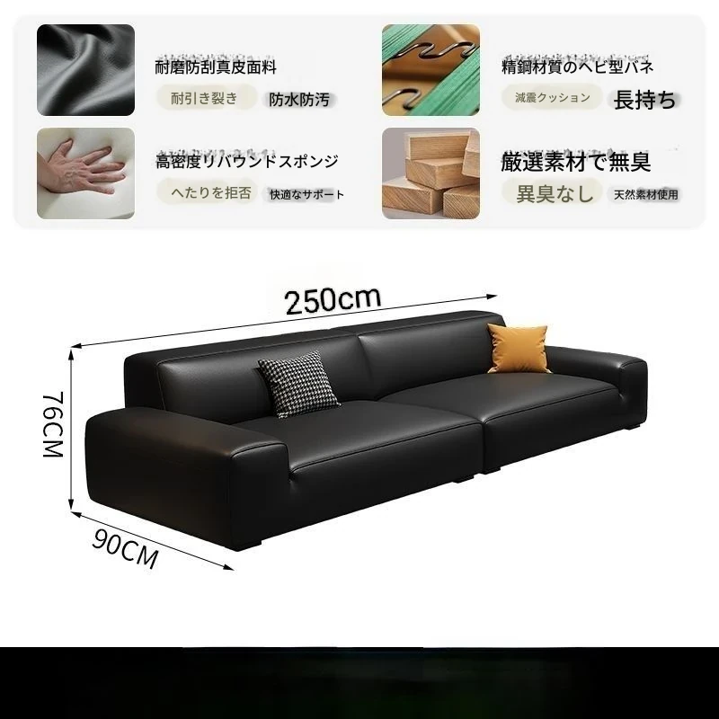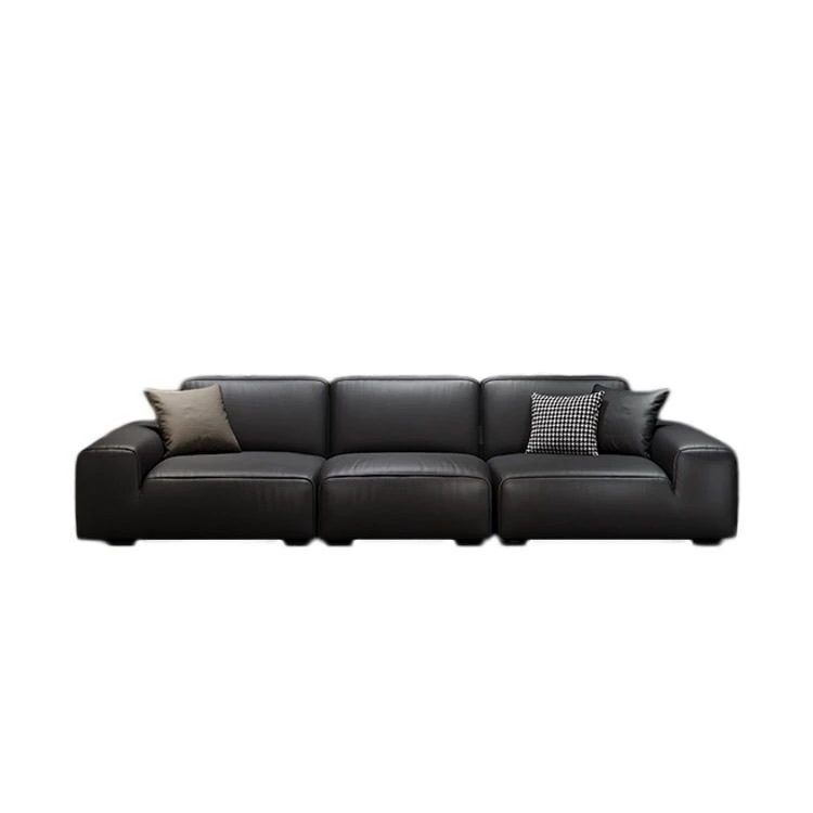 最新モデル!大黒牛革ソファ - イタリアンミニマルデザインの現代的なリビングルームにぴったり!本革のトーフブロック型、直排ラテックスのコンビネーションで、快適さとスタイルを両立!