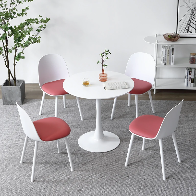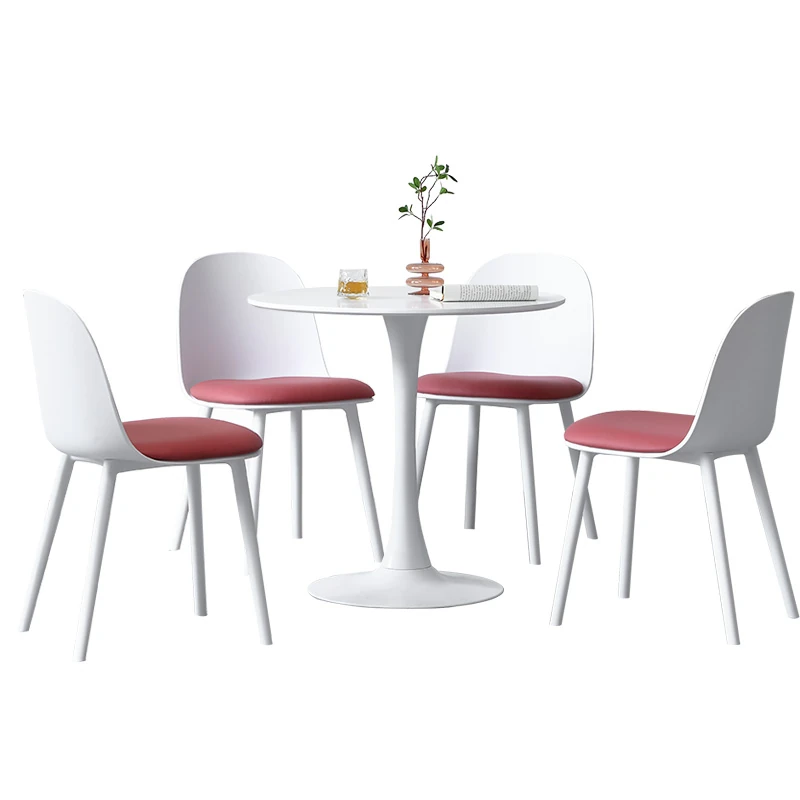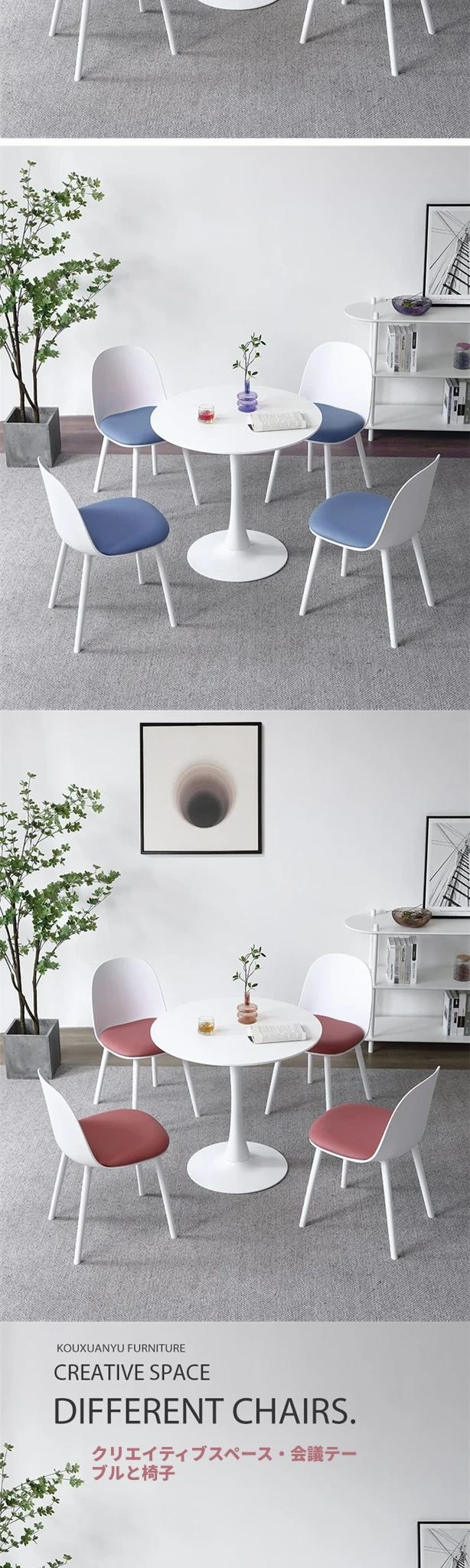 北欧風クリエイティブ会議テーブルセット|ビジネス相談やリラックスに最適な丸テーブルと4脚の椅子|おしゃれで機能的なデザインで、商談をよりスムーズに!