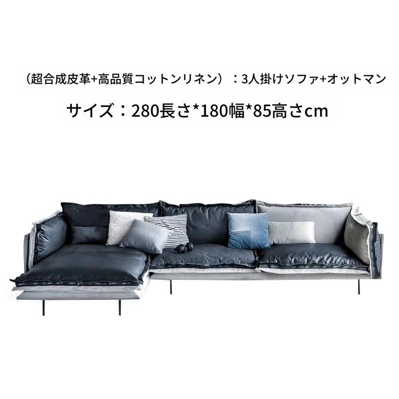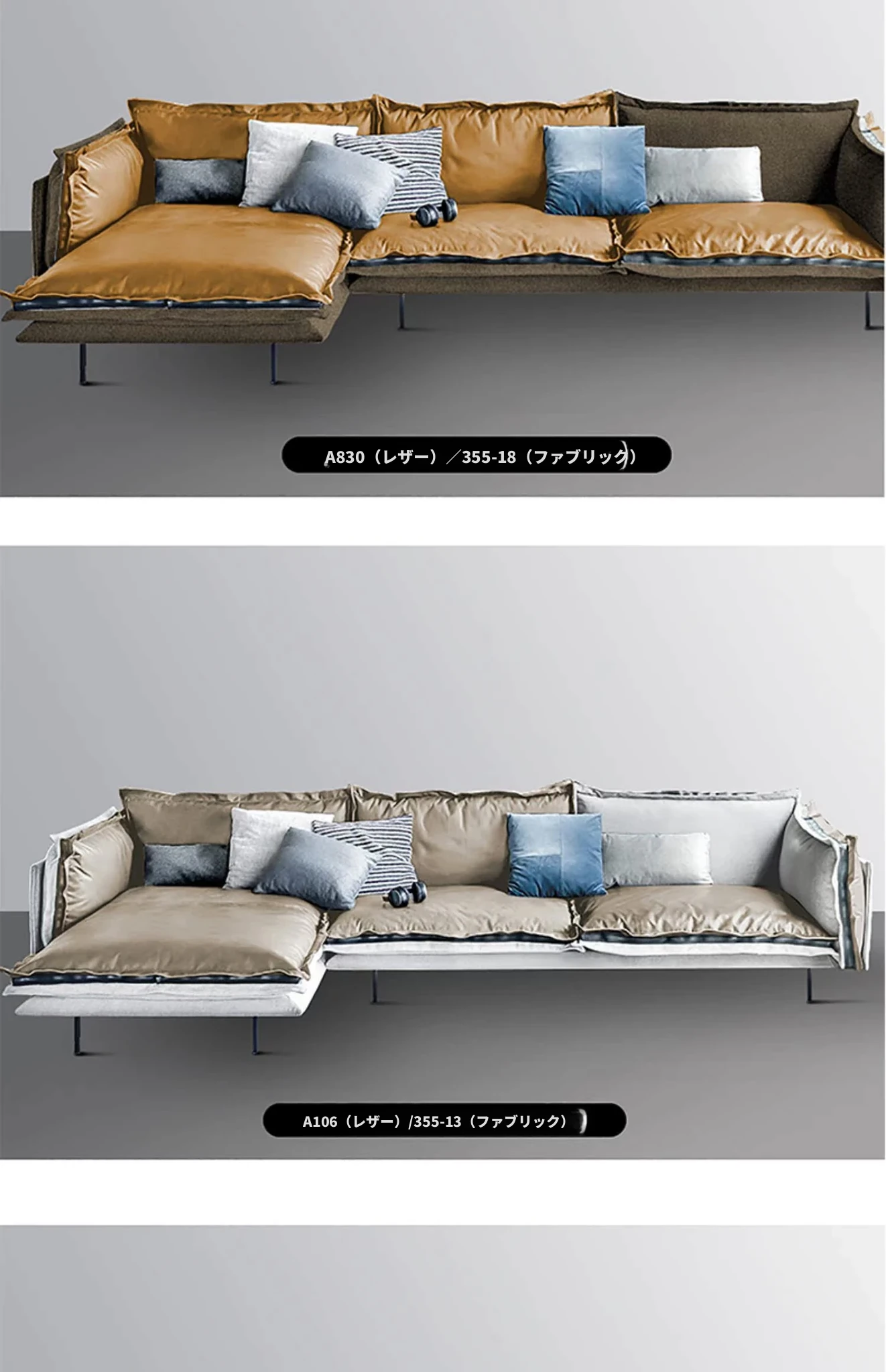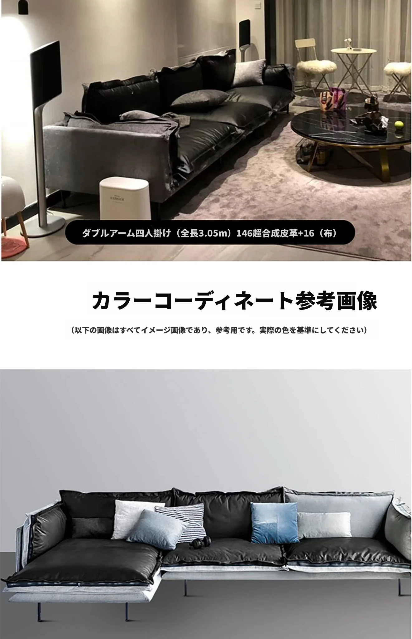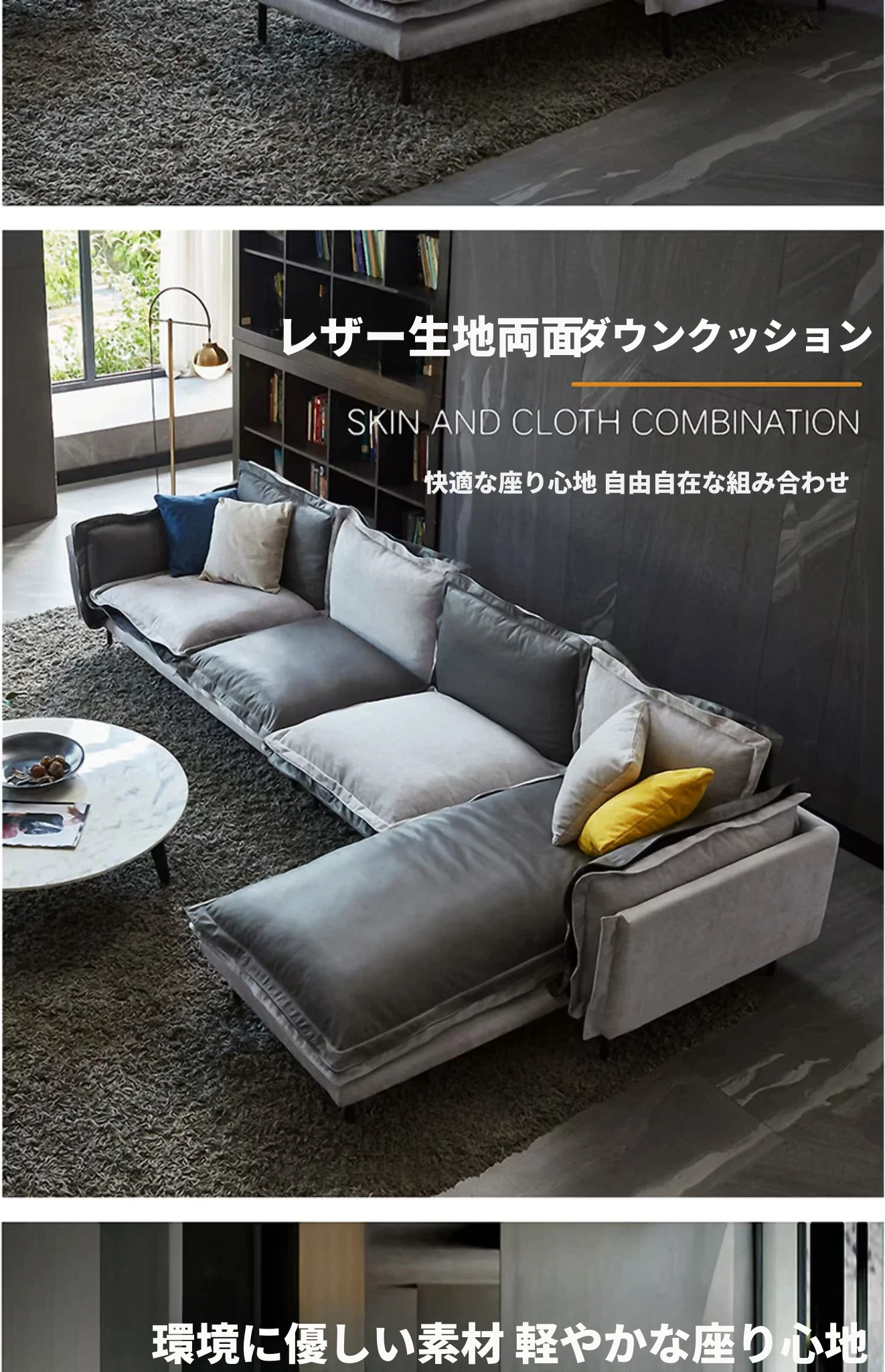 北欧インダストリアル風のミニマリストレザー&ファブリックダウンソファ|イタリアンラグジュアリー、サイズに応じたシンプルでモダンなリビングルームコンビネーション!おしゃれで機能的な空間を演出します。