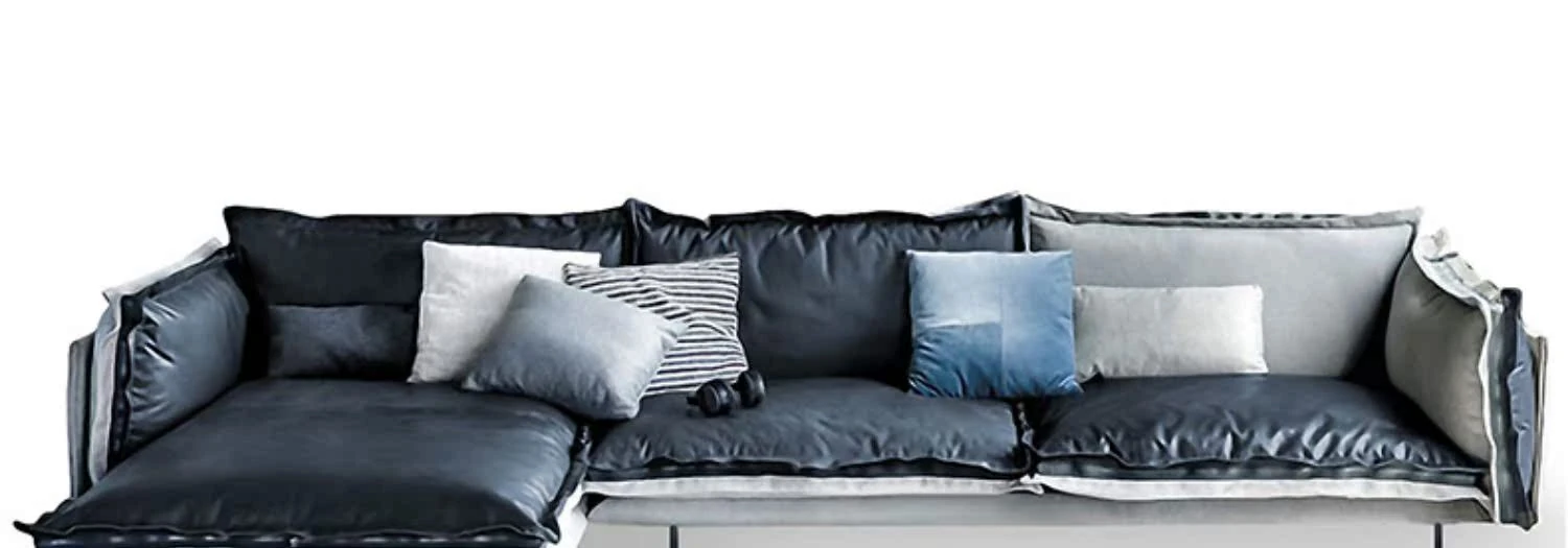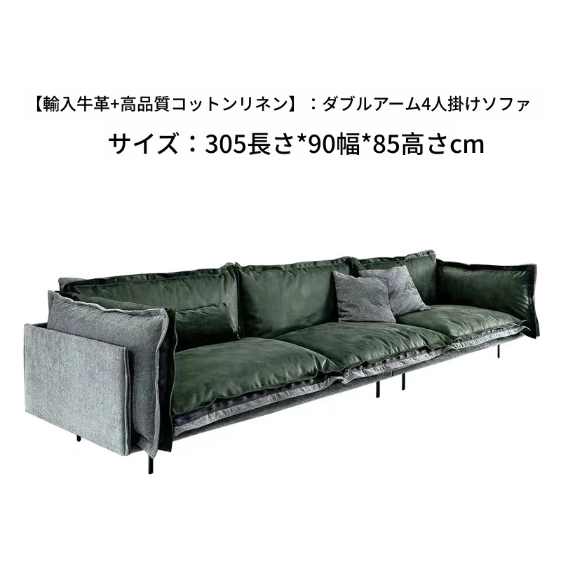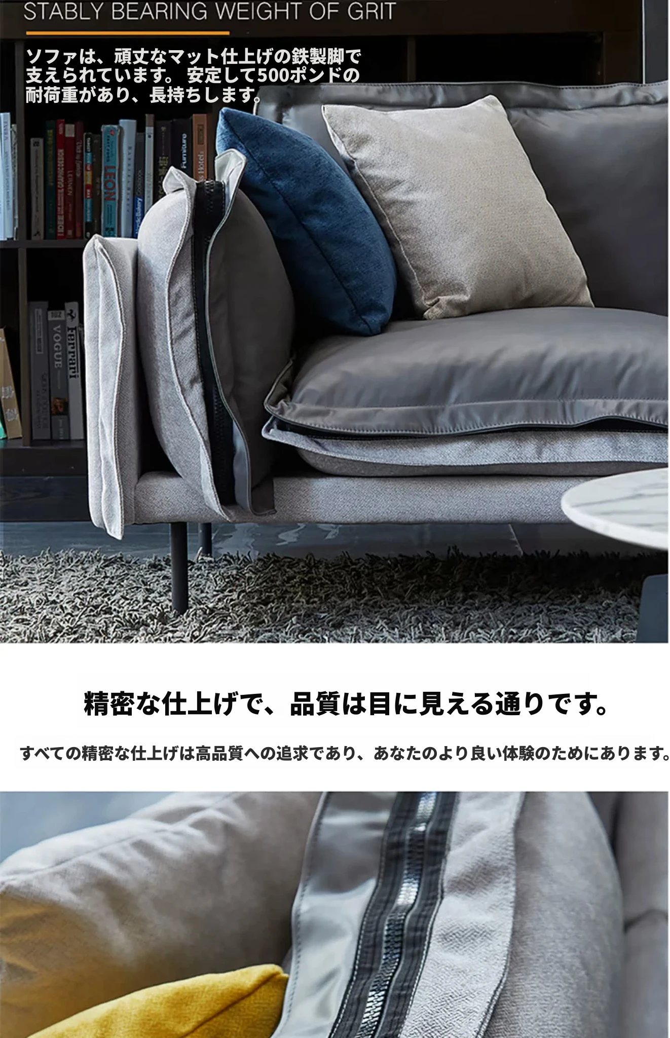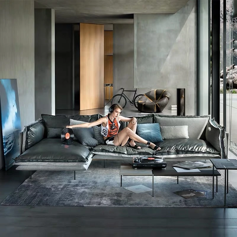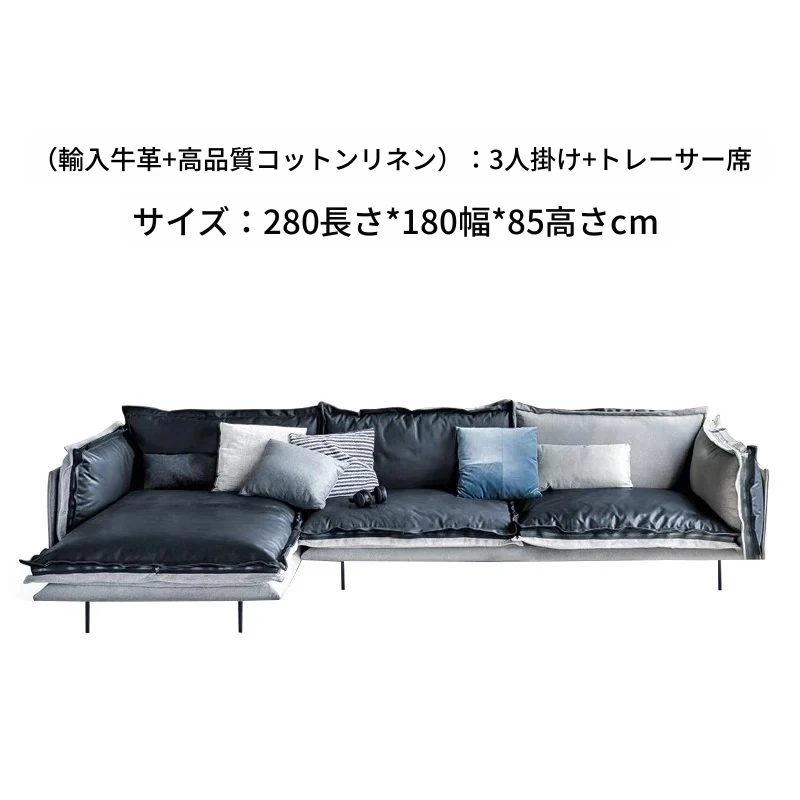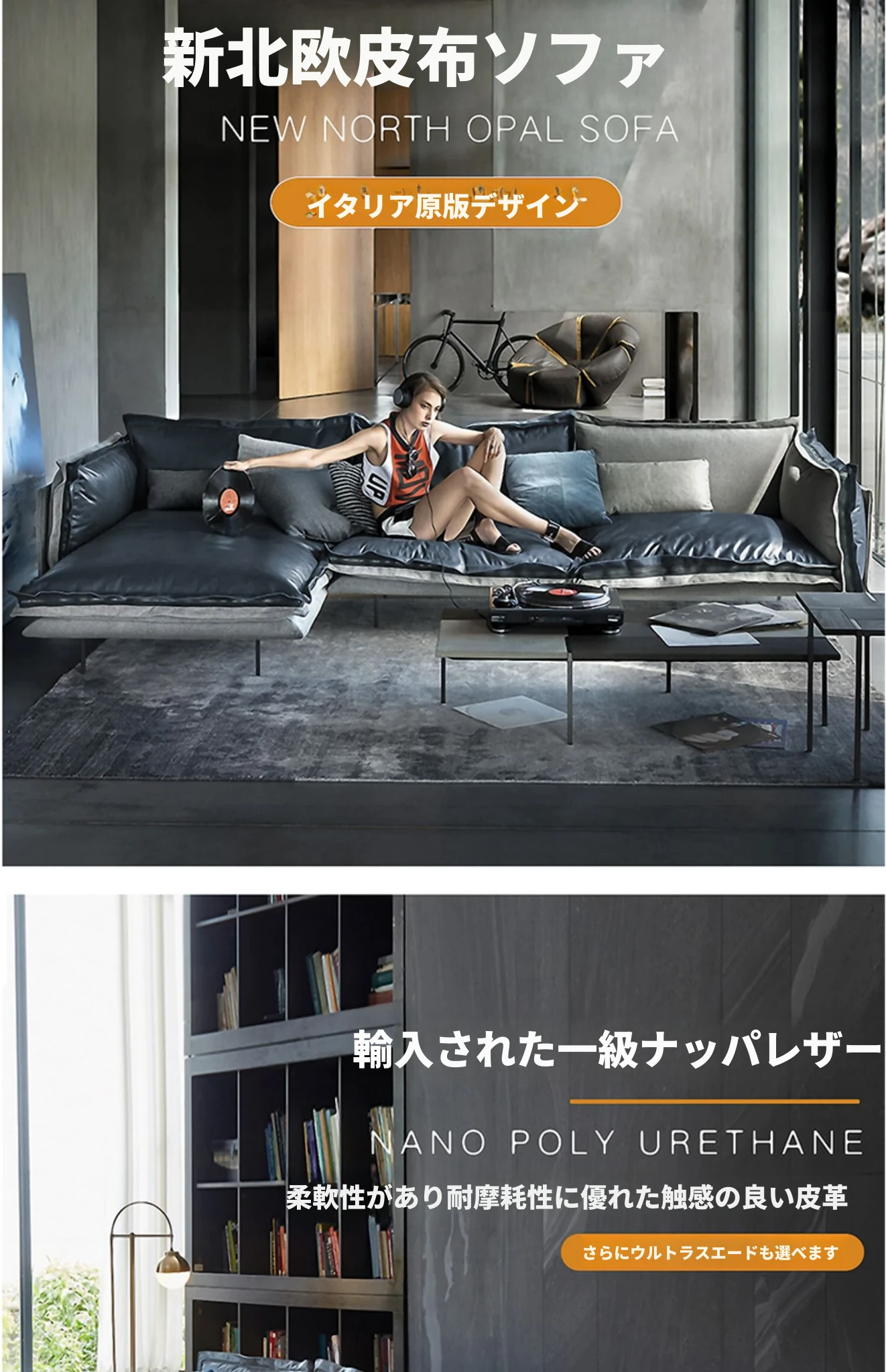 北欧インダストリアル風のミニマリストレザー&ファブリックダウンソファ|イタリアンラグジュアリー、サイズに応じたシンプルでモダンなリビングルームコンビネーション!おしゃれで機能的な空間を演出します。