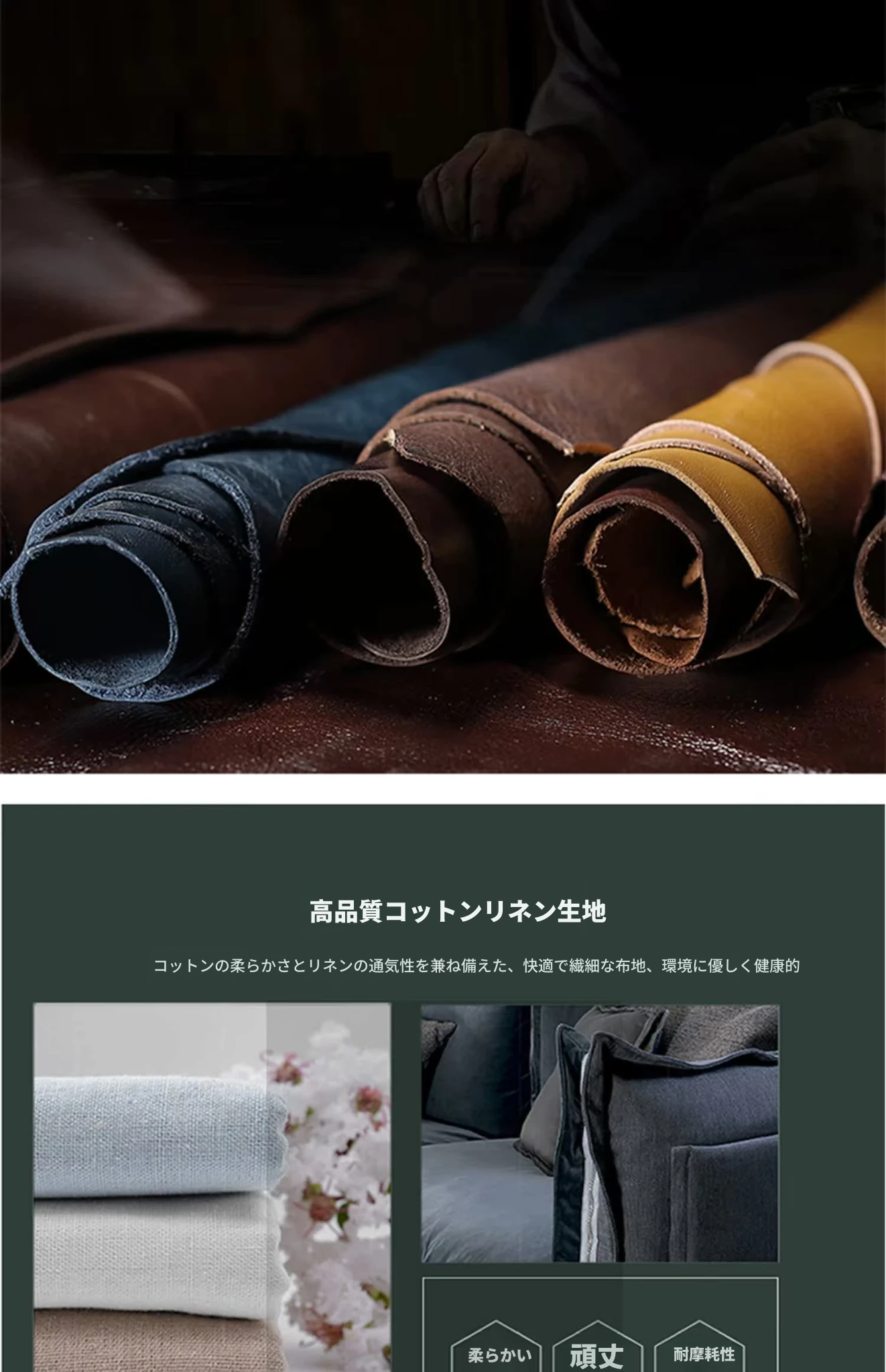 3+貴妃位[輸入牛革+高品質コットンリネン]