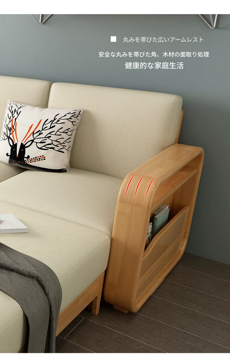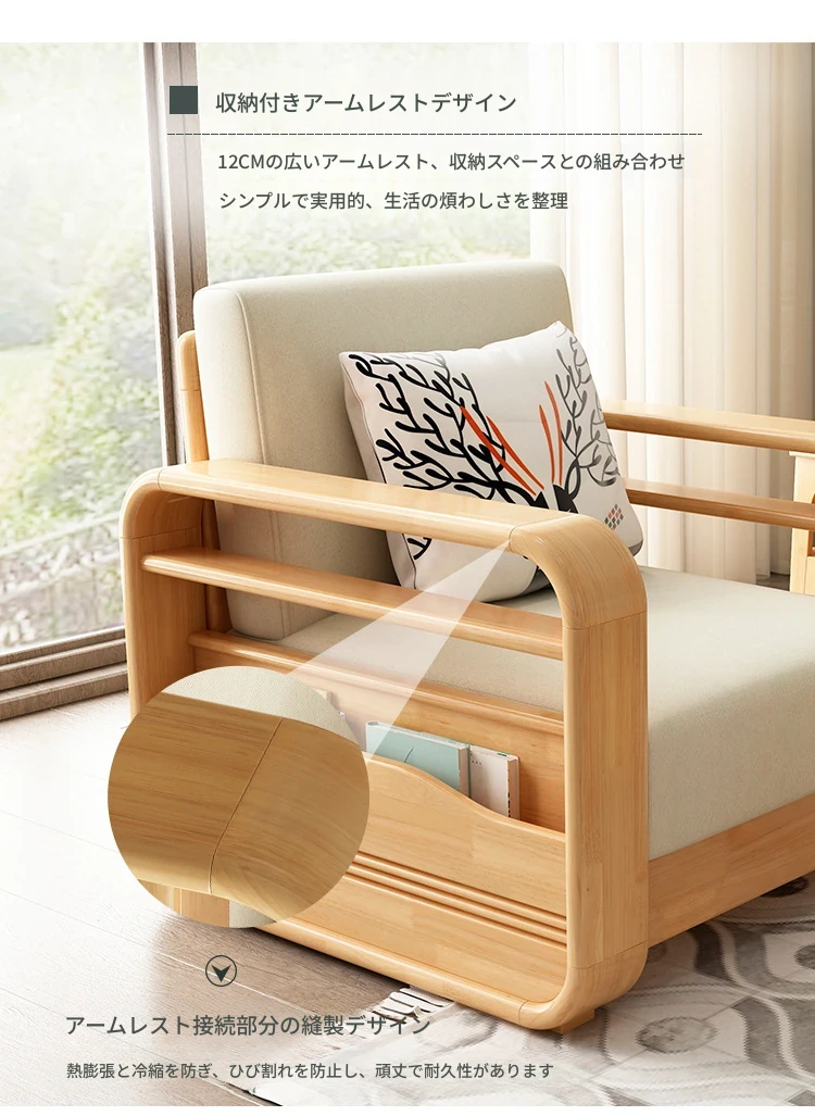 北欧スタイルの無垢材ソファ!冬夏どちらでも使える高収納ボックス付き、リビングにぴったりのコンパクトでシンプルなモダンデザイン。全て無垢材を使用した家庭向け、快適な空間を演出します!