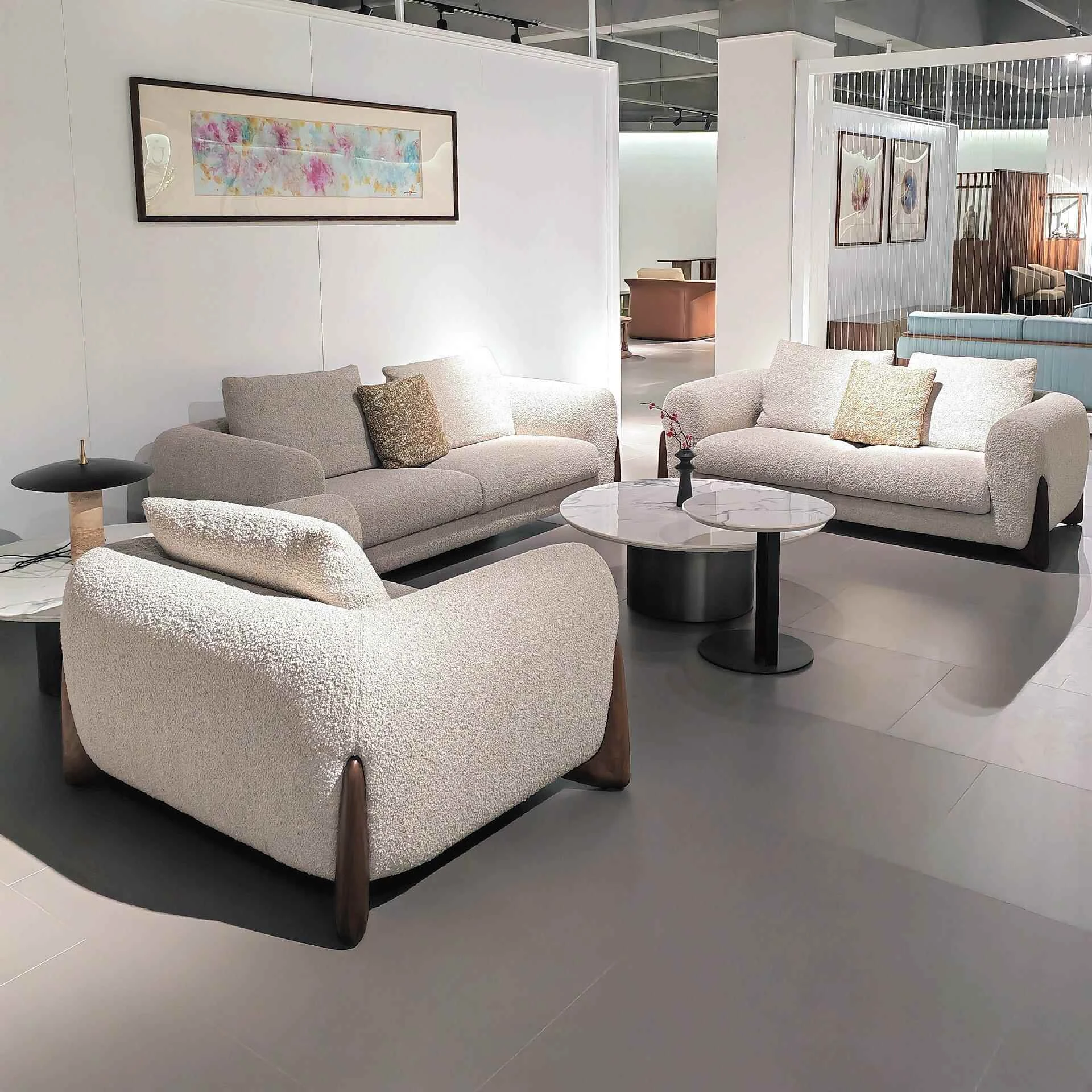 イタリアンファブリックソファ 大リビング向け シンプルでラグジュアリーなデザイン 高級感溢れる真皮アーチソファ モダンな大空間にぴったり!