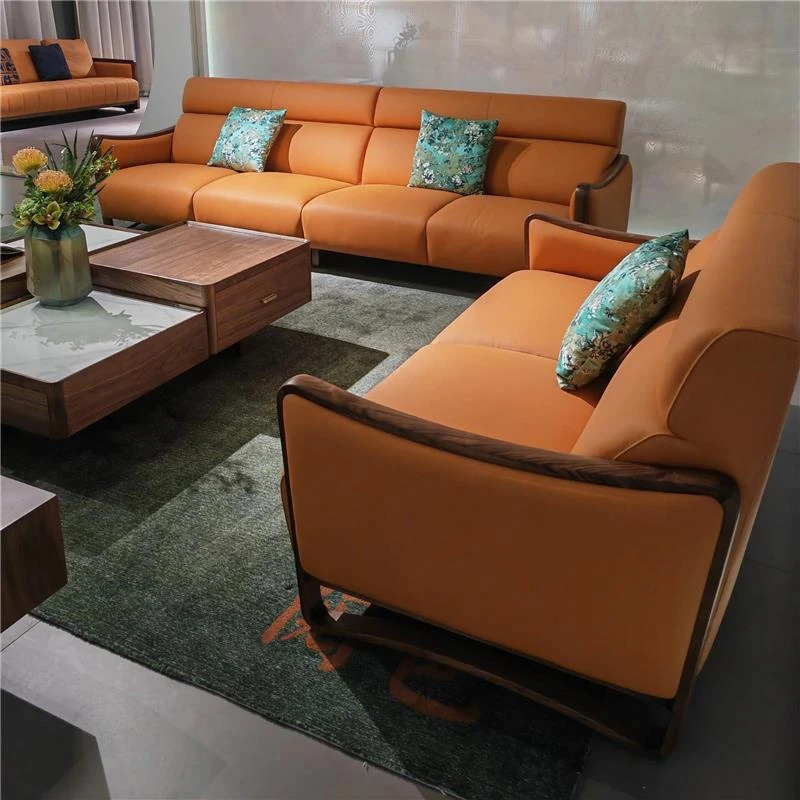 明文造木イタリアンスタイル軽奢大平面リビング用本革ソファー 二人掛け・三人掛け対応 - 上質なデザインで、居心地と贅沢さを両立。あなたのリビングを特別な空間に演出します。