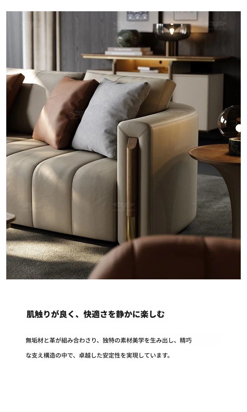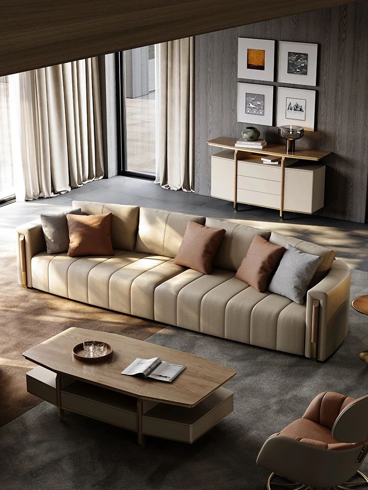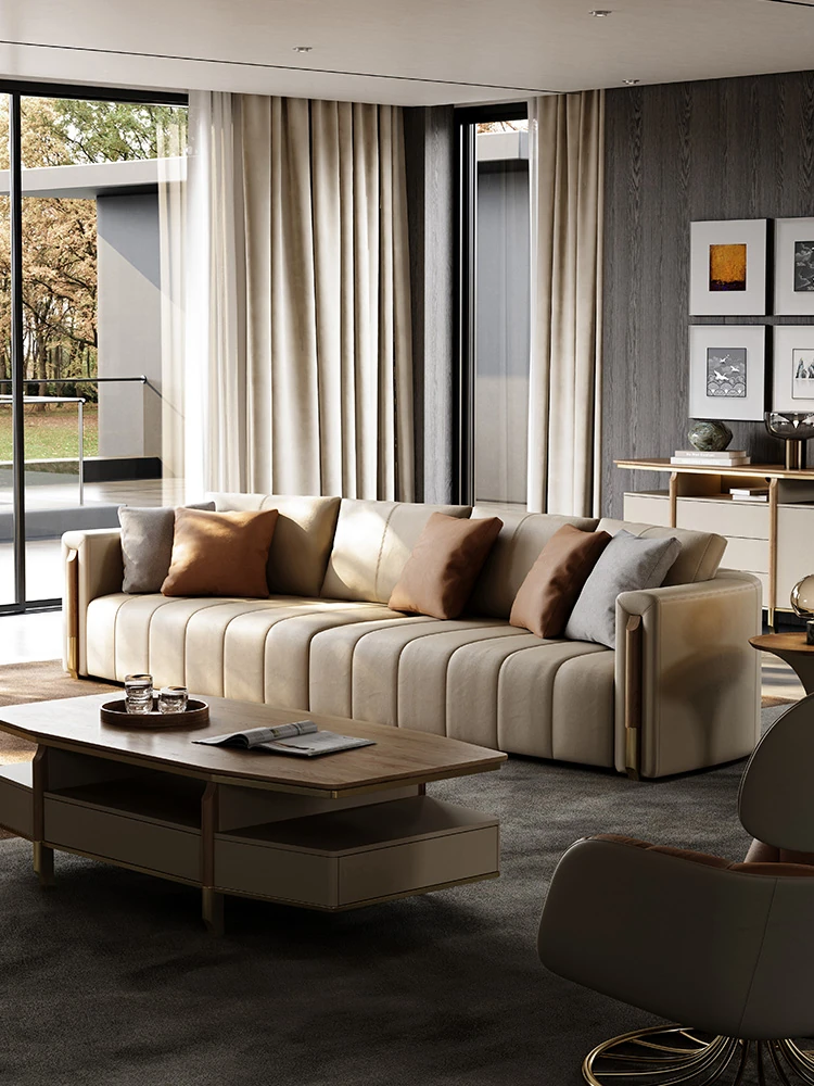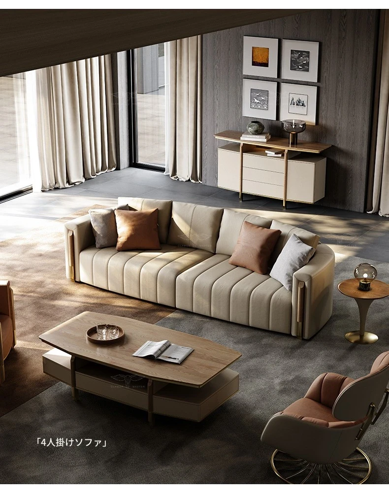 本革製ソファ 高級ヴィラ向け 2023年新作リビングルーム軽奢スタイルの直排ソファで、洗練された空間を演出。高品質な素材で贅沢なひとときをお楽しみください。