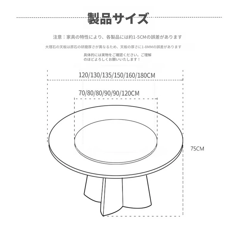 1.3メートル単独ダイニングテーブル【金剛大理石+全托】