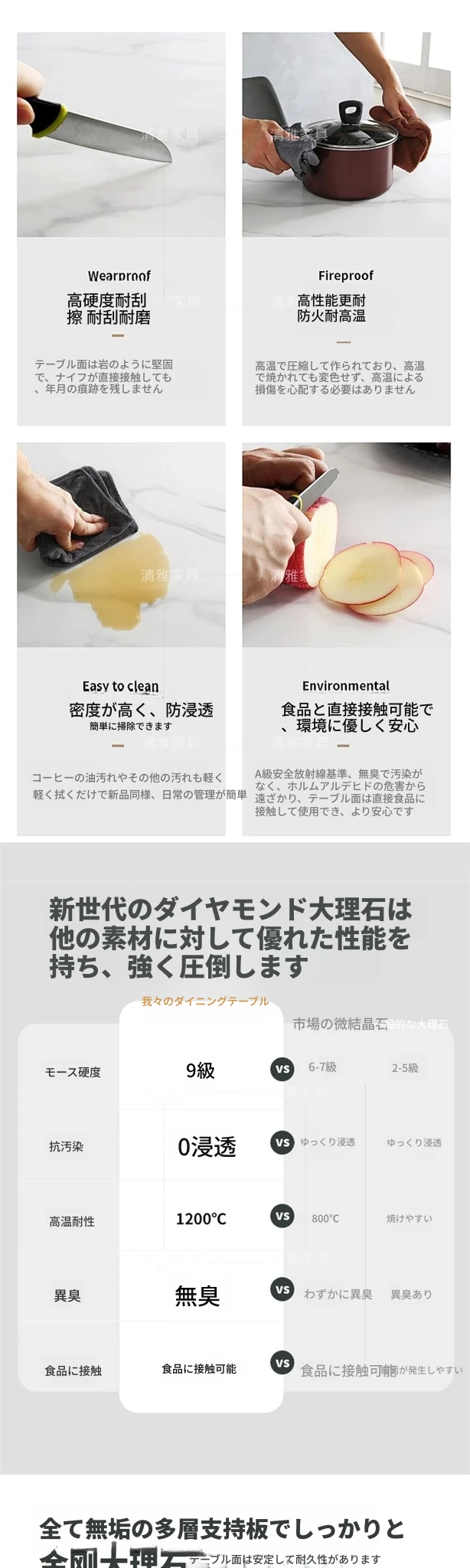 1.8*0.9メートル単独ダイニングテーブル【金剛大理石+全托】