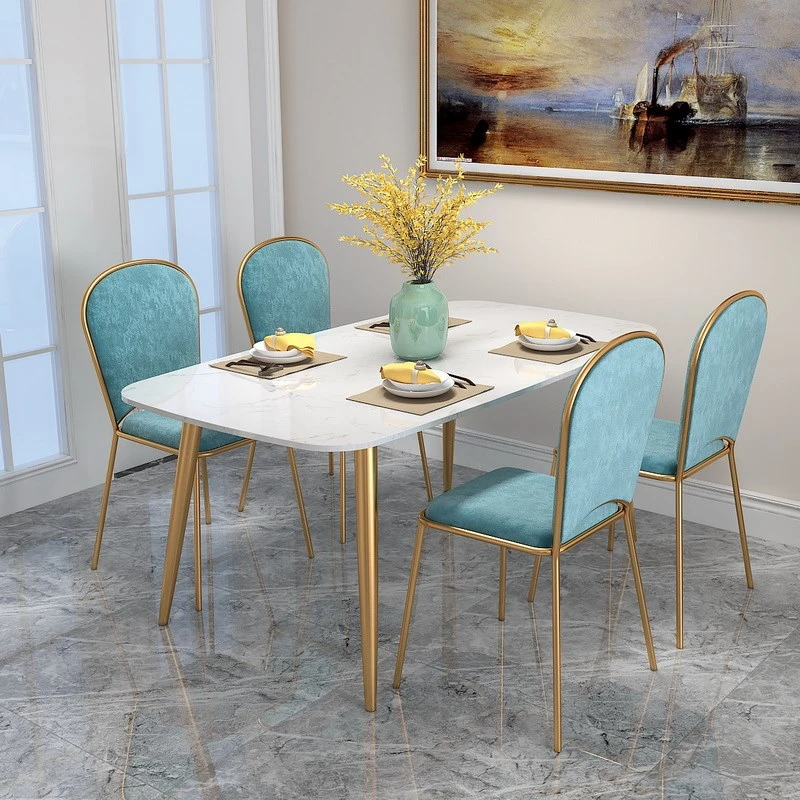 55.12 ins table + sapphire blue Net red chair [4 pieces]]