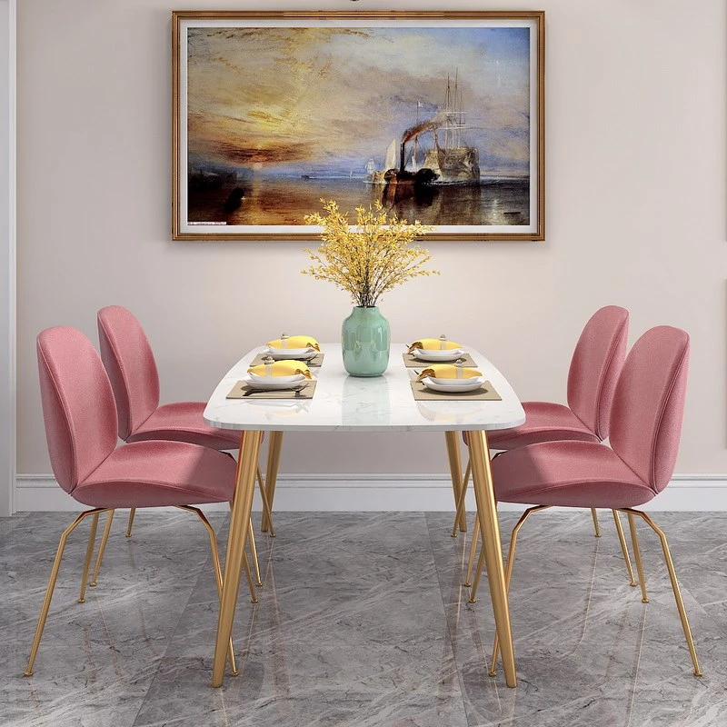 55.12 ins table + pink net red chair [4 pieces]]