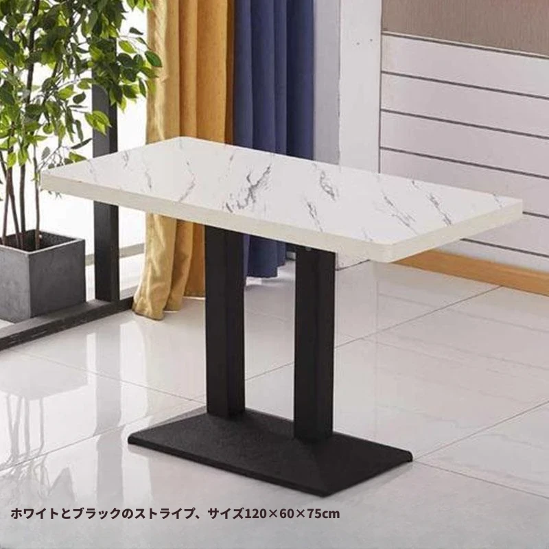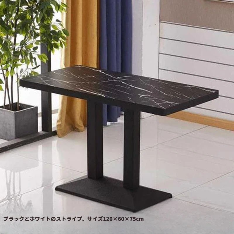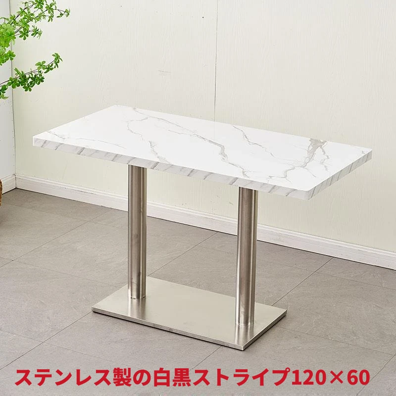 ステンレス脚のロングテーブル白黒模様 120*60