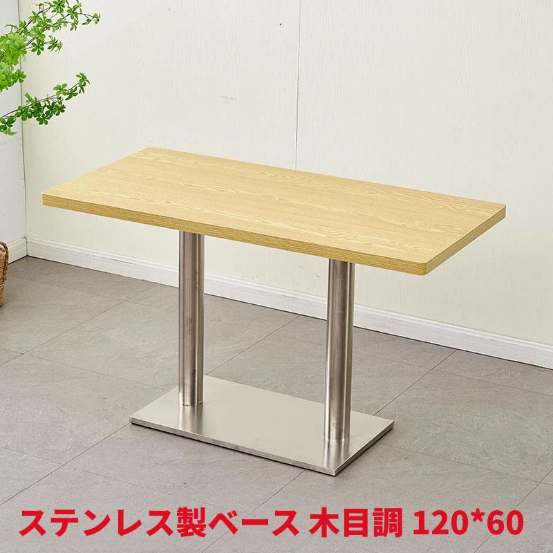 ステンレス脚のロングテーブル木目調 120*60