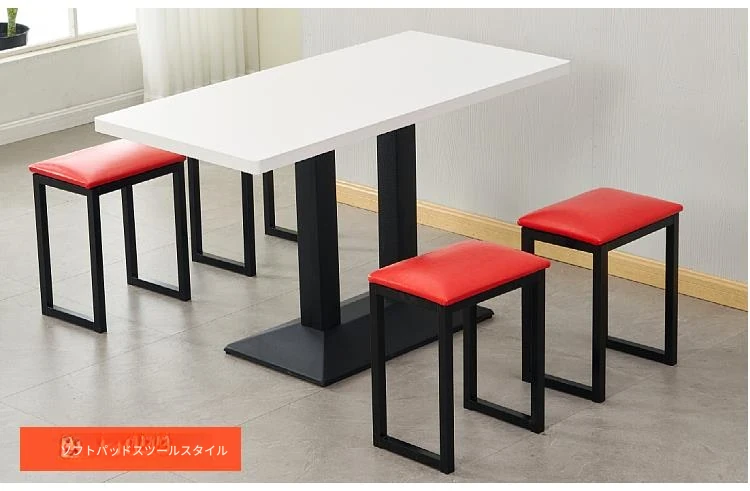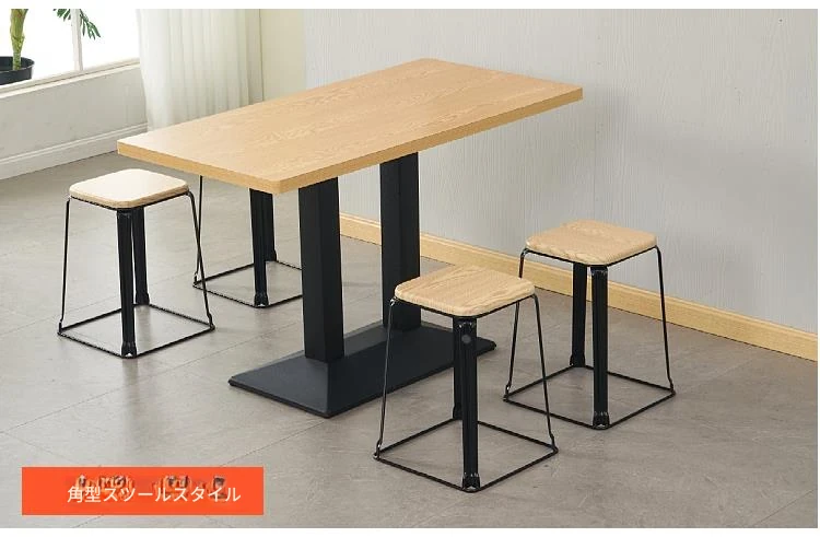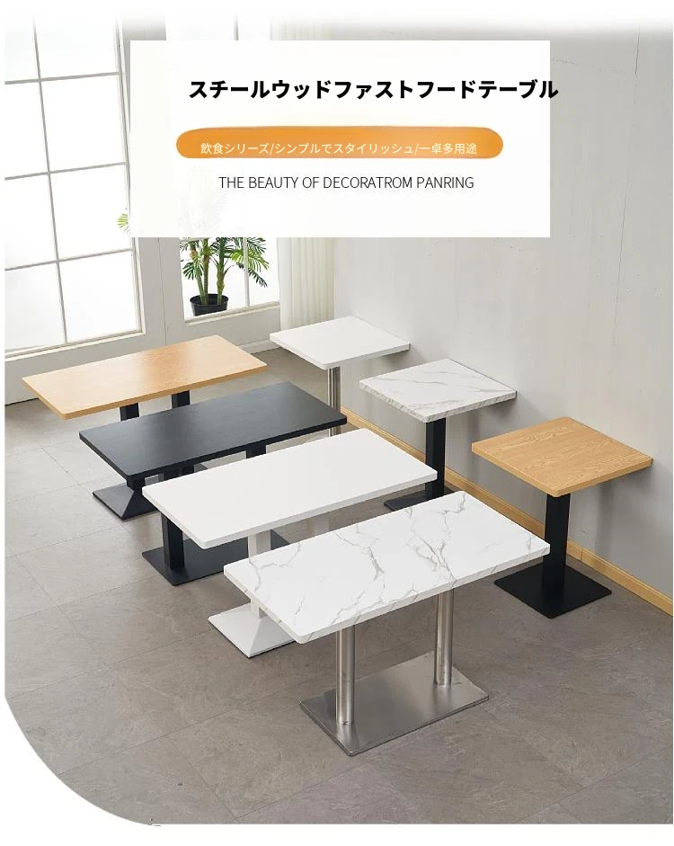 商用長方形テーブルセット - シンプルでスタイリッシュなデザインのカフェ・軽食店向け!ミルクティー、コーヒー、ファストフード、麺料理、朝食にも最適。おしゃれな空間を演出するテーブル&チェアの組み合わせ。