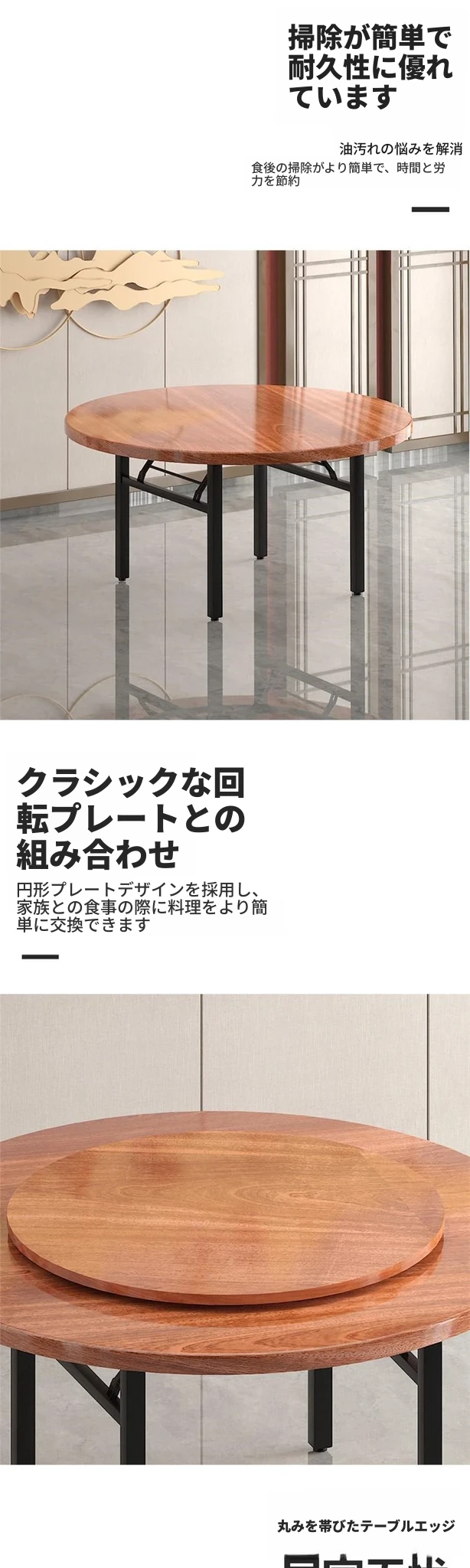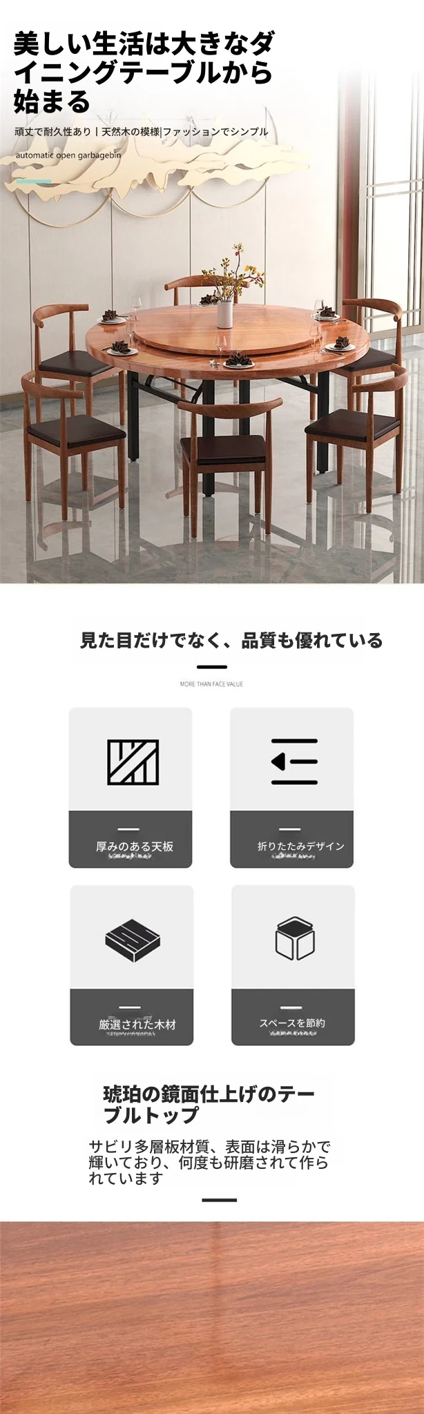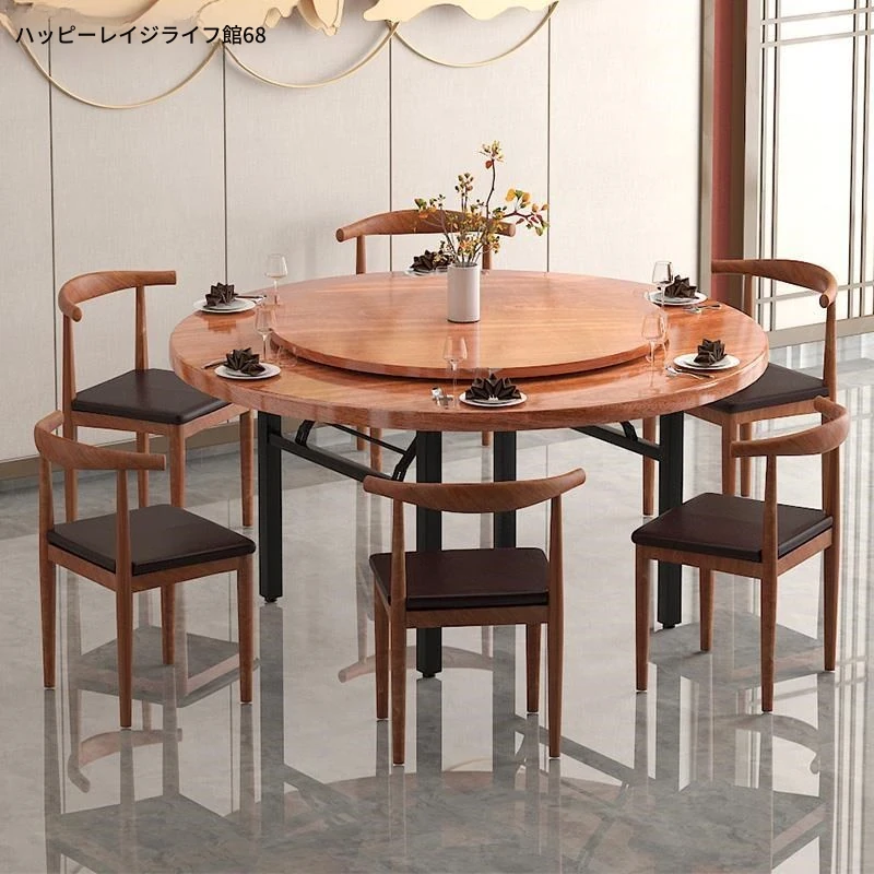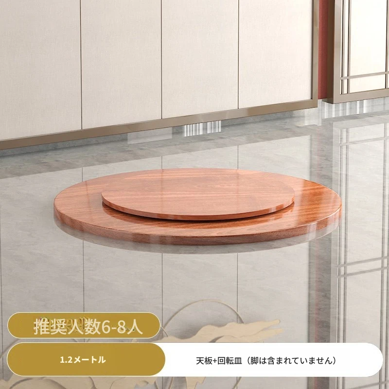 円形デザインのダイニングテーブル - 高品質無垢材使用、回転式トレイ付き!家庭、レストラン、大排档、夜食屋に最適!オシャレで機能的なテーブルで、食事をもっと楽しもう!