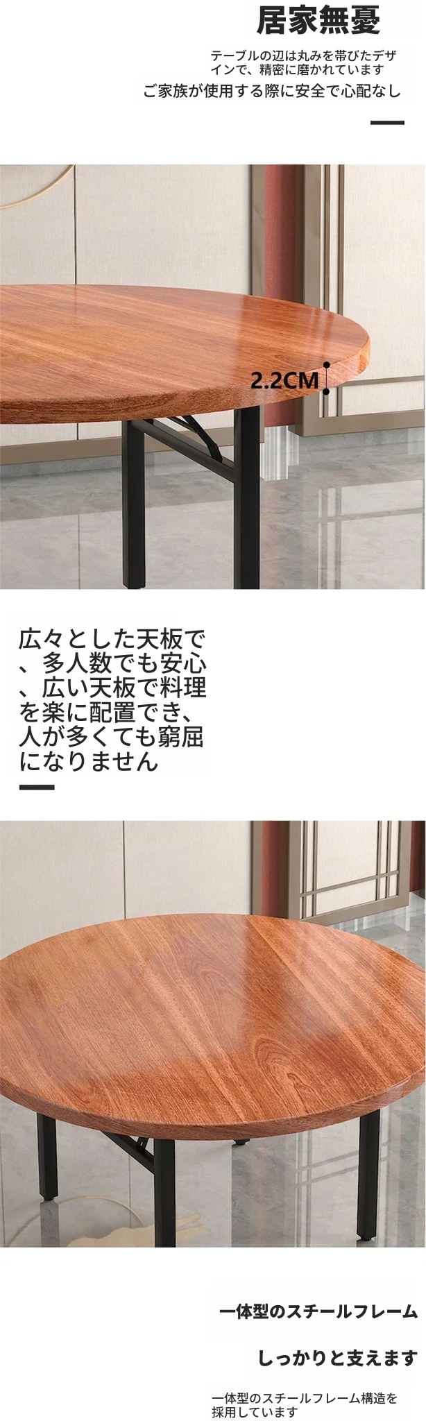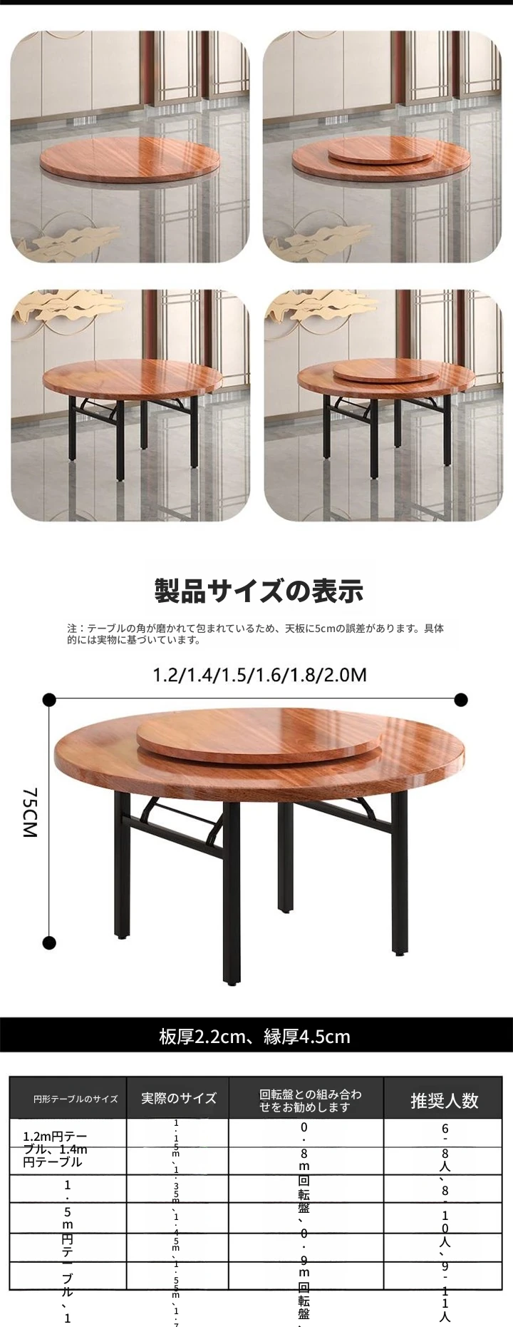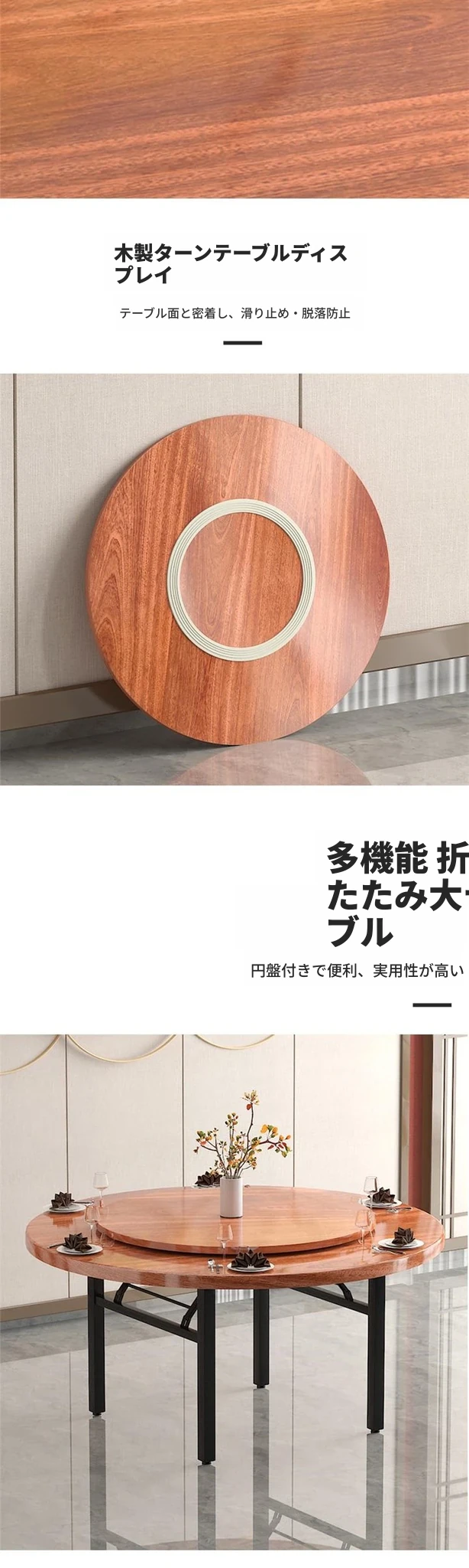 円形デザインのダイニングテーブル - 高品質無垢材使用、回転式トレイ付き!家庭、レストラン、大排档、夜食屋に最適!オシャレで機能的なテーブルで、食事をもっと楽しもう!