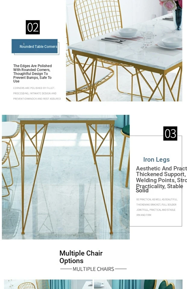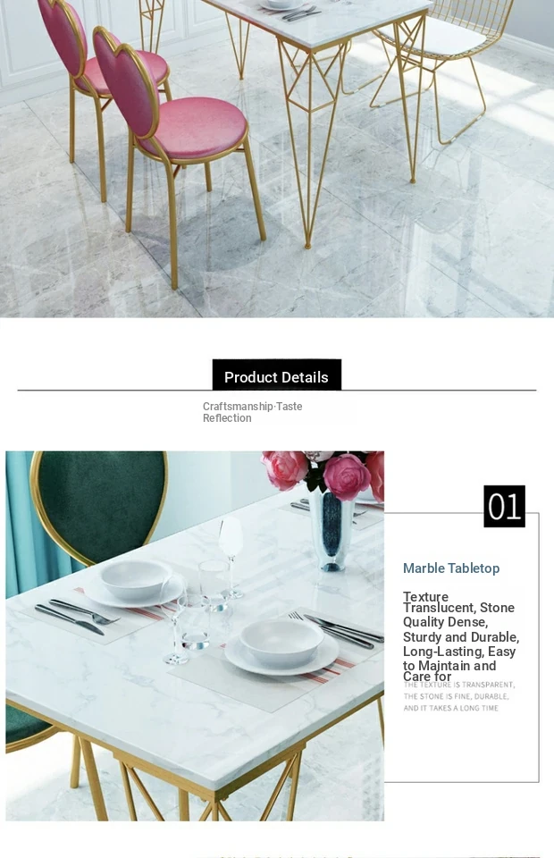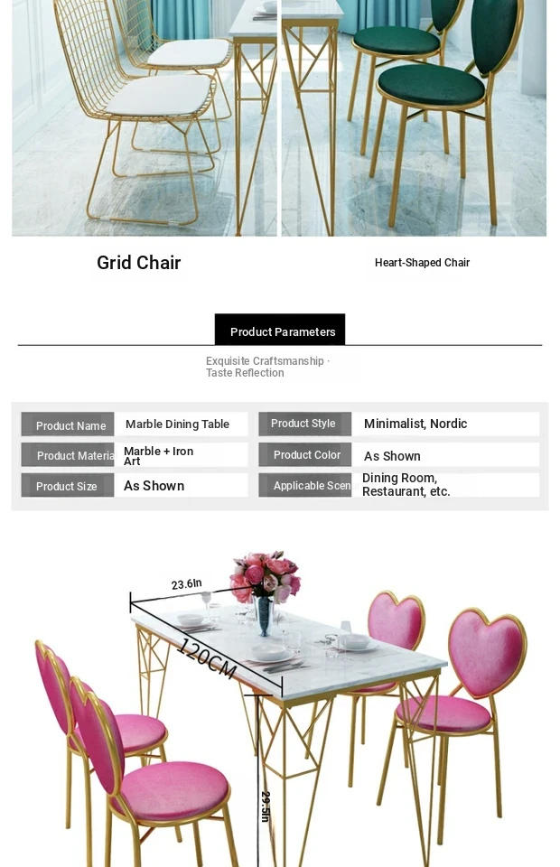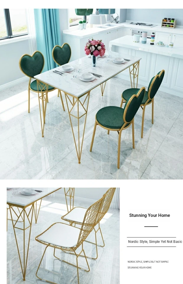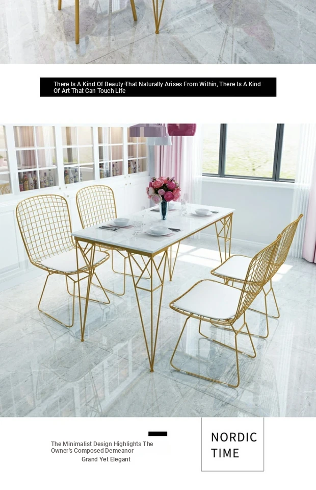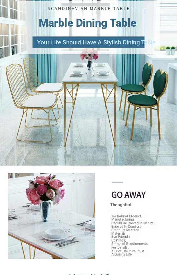 Scandinavian Minimalist Marble Dining Table Set for Small Spaces - Modern Rectangular Iron Frame Table with Ceramic Top, Perfect for Stylish Home Dining.