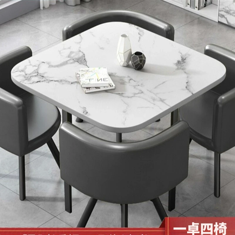 擬石白円面 + 灰布椅 1テーブル4椅子80*80*75