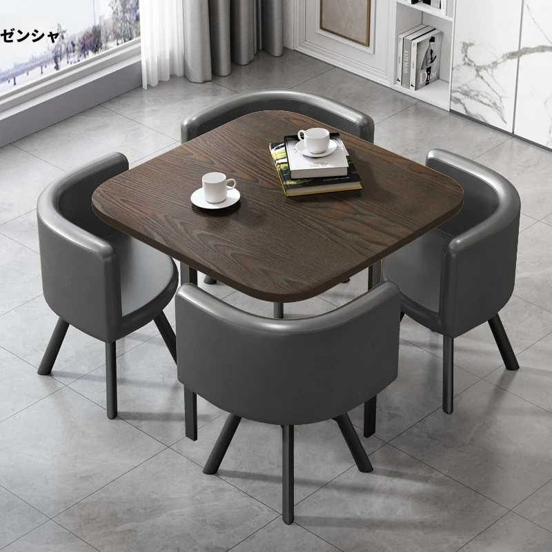 灰方 + 灰皮椅 1テーブル4椅子80*80*75