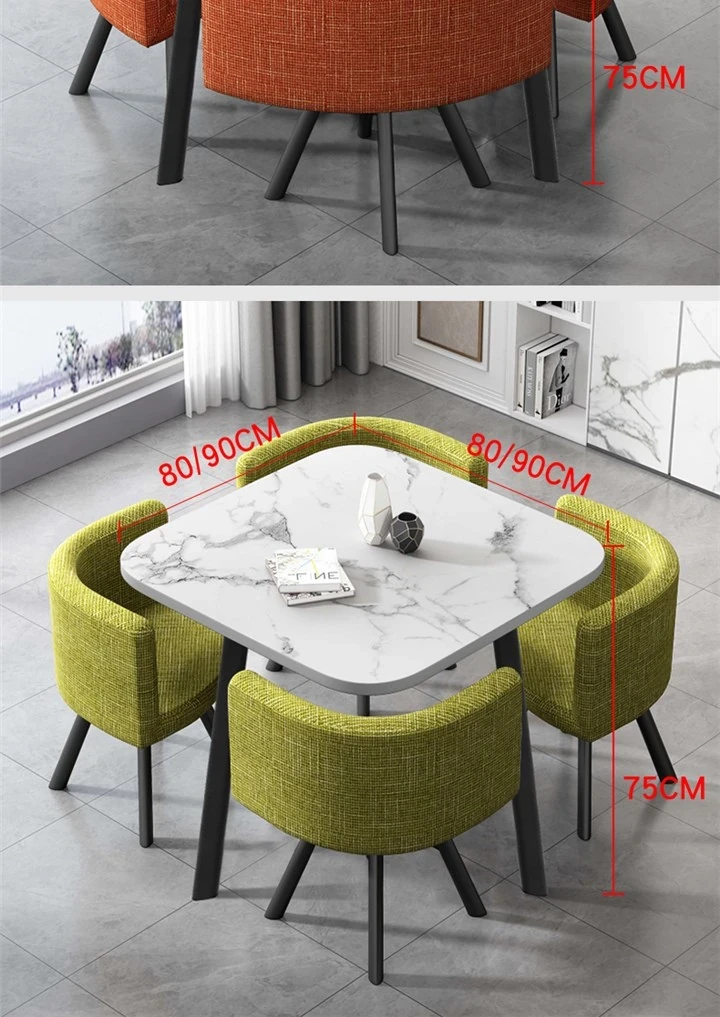 擬石白面 + 緑布椅 1テーブル4椅子80*80*75