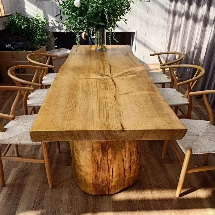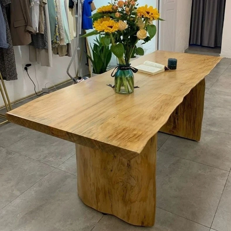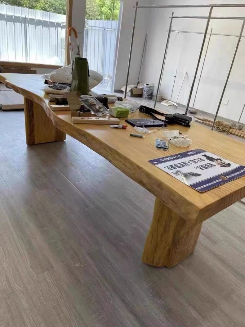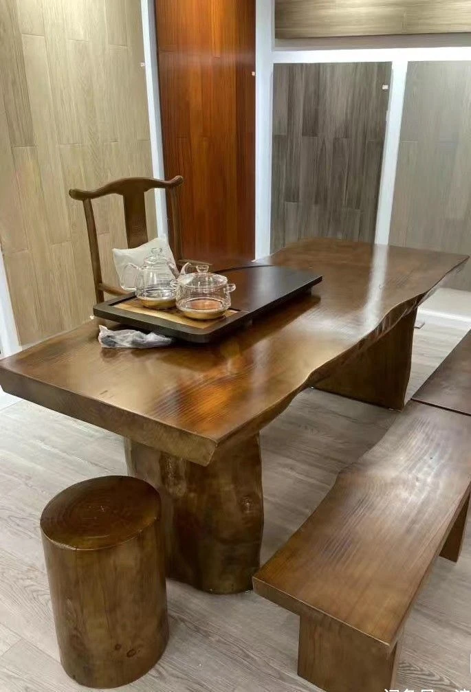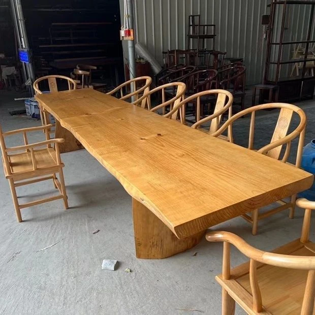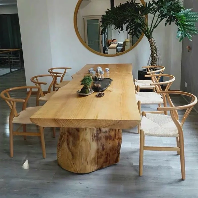 シンプルな無垢材の大板テーブル|お茶や読書に最適!木製オフィス会議テーブルセット|洽談や長時間の作業にもぴったりなロングテーブル&ベンチ!快適な空間を演出します。