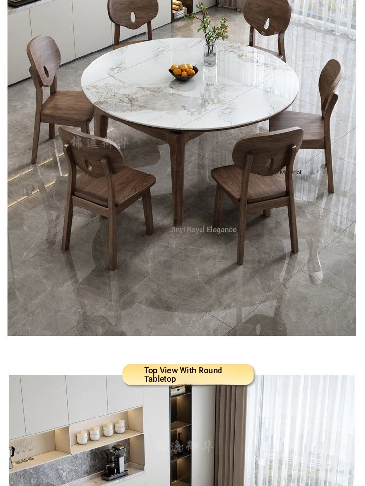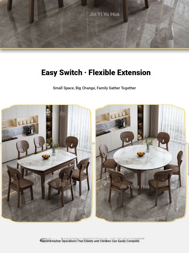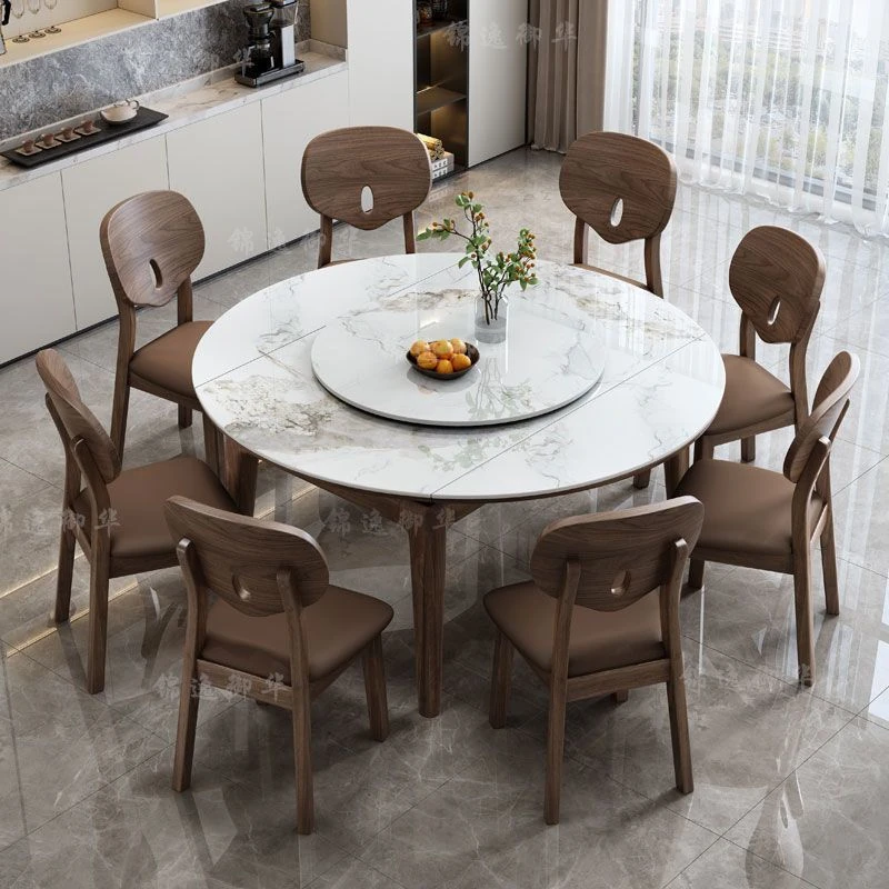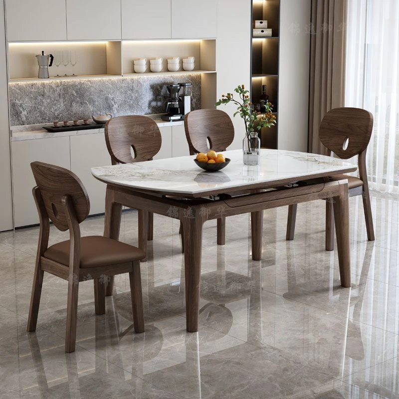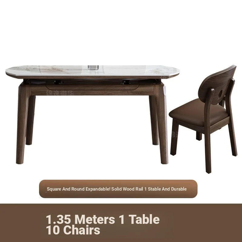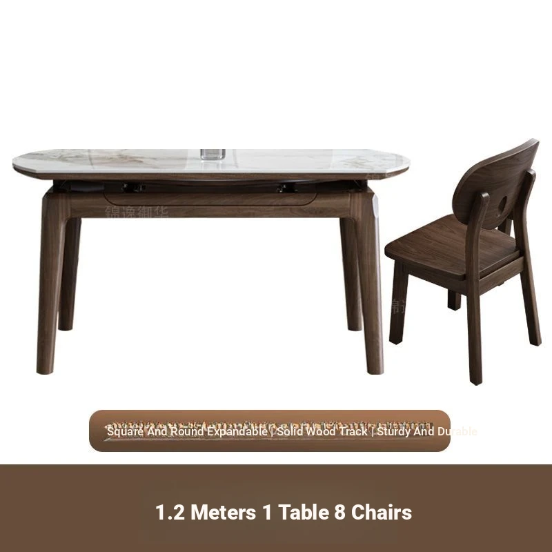 Solid Black Walnut Extendable Dining Table and Chairs Set for Small Living Spaces - Versatile Round Table for Home Use