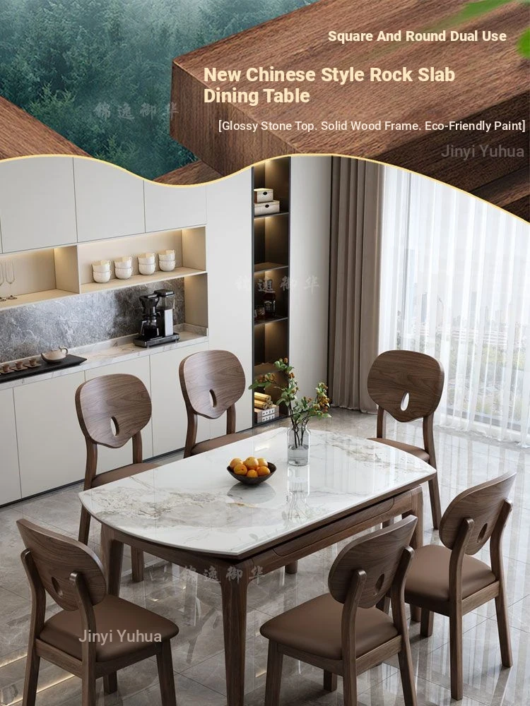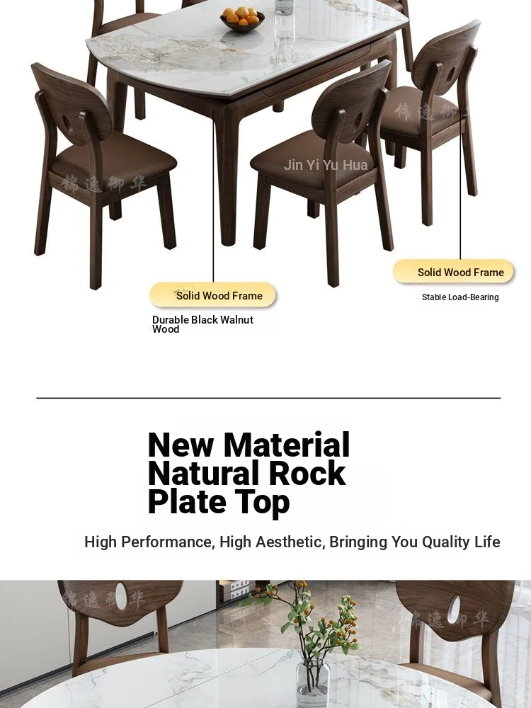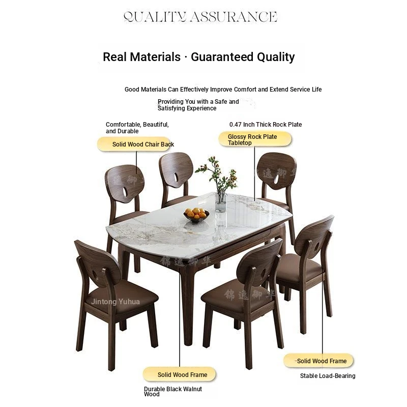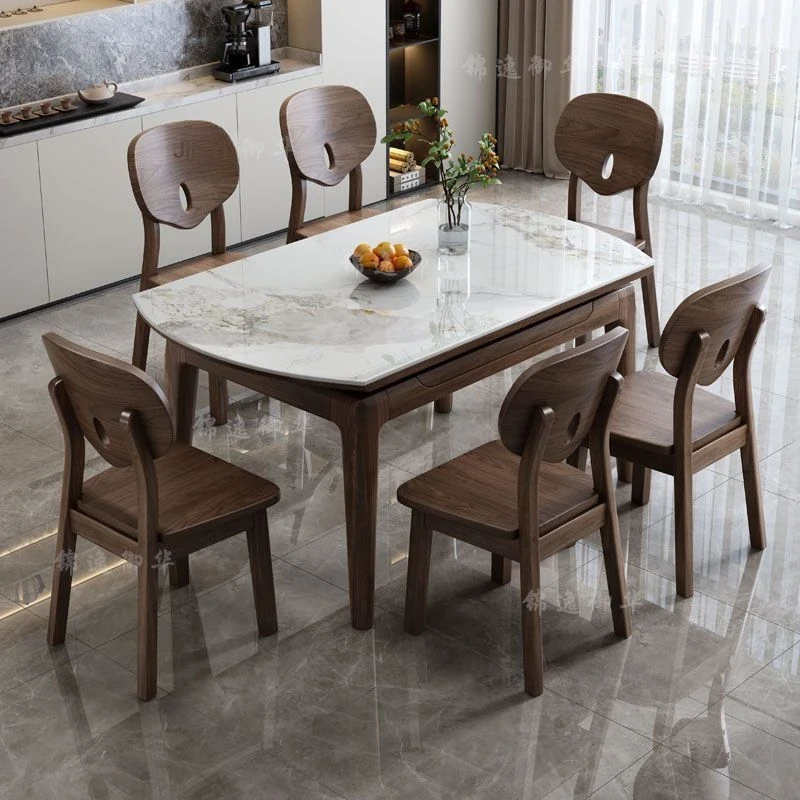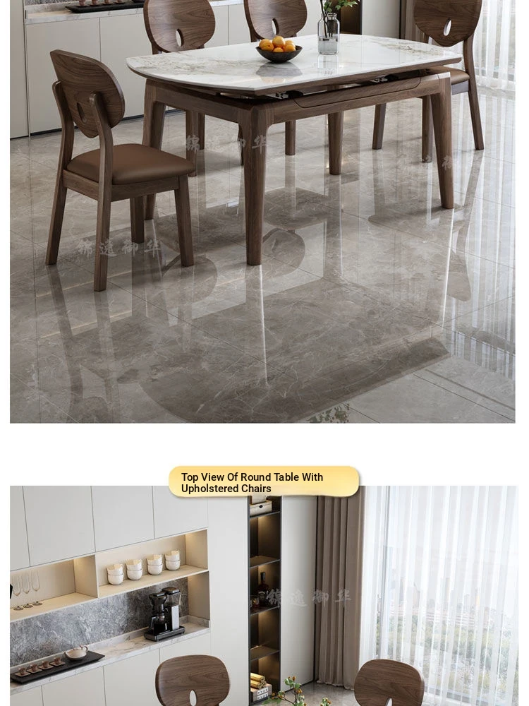 Solid Black Walnut Extendable Dining Table and Chairs Set for Small Living Spaces - Versatile Round Table for Home Use