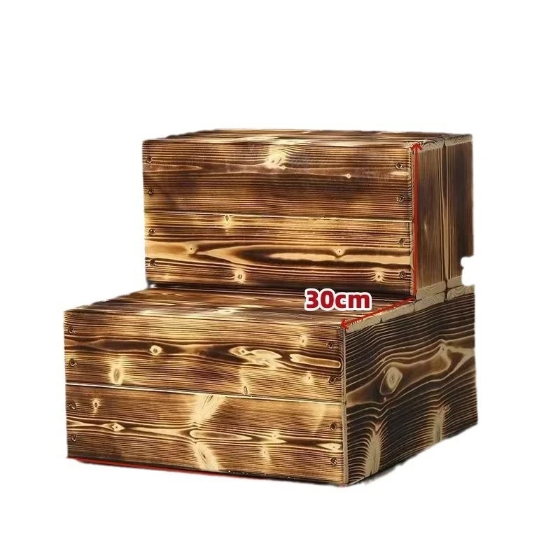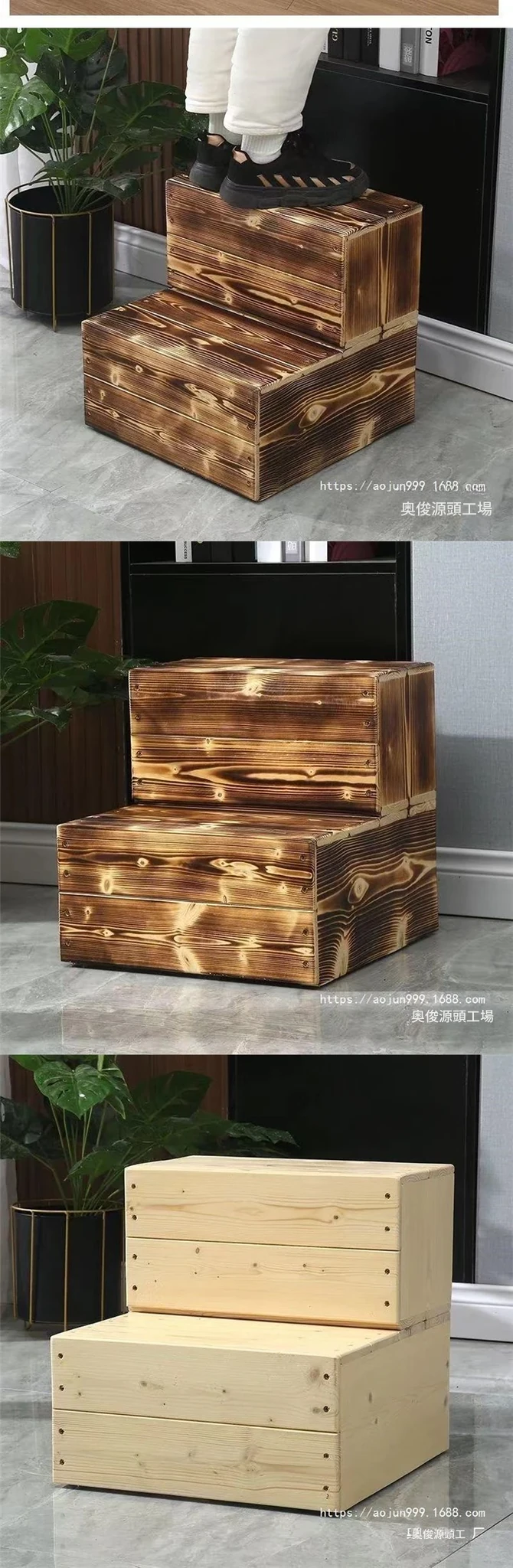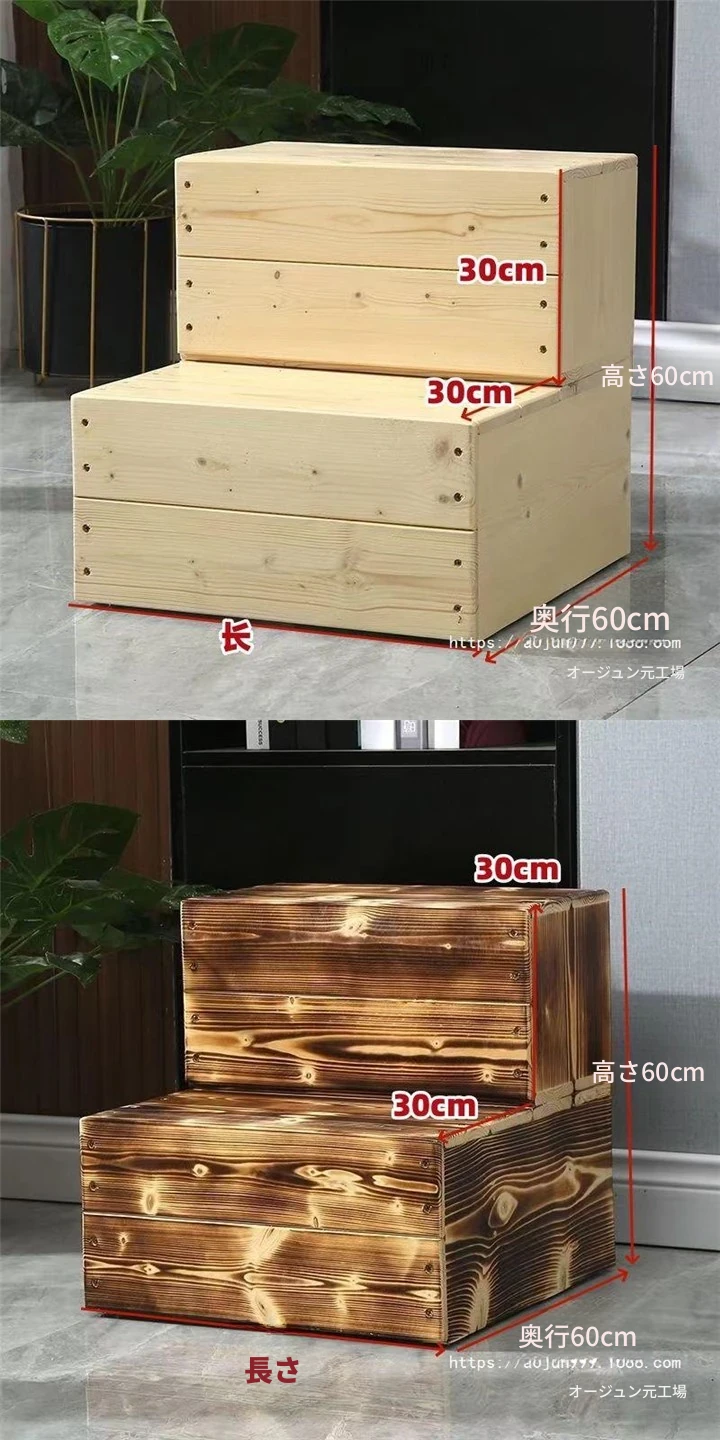 天然木製の二段階段 - バルコニーや窓辺の高低差を解消!滑り止め設計で安心して使える、便利な足踏みステップ。おしゃれで機能的なインテリアとしても最適です!