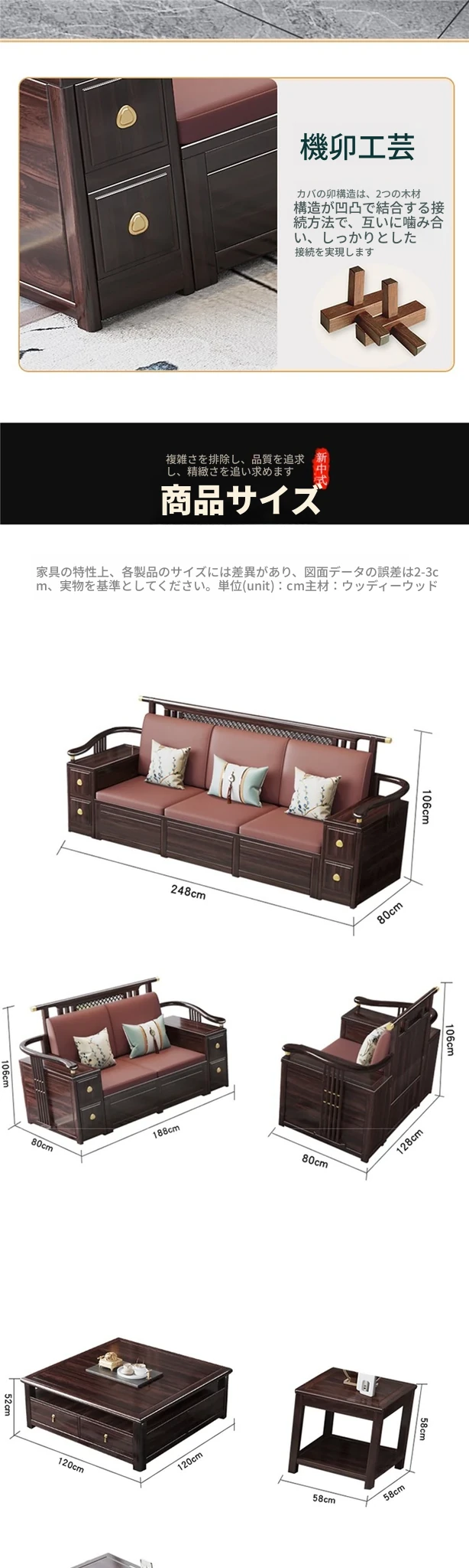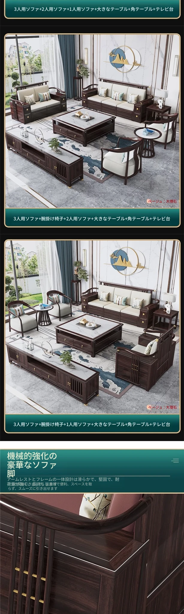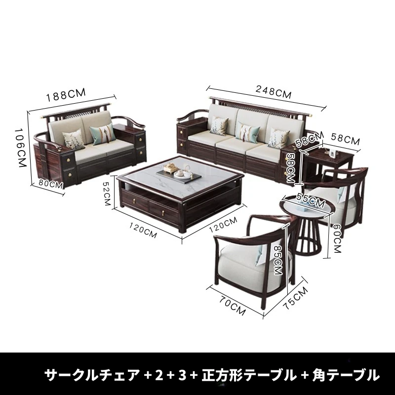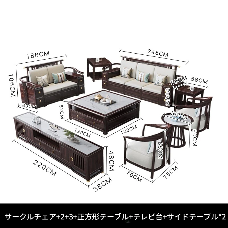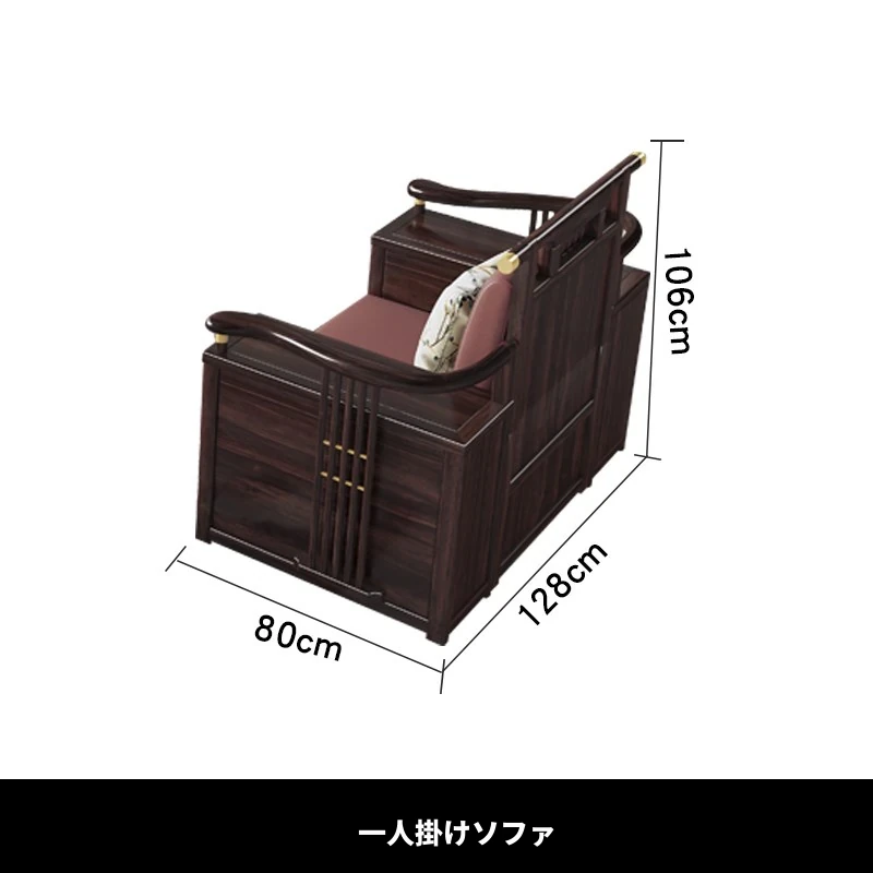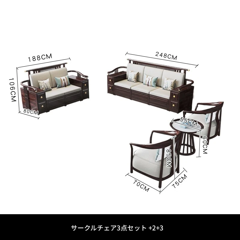 全実木製新中式ウッキン材の組み立て式ソファセット&サークルチェア - ヴィラのリビングに最適!冬夏兼用の収納家具で、スタイリッシュな空間を演出します。