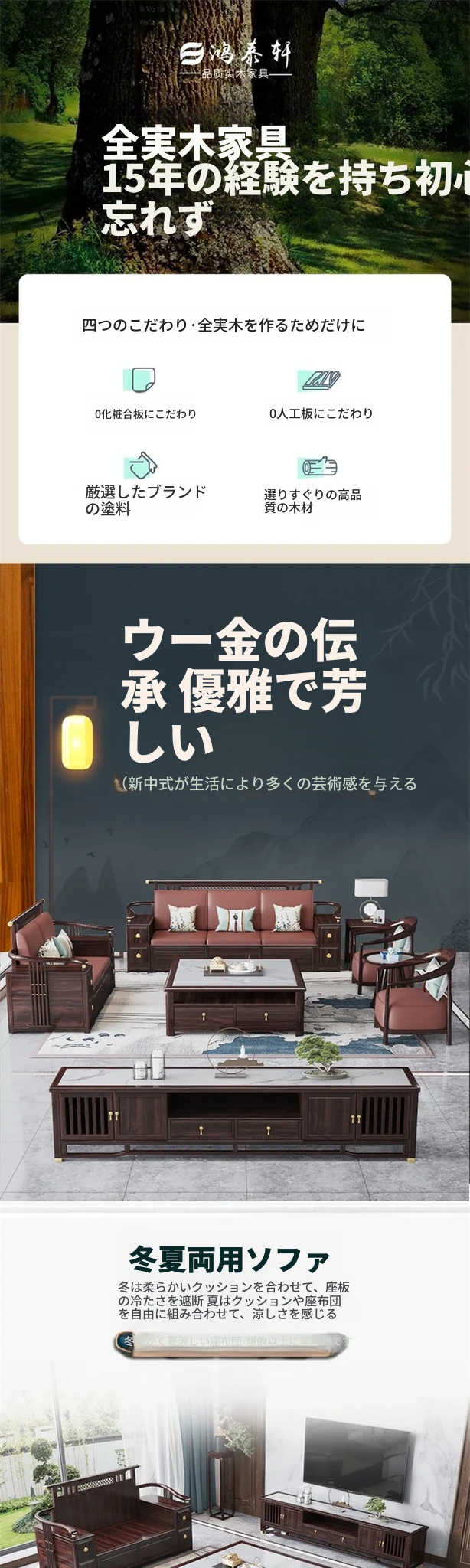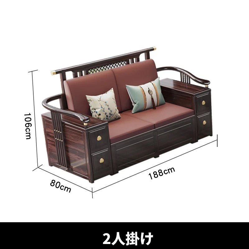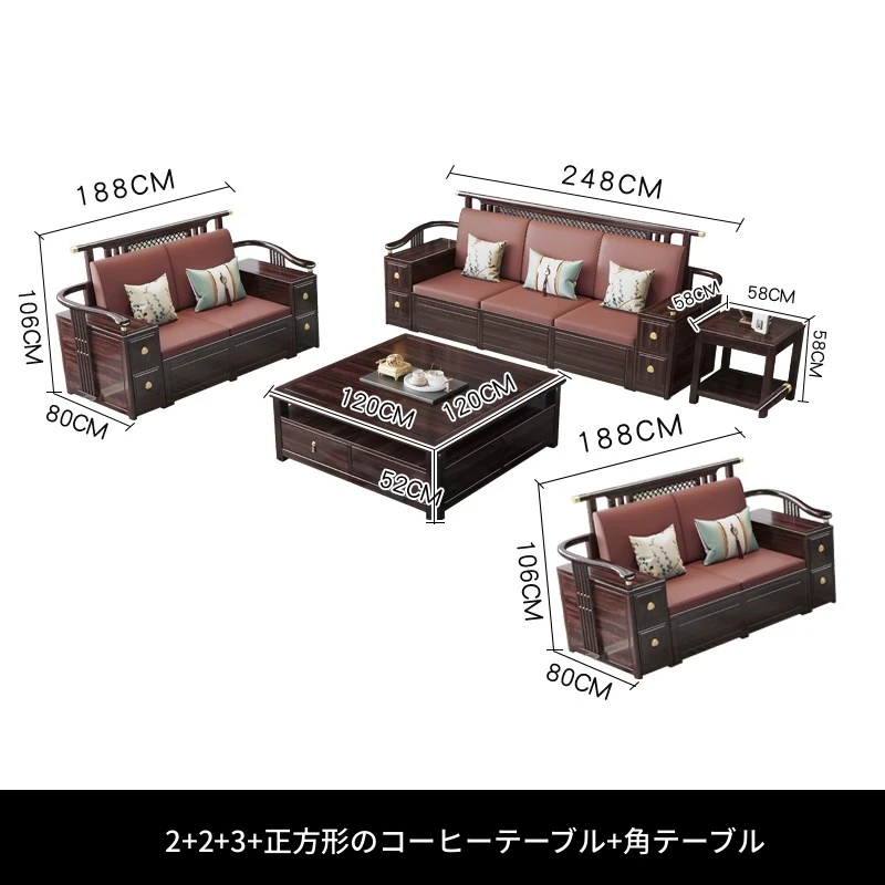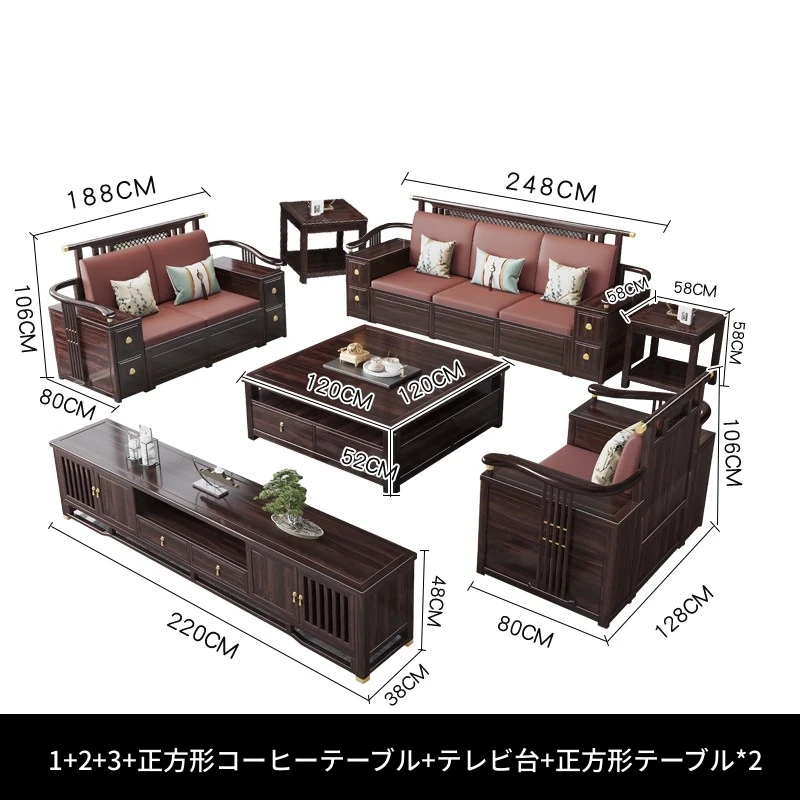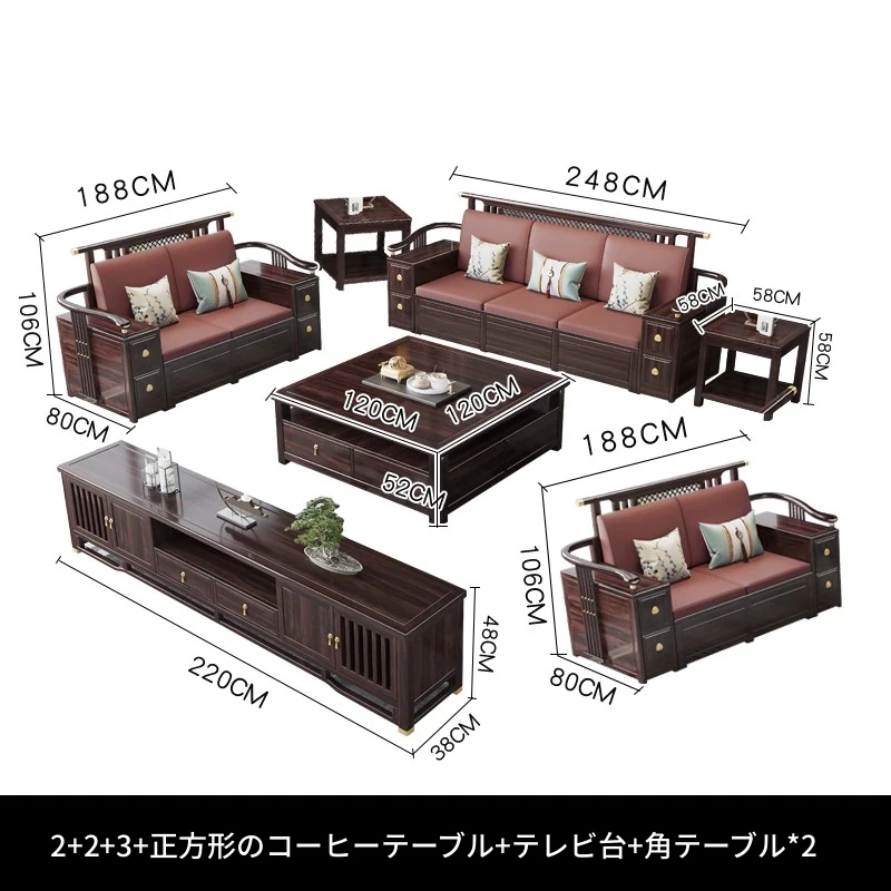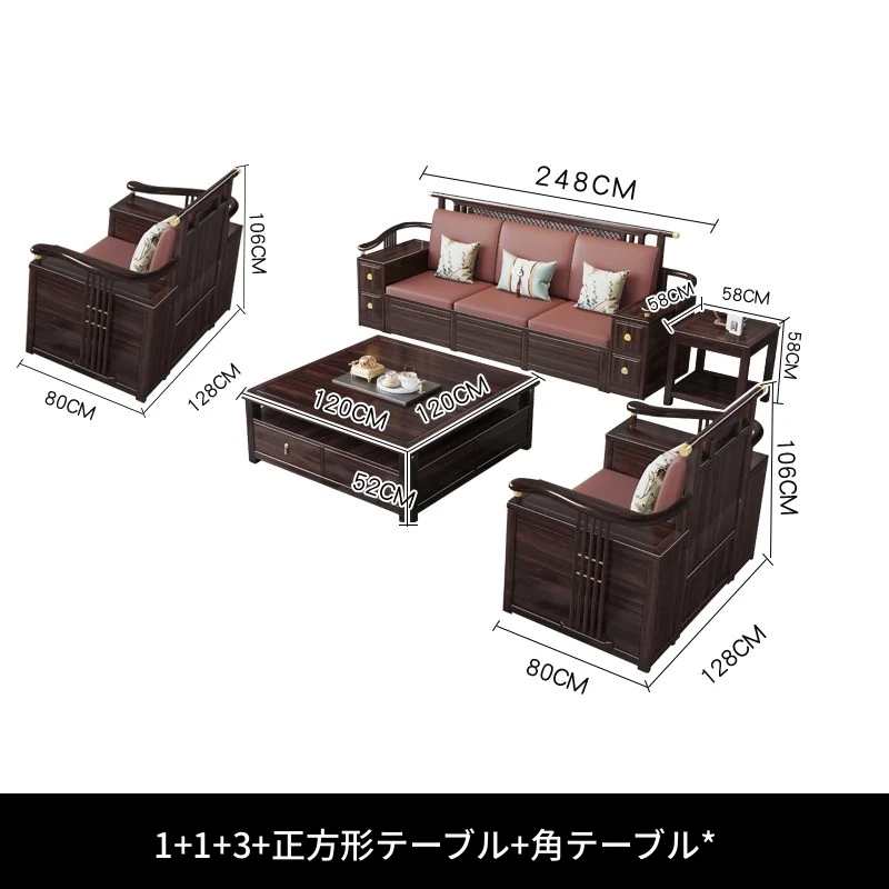 全実木製新中式ウッキン材の組み立て式ソファセット&サークルチェア - ヴィラのリビングに最適!冬夏兼用の収納家具で、スタイリッシュな空間を演出します。