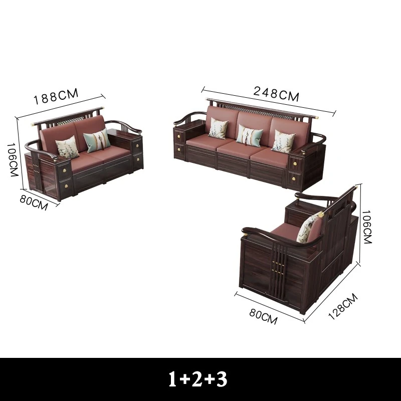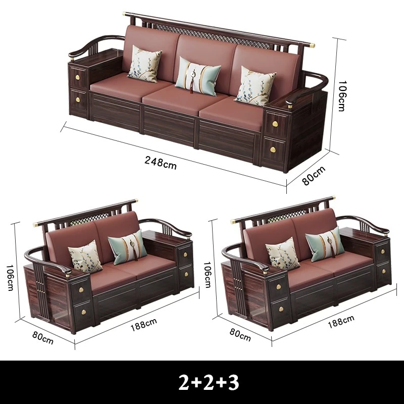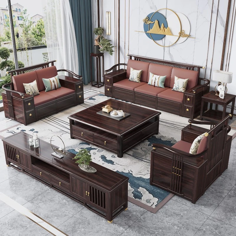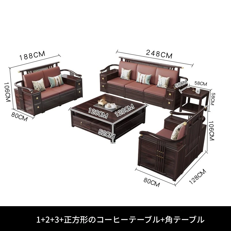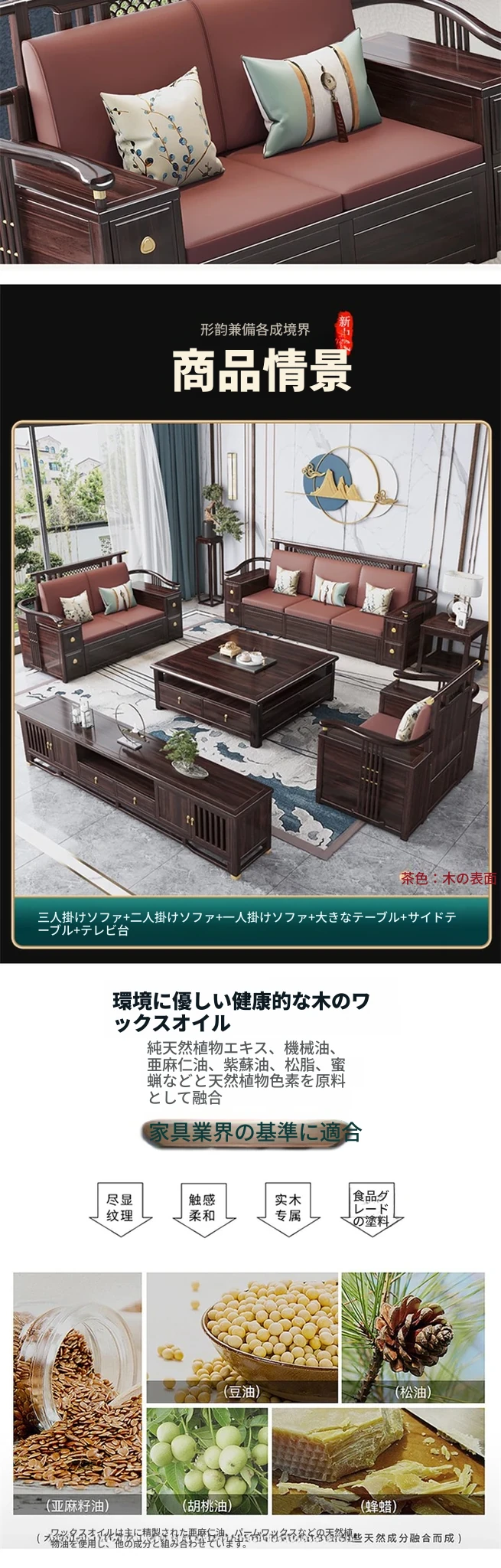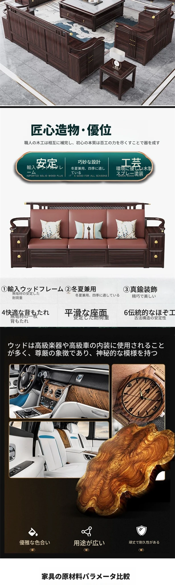 全実木製新中式ウッキン材の組み立て式ソファセット&サークルチェア - ヴィラのリビングに最適!冬夏兼用の収納家具で、スタイリッシュな空間を演出します。