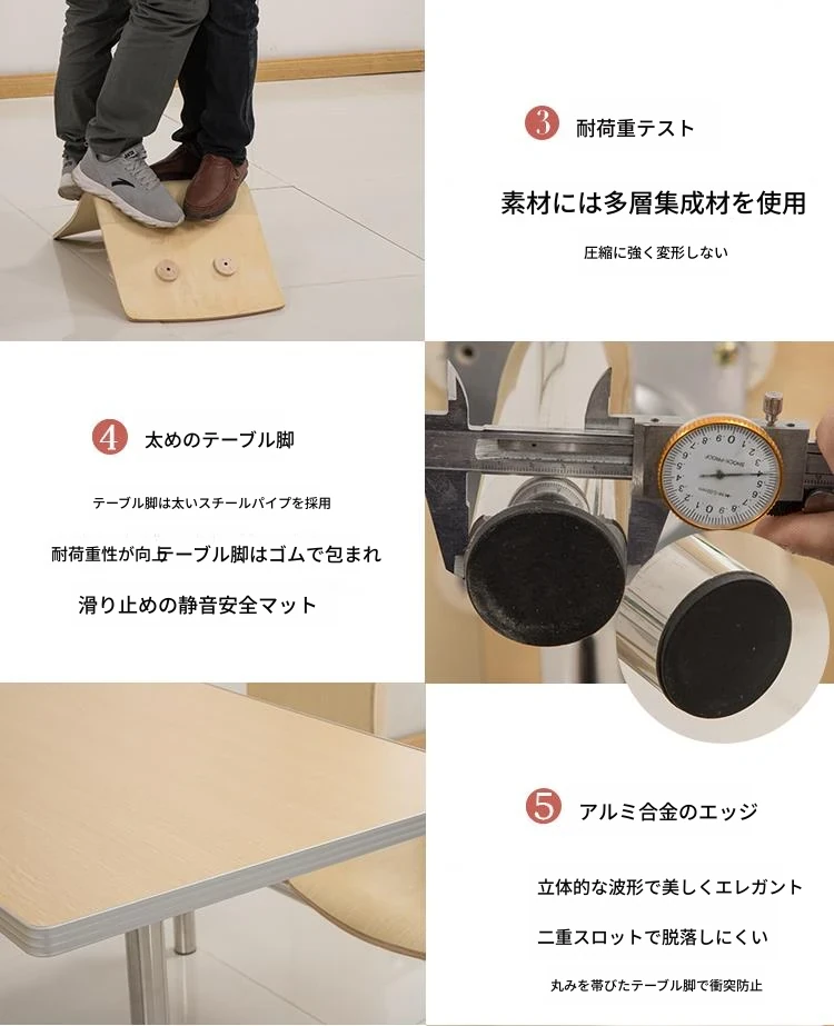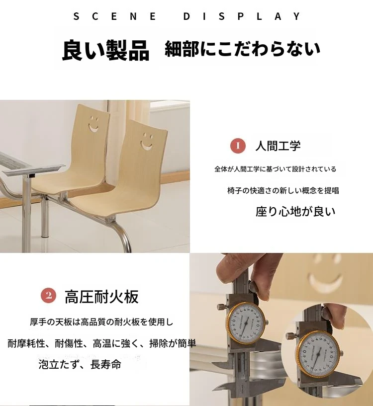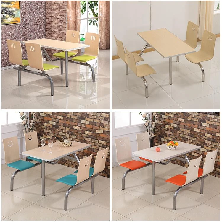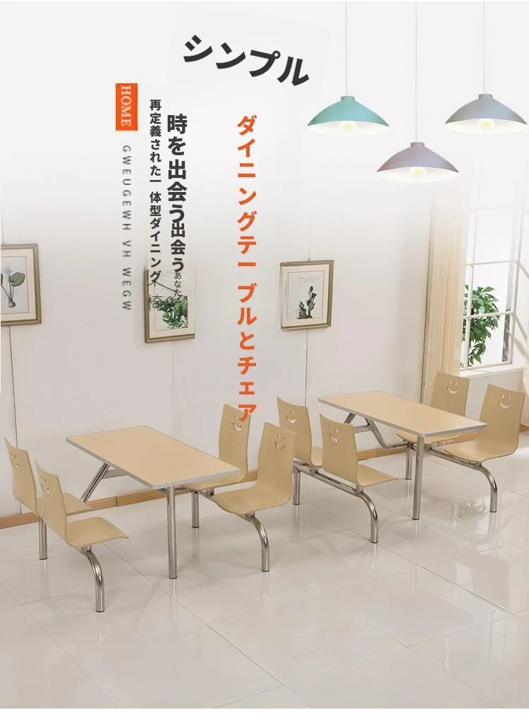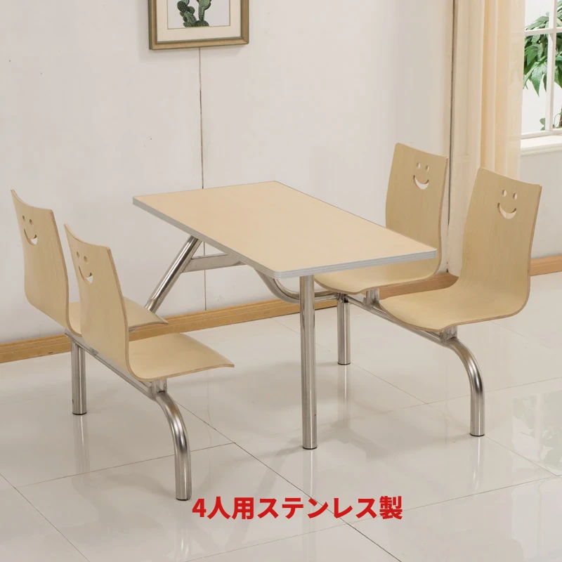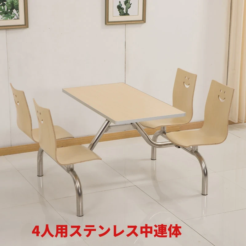 4人・6人用一体型ステンレス製食堂テーブルセット | 学校・工場・レストランに最適な丈夫でスタイリッシュなデザイン!快適な食事空間を提供します。
