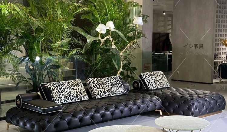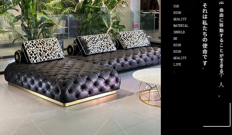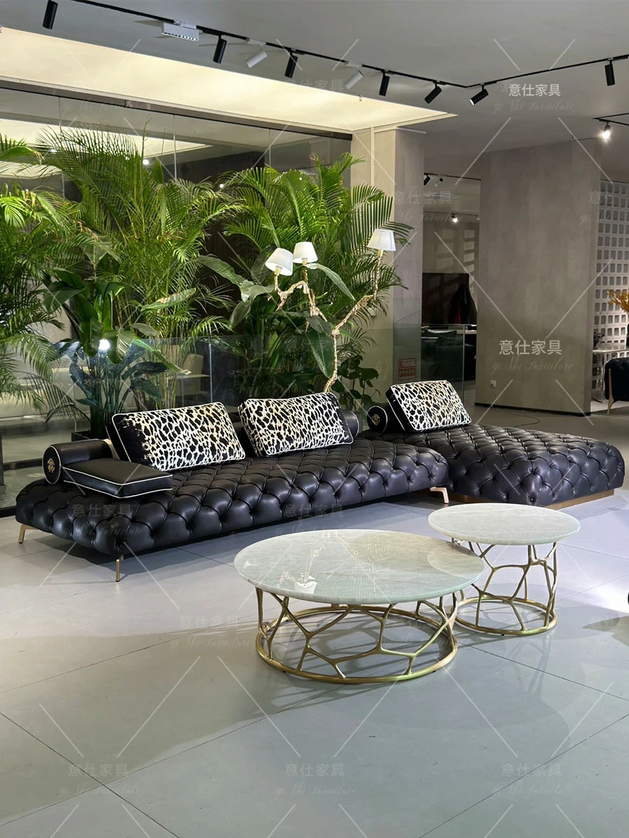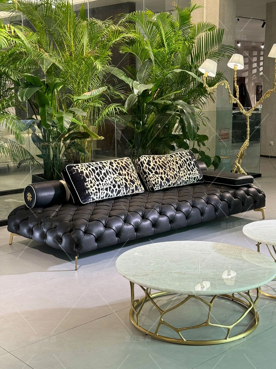 ドイツ製新型フレンチレトロ本革コンビネーションスケートスタイル高級本革風黒イタリアンミニマリズムモジュラーソファ