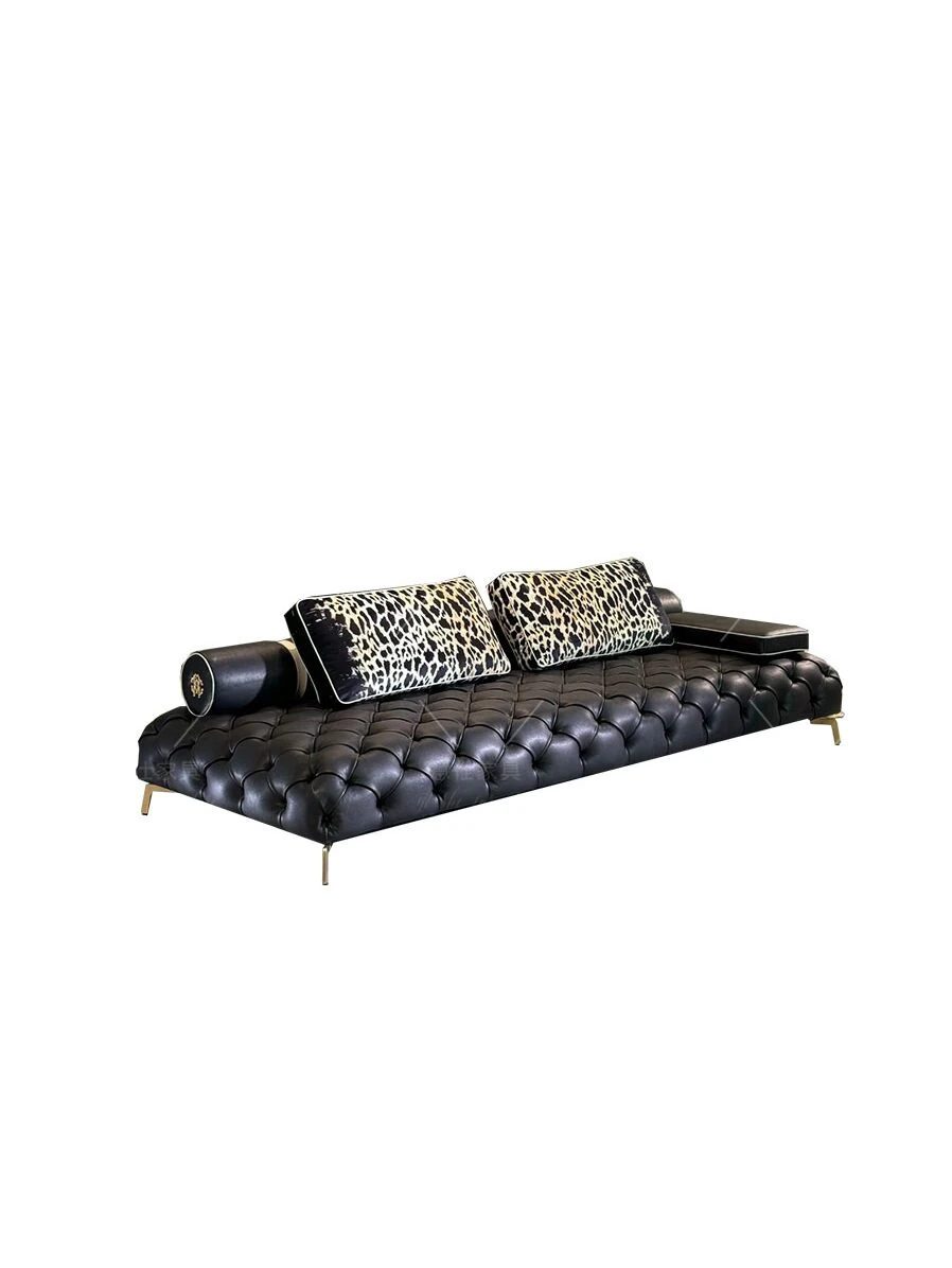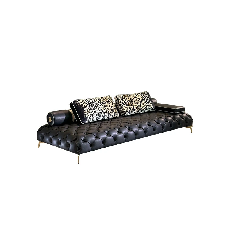 全拉扣ブラックソファセット - コンパクトなスペースにもぴったり!イタリアン・ラグジュアリーの無肘デザイン、アメリカンスタイルの家具でおしゃれなインテリアを実現。