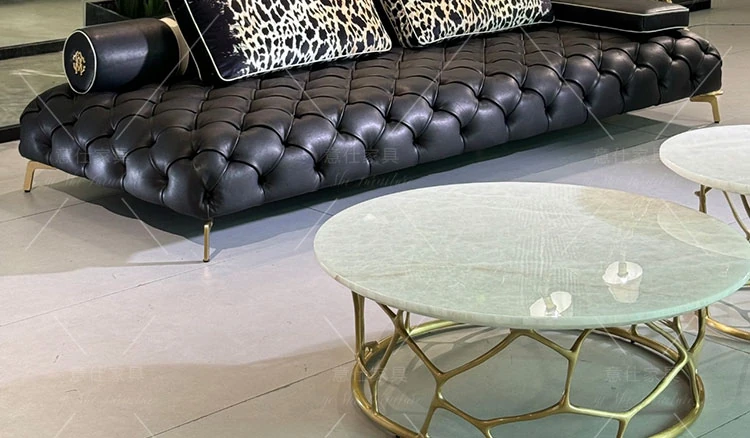 イタリアンファブリックソファ 大リビング向け シンプルでラグジュアリーなデザイン 高級感溢れる真皮アーチソファ モダンな大空間にぴったり!