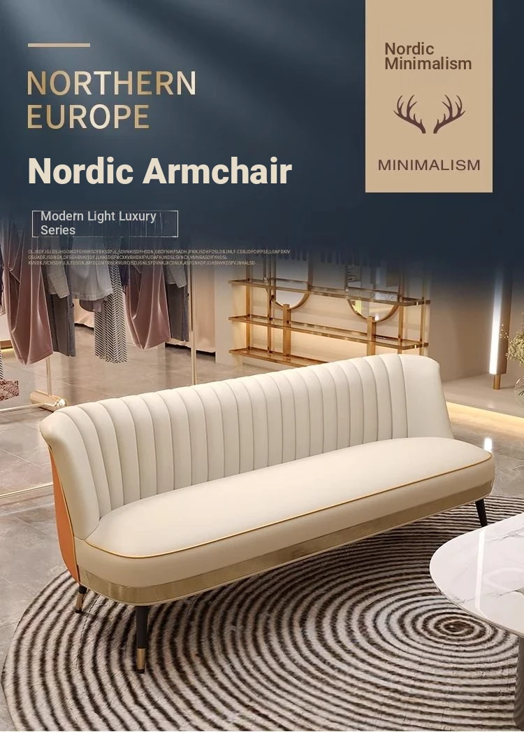 Stylish Nordic Minimalist Sofa - Perfect for Bedrooms, Fashion Boutiques, and Hair Salons! Double Three-Seater Design, Ideal for Relaxation in Waiting Areas. Embrace Elegance and Comfort!