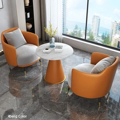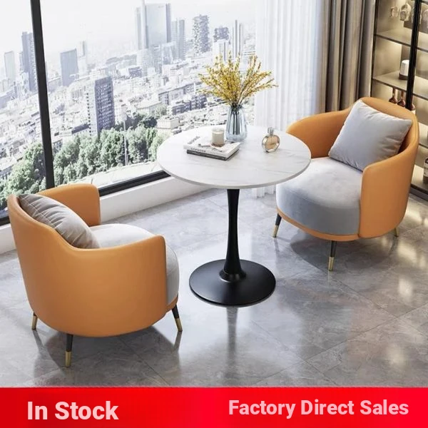 Stylish Real Estate Sales Office Meeting Table and Chair Set - Trendy Lounge Reception Sofas with Coffee Table Combo, Perfect for Negotiations and Casual Meetings, Space-Saving Round Table for Two