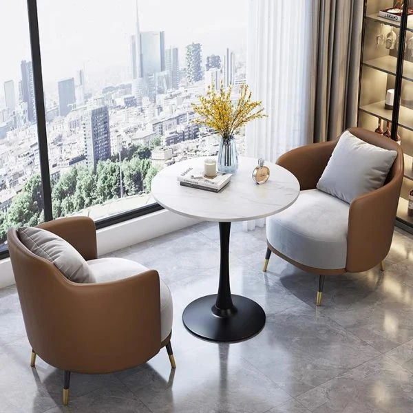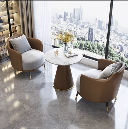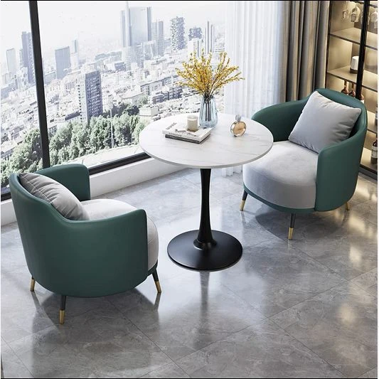 厳選された不動産販売オフィス用の洽談デスクと椅子、人気のあるリラックスした接待用ソファとテーブルのセット、交渉に最適な小さな円卓、1つのテーブルに2つの機能を持つ!ビジネスシーンをスタイリッシュに演出します。