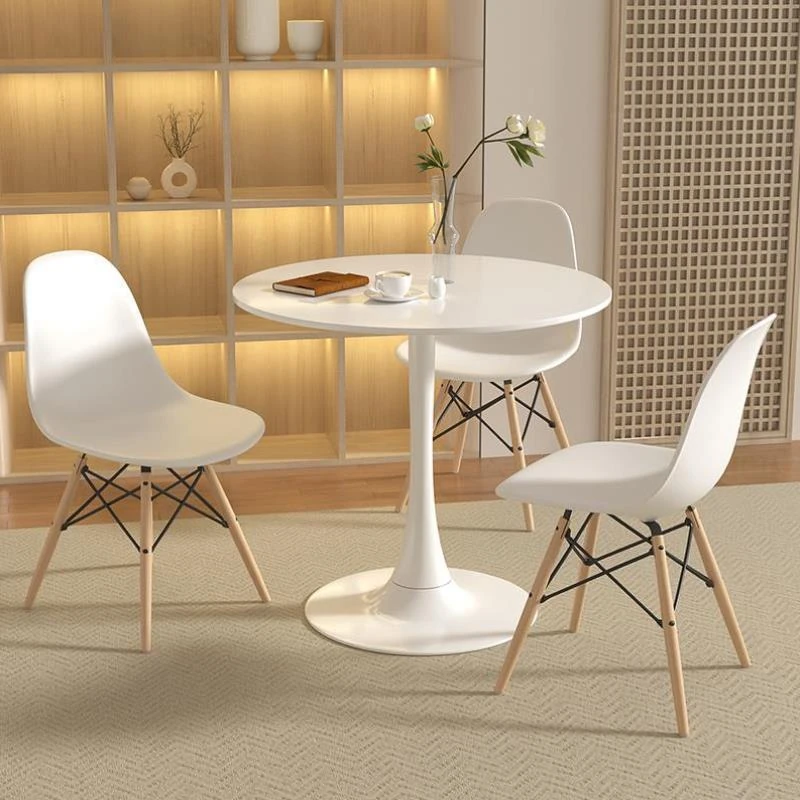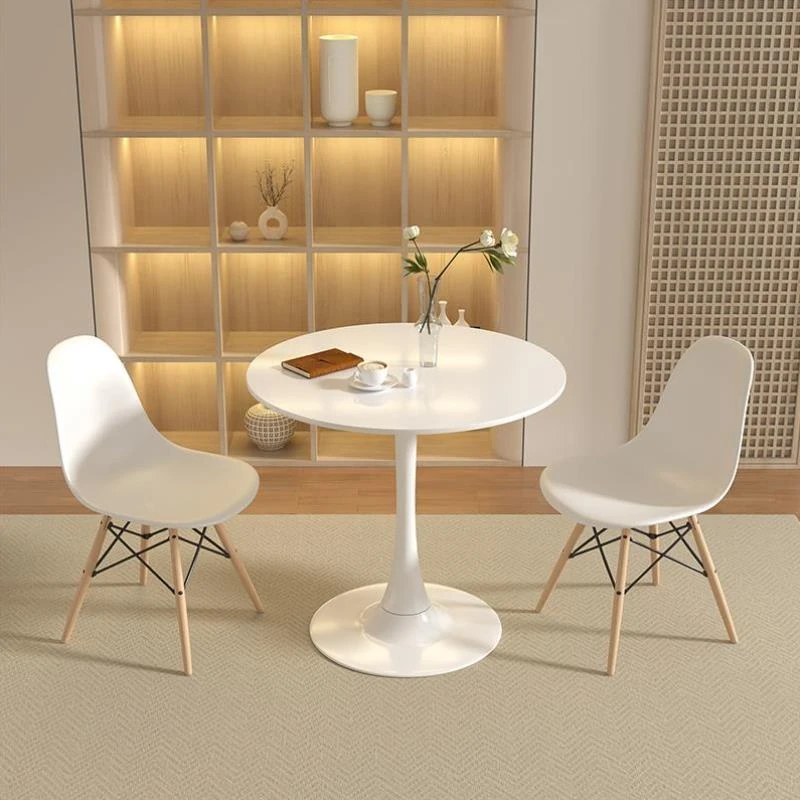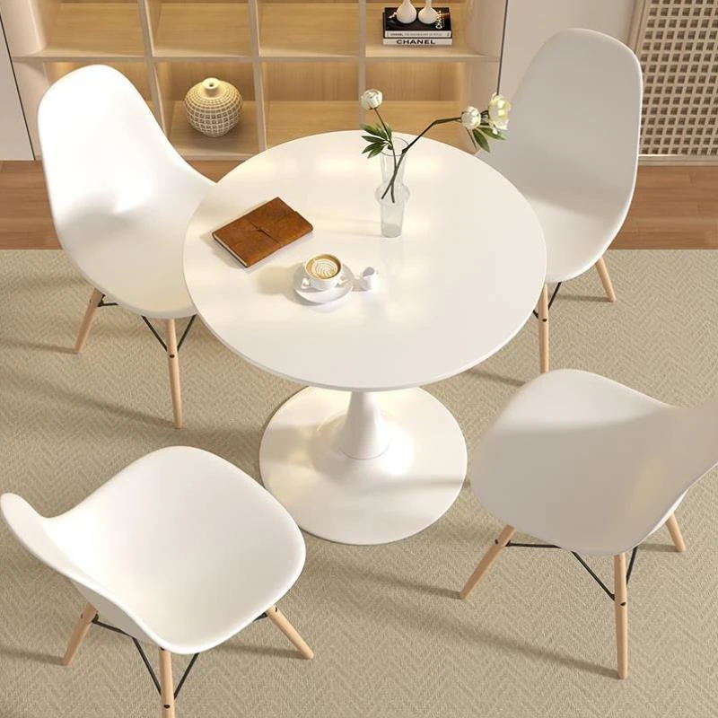 おしゃれな小型円卓|カフェスタイルの談話テーブルセット|チューリップデザインのコーヒーテーブル|リラックスしたひとときを提供する休憩・受付用テーブル|バルコニーにぴったりのデザイン!
