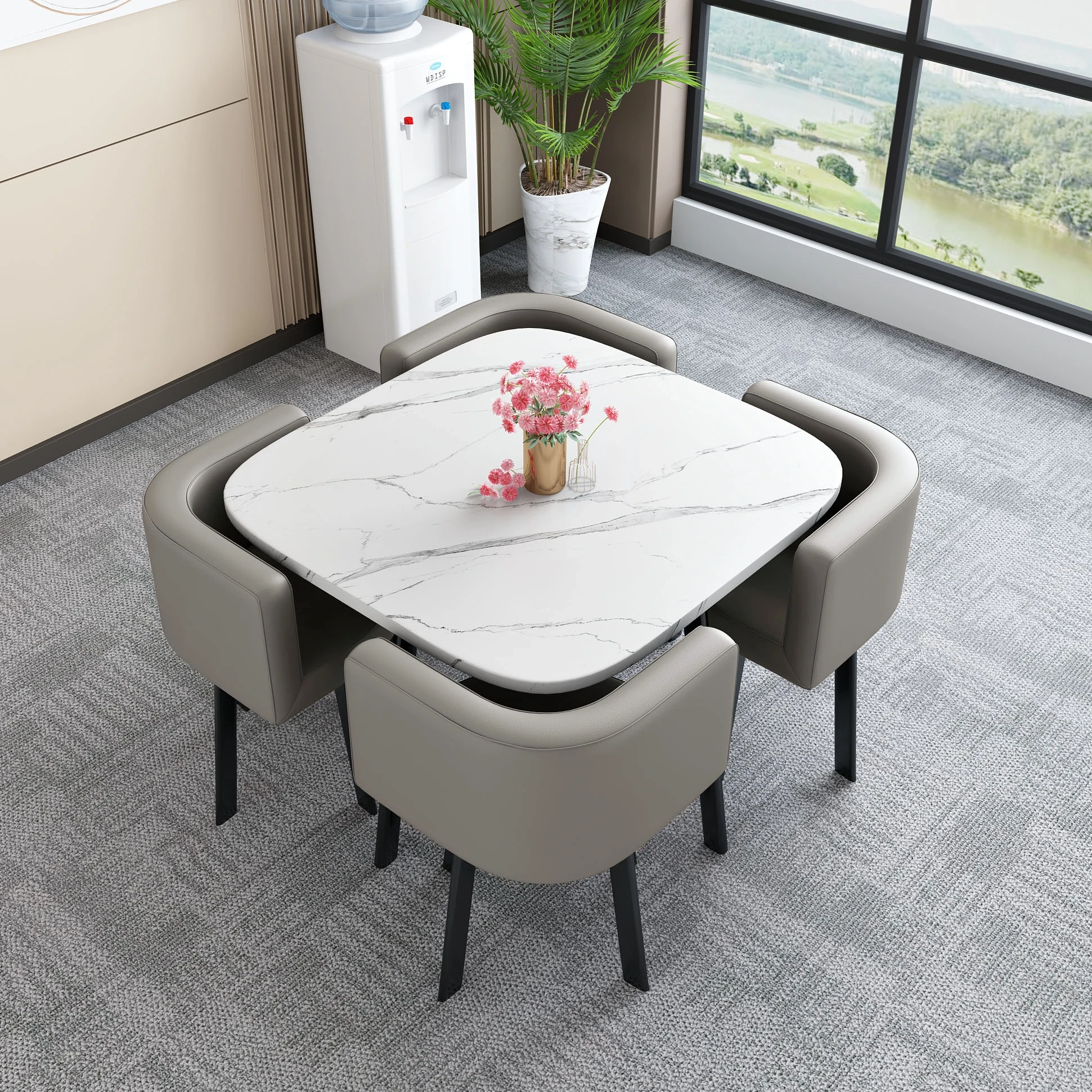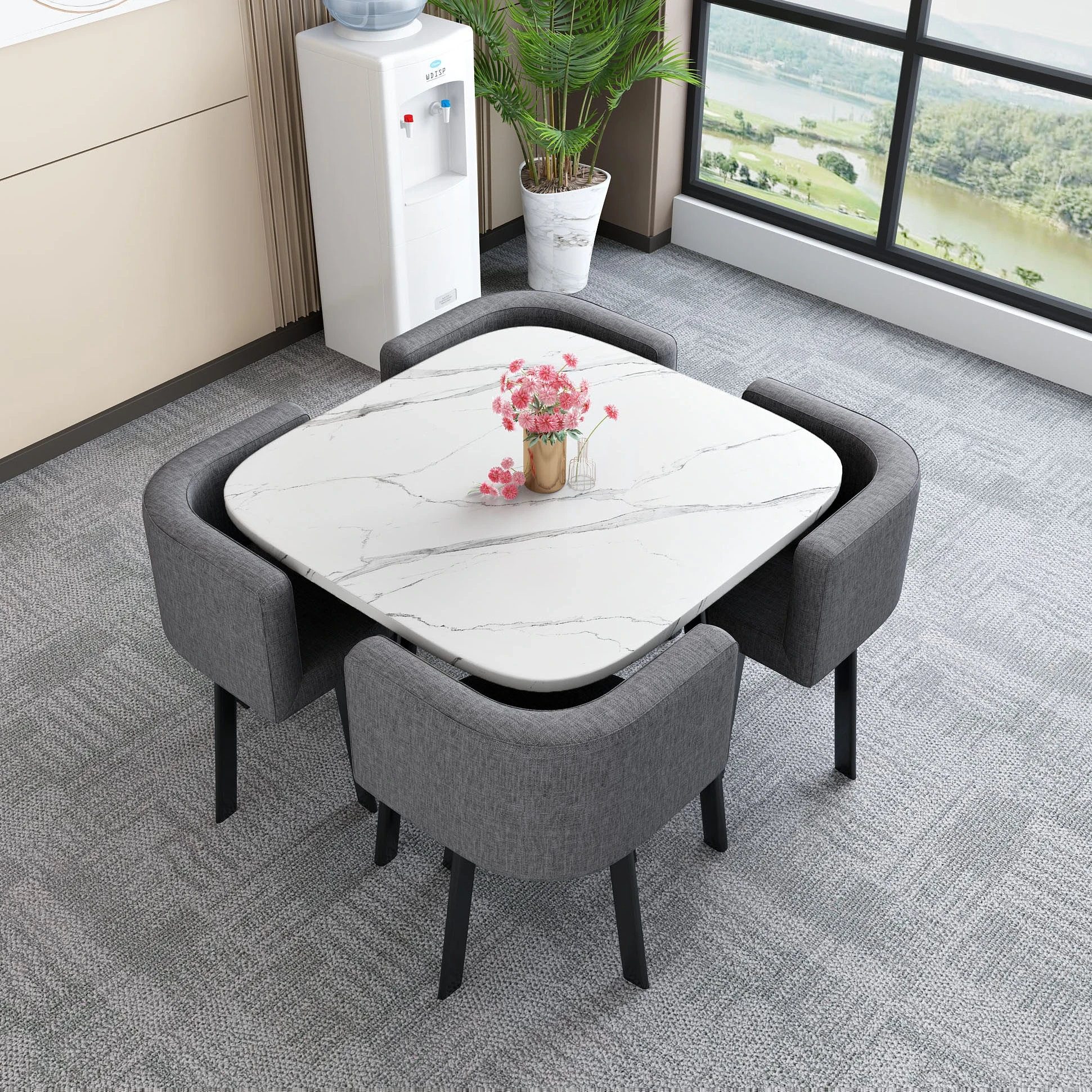 彷大理石四角卓+グレー布椅子 一卓4椅子