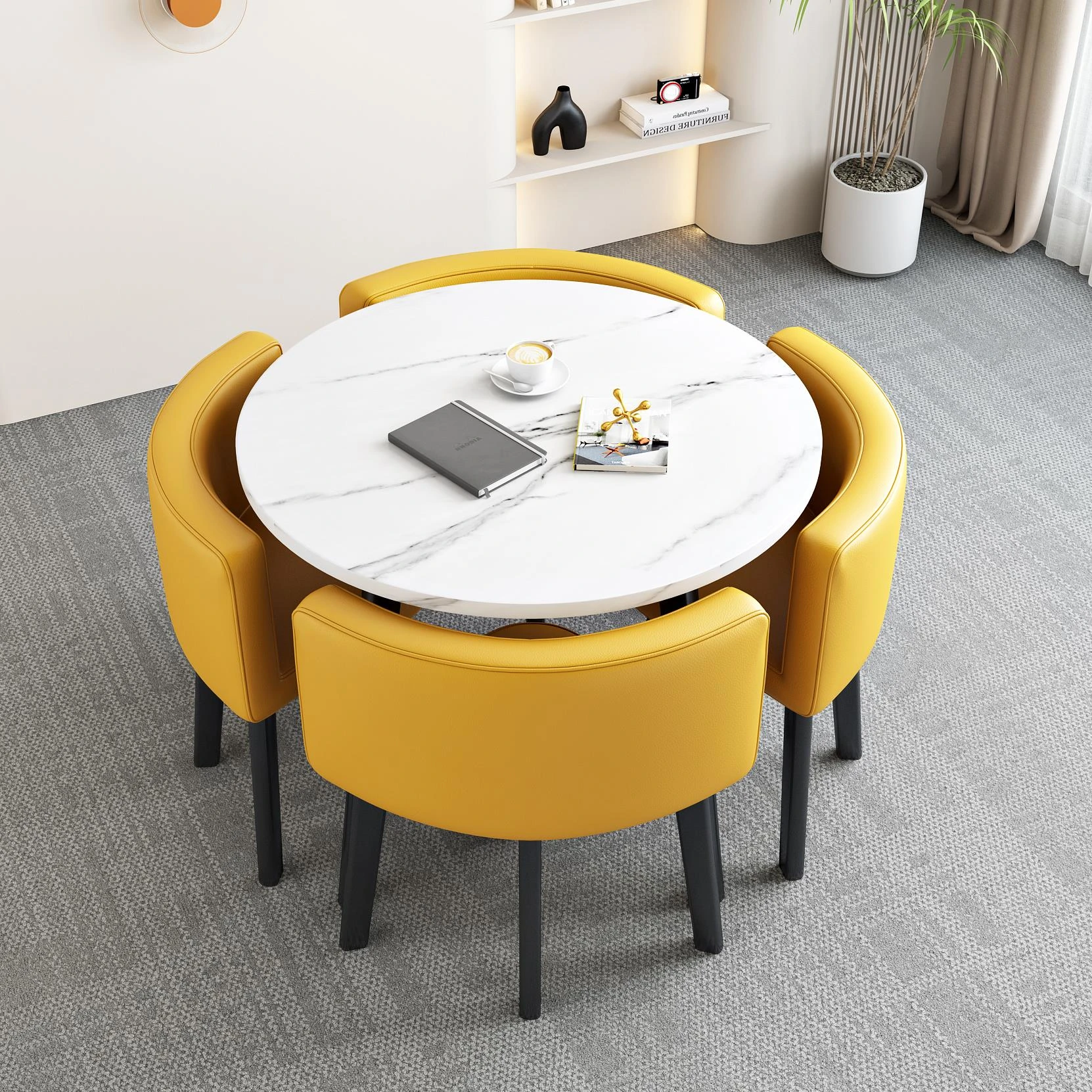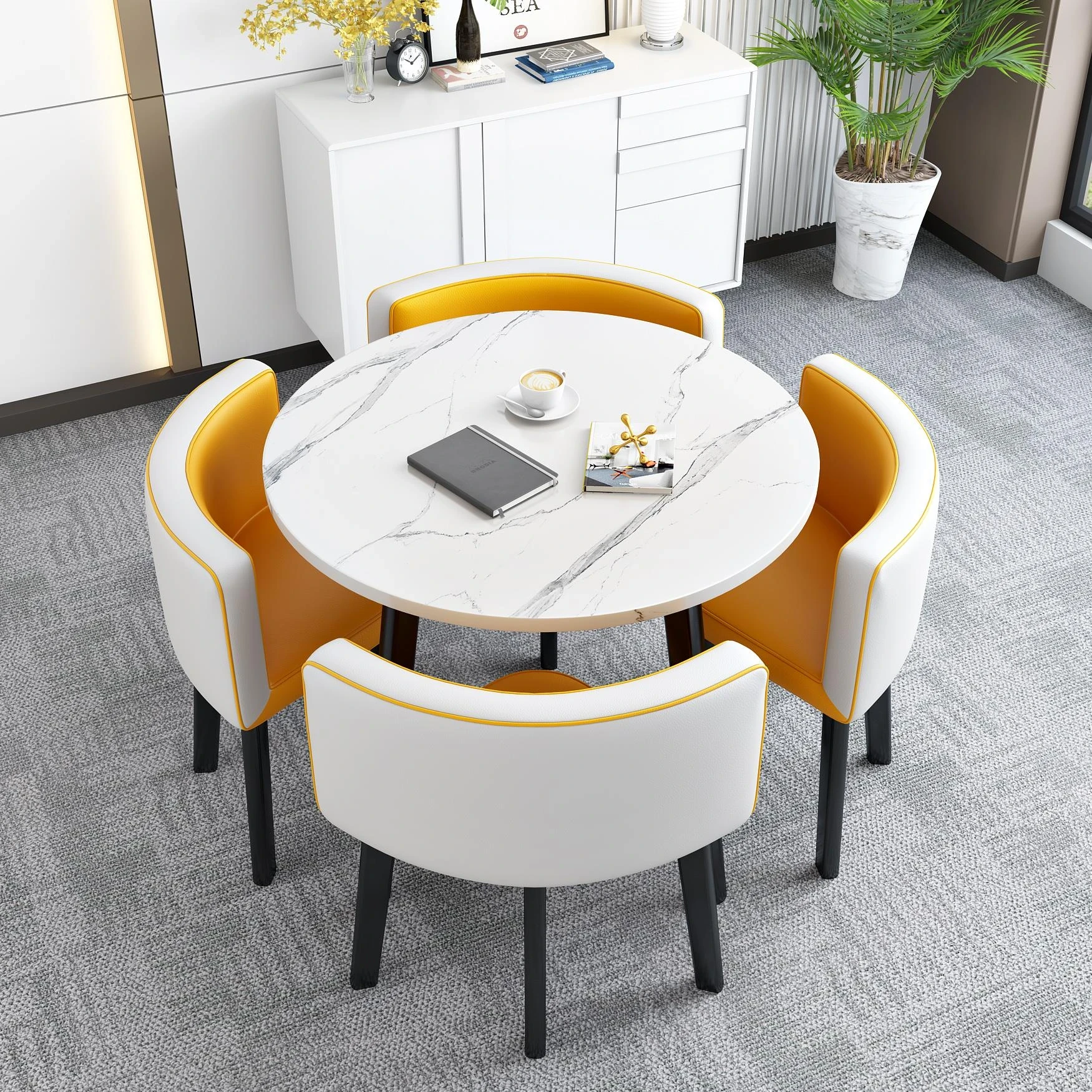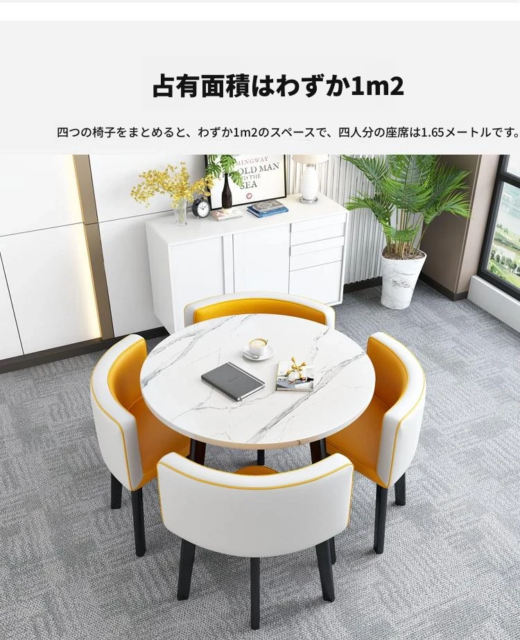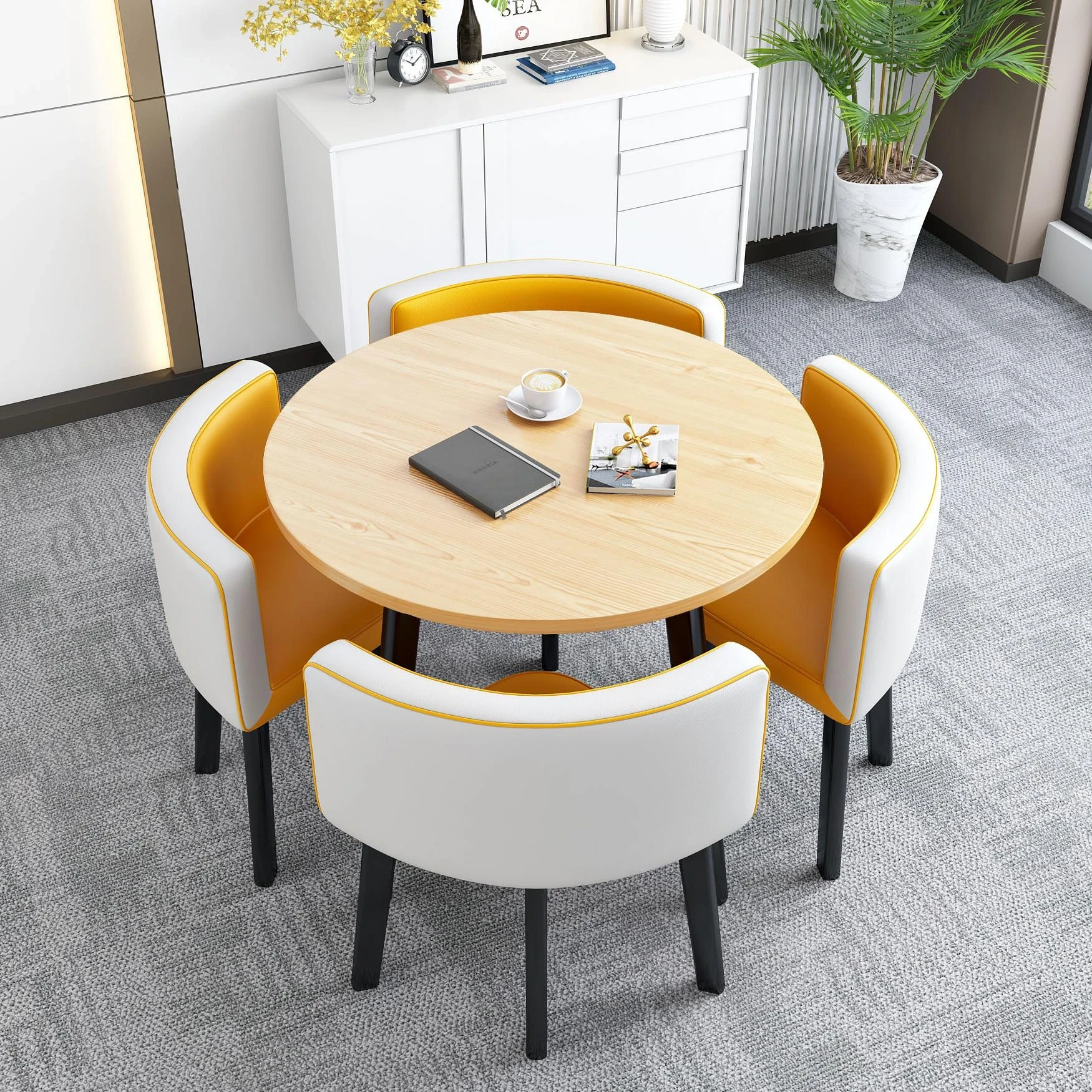 リラックス空間を演出する!おしゃれな円形テーブルと椅子のセット - アパートやカフェに最適な会議・接待用、ティーショップや休憩エリアにぴったりのデザイン。