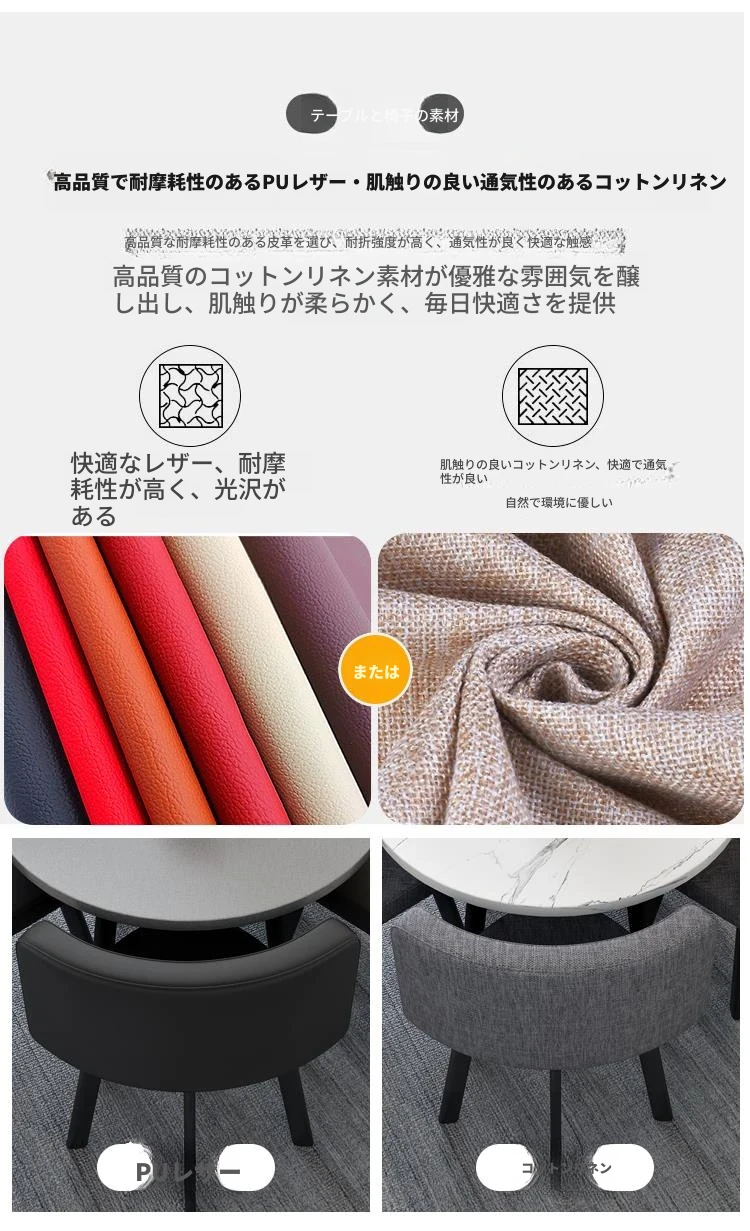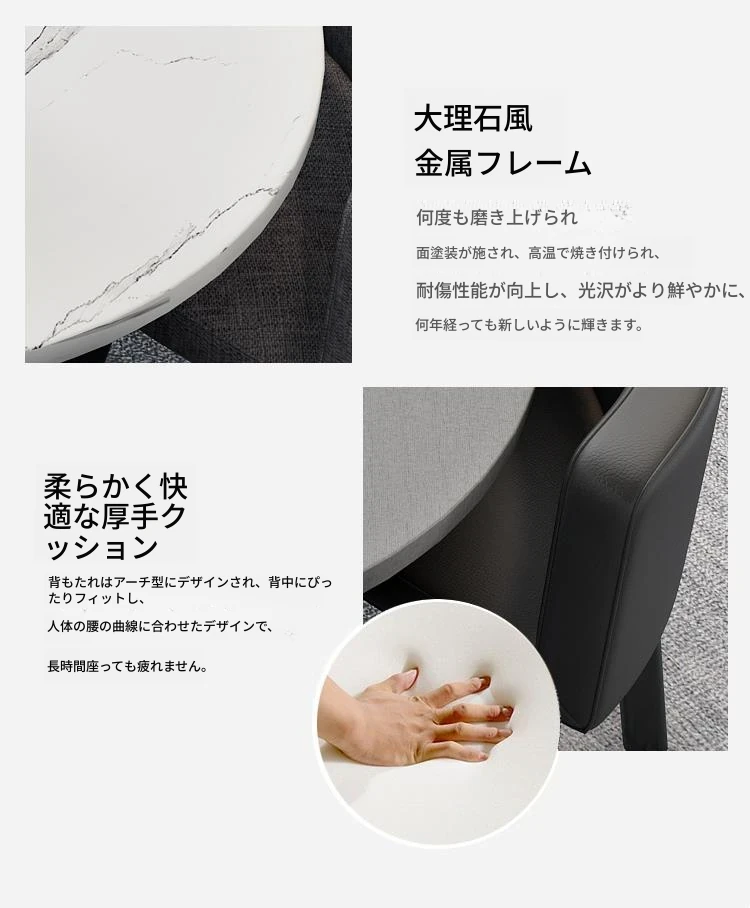 彷大理石円卓+2淡灰2グレーレザー椅子 一卓4椅子
