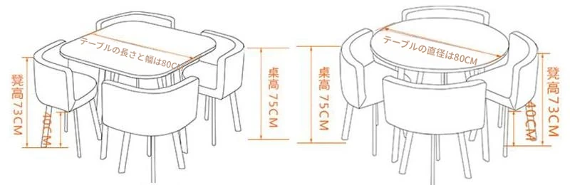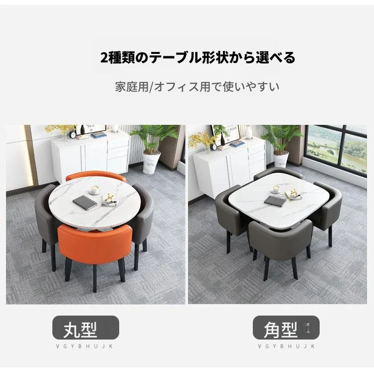 彷大理石円卓+オレンジホワイトレザー椅子 一卓4椅子