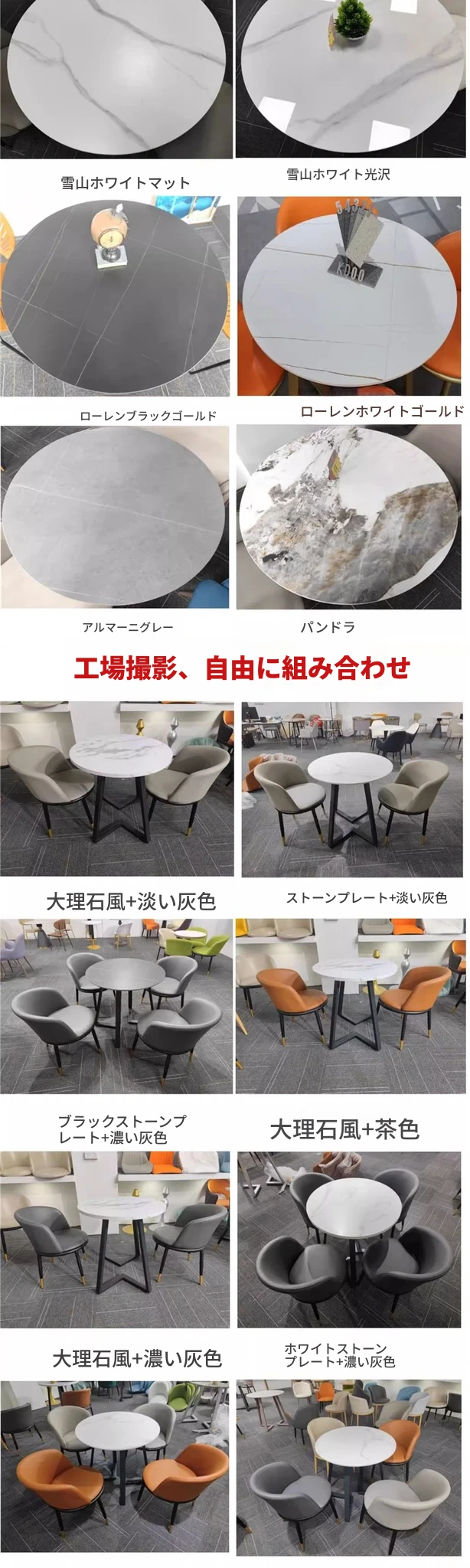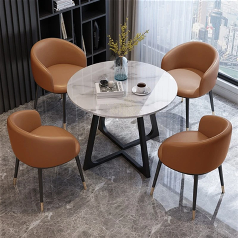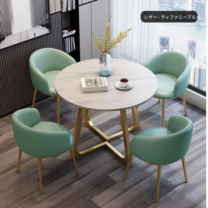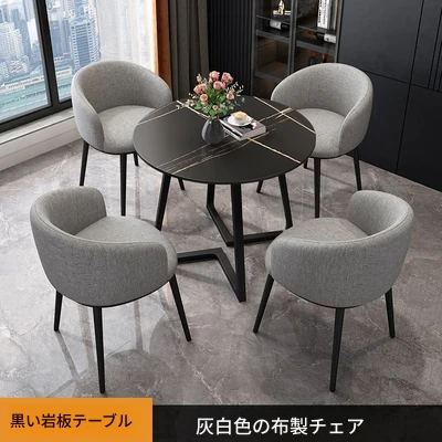 インフルエンサー向けの洽談会に最適!おしゃれな休憩スペースを演出するテーブル&チェアセット。売店、ホテル、オフィスの接客エリアにぴったりな、スタイリッシュな小丸テーブル。快適さとデザイン性を両立したアイテムです!