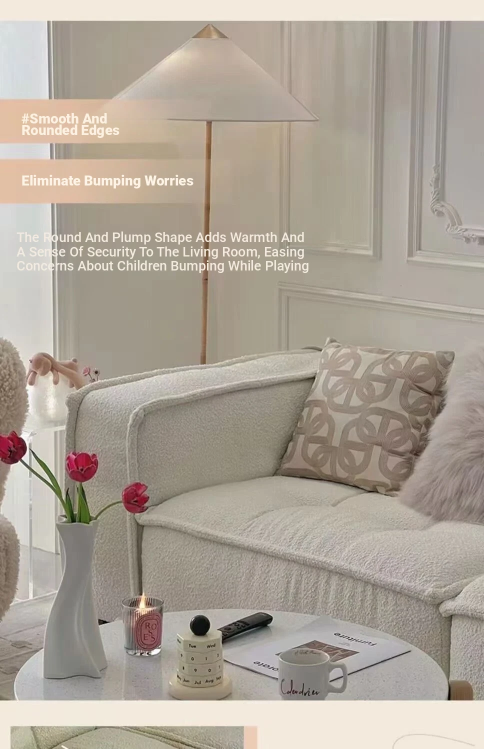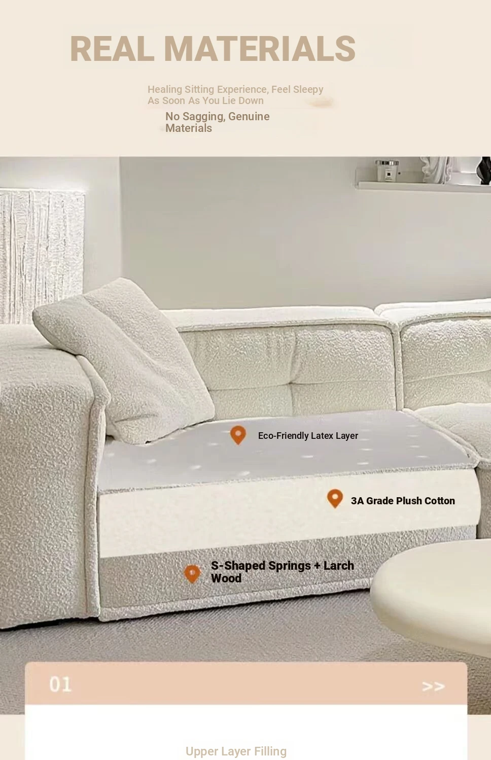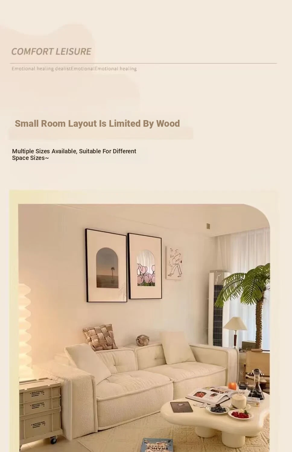 Trendy Minimalist Small Apartment Sofa - Modern Creamy Italian Fabric Couch for Living Room, Stylish Block Design, Perfect for Cozy Spaces