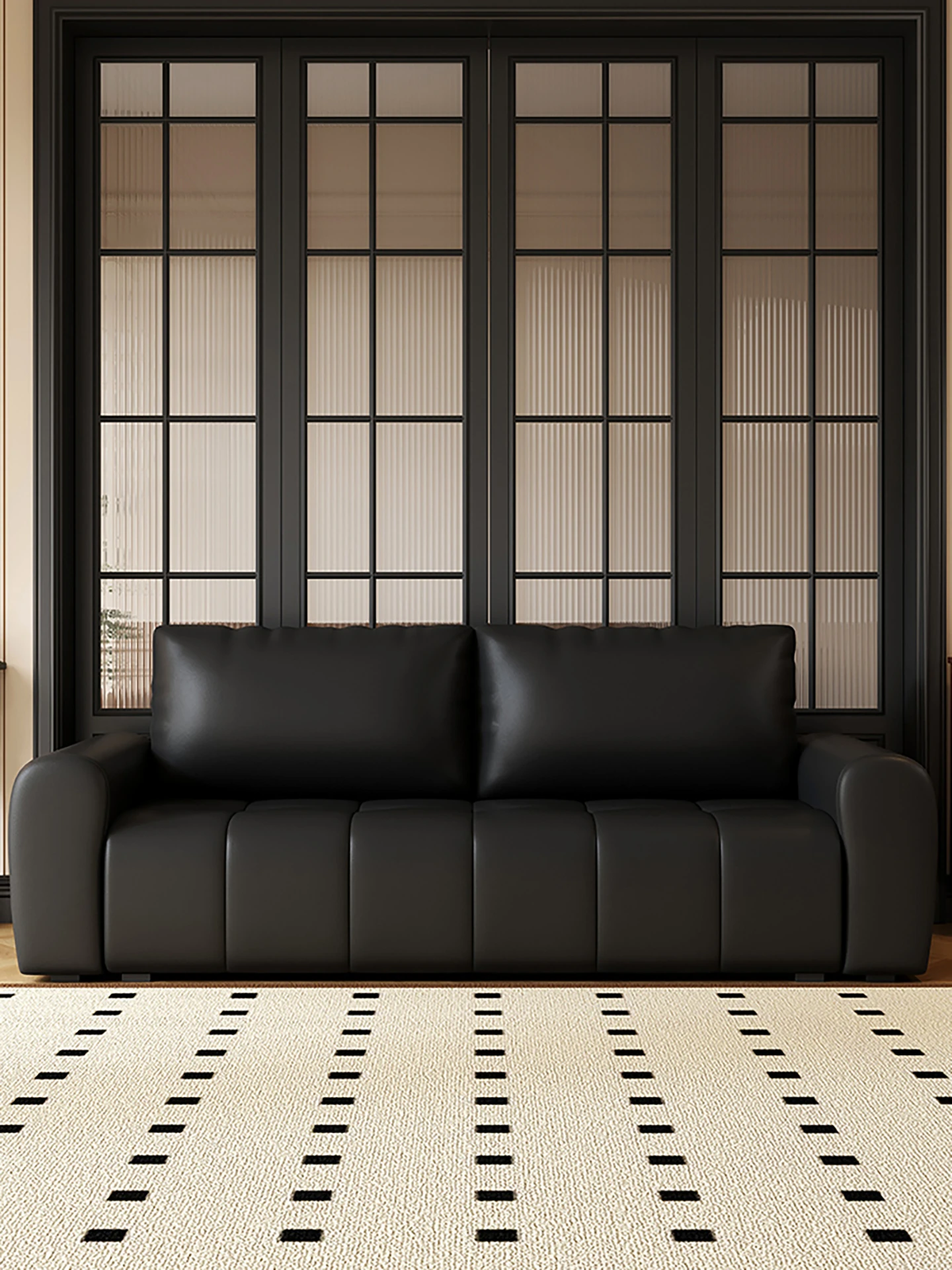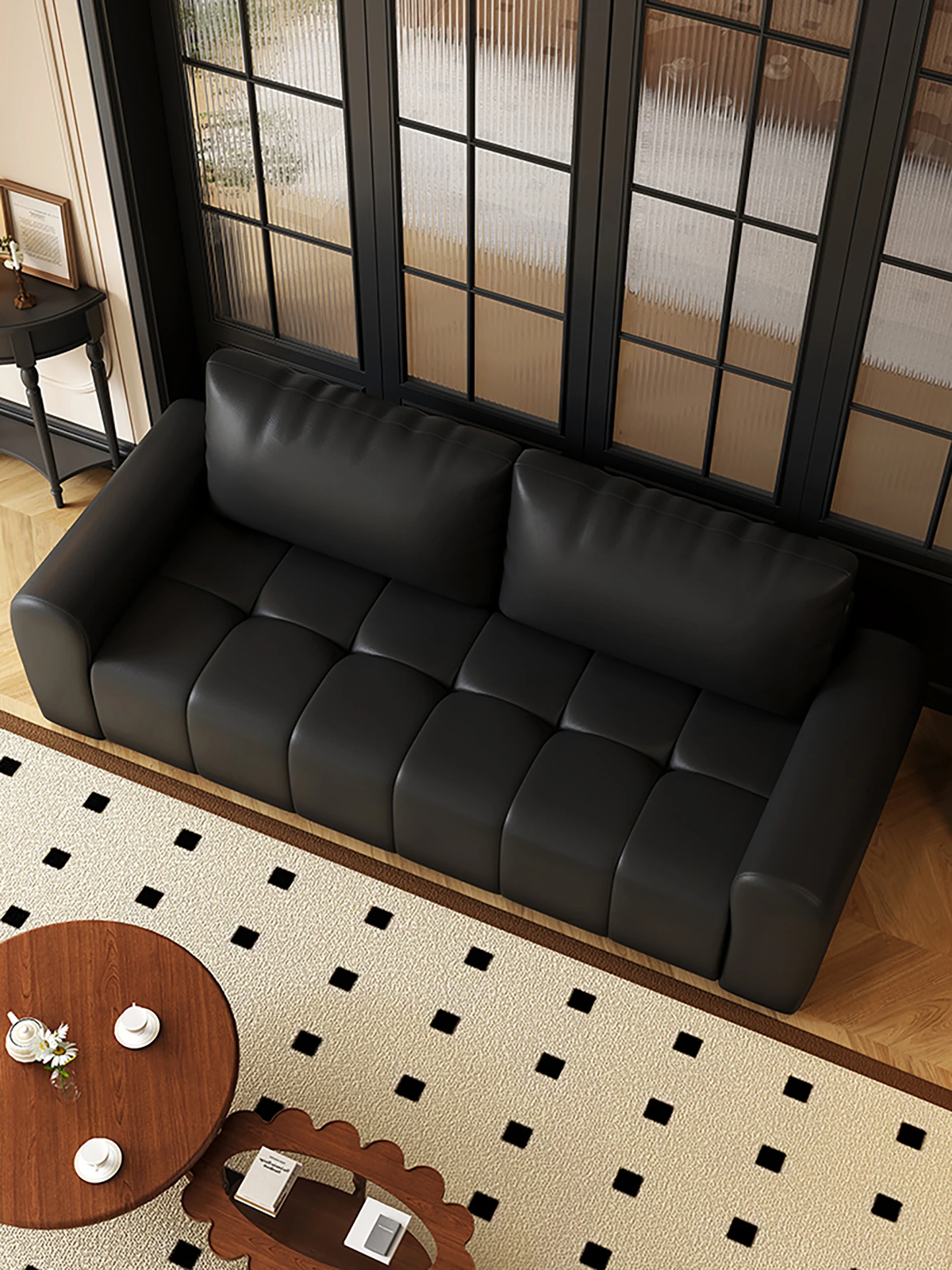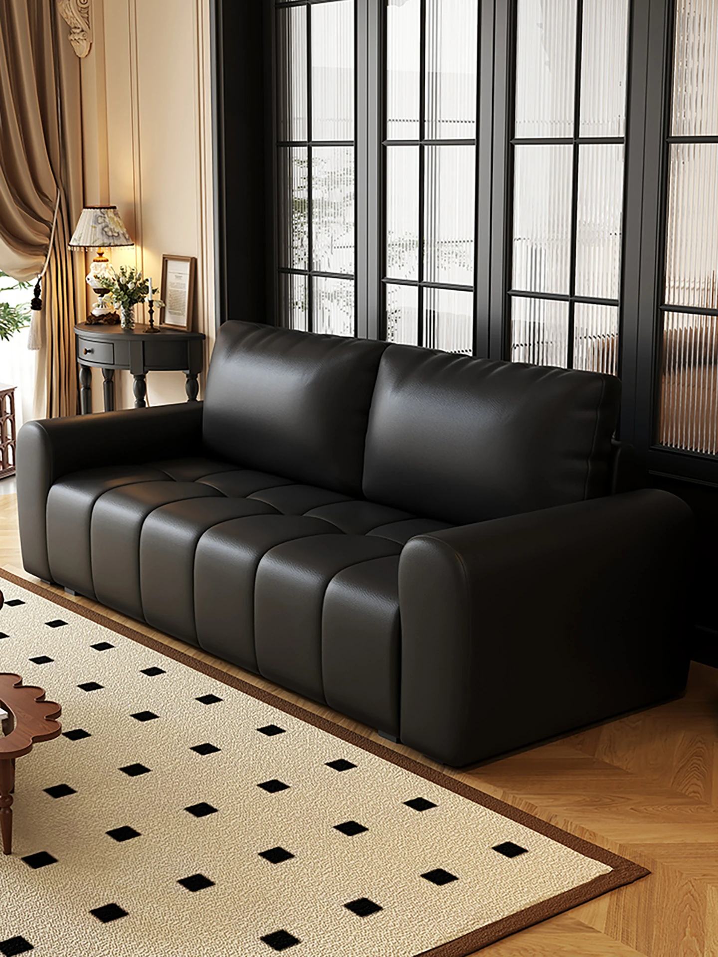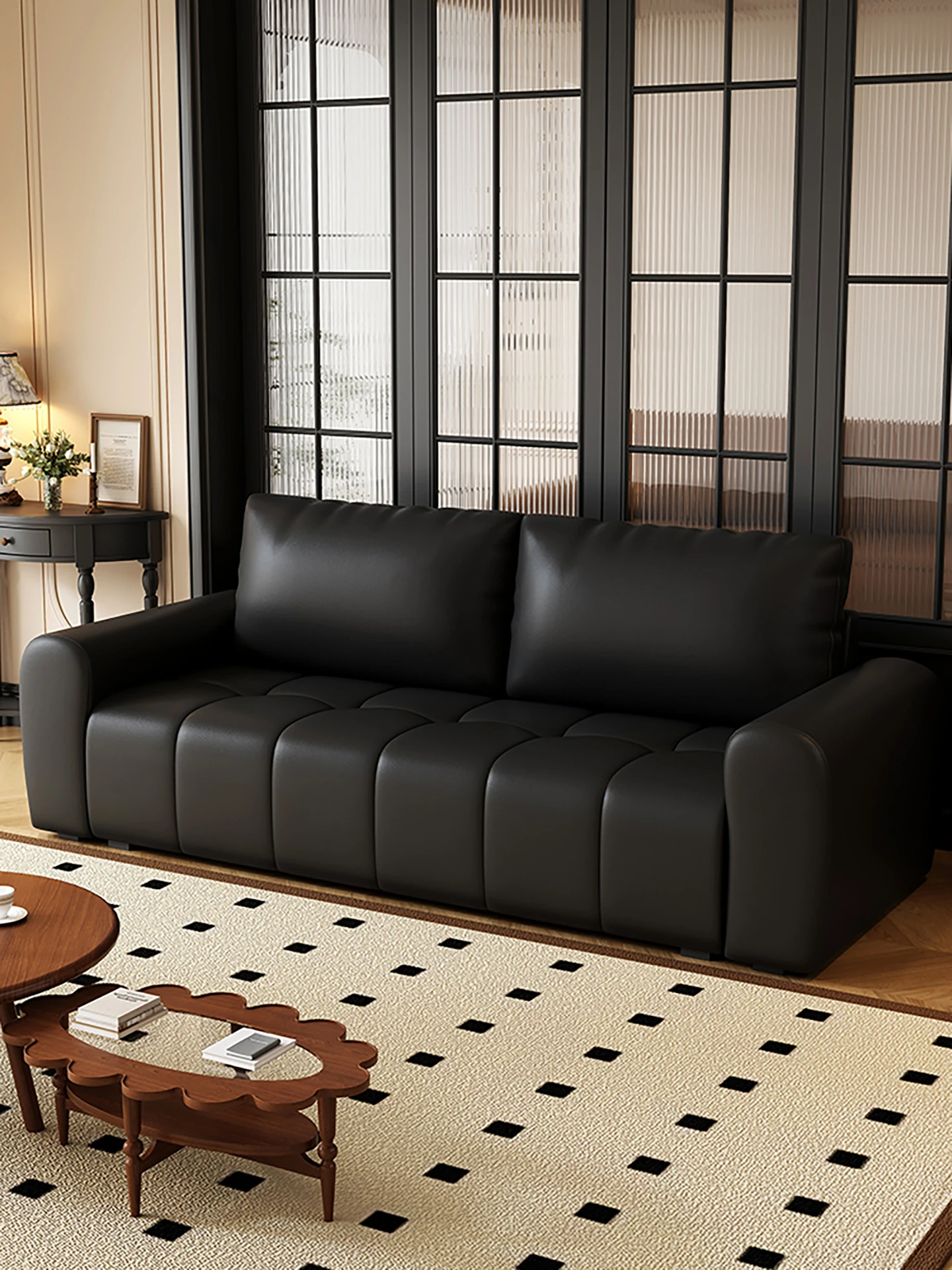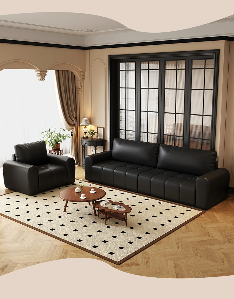 レトロスタイルの小型リビングルーム用ブラックソファ!二人掛け、四人掛けも可能なデザインで、オフィスや販売部の休憩スペースに最適。快適な接客を実現し、スタイリッシュに空間を演出します!
