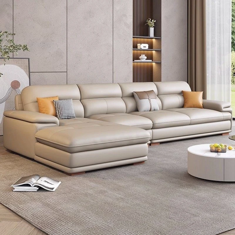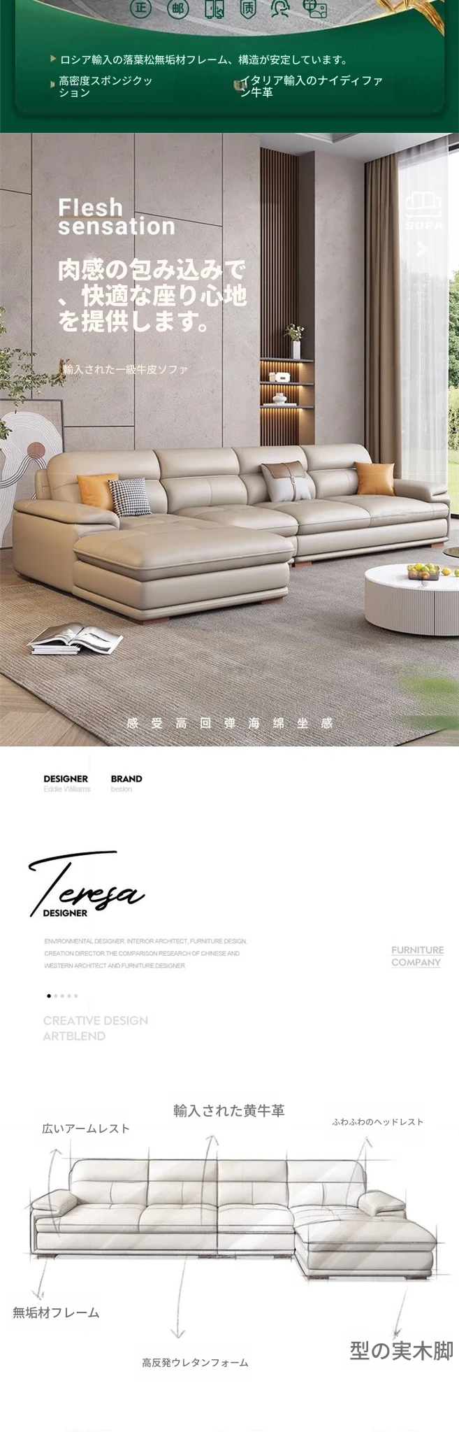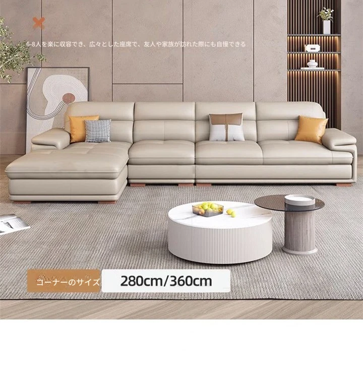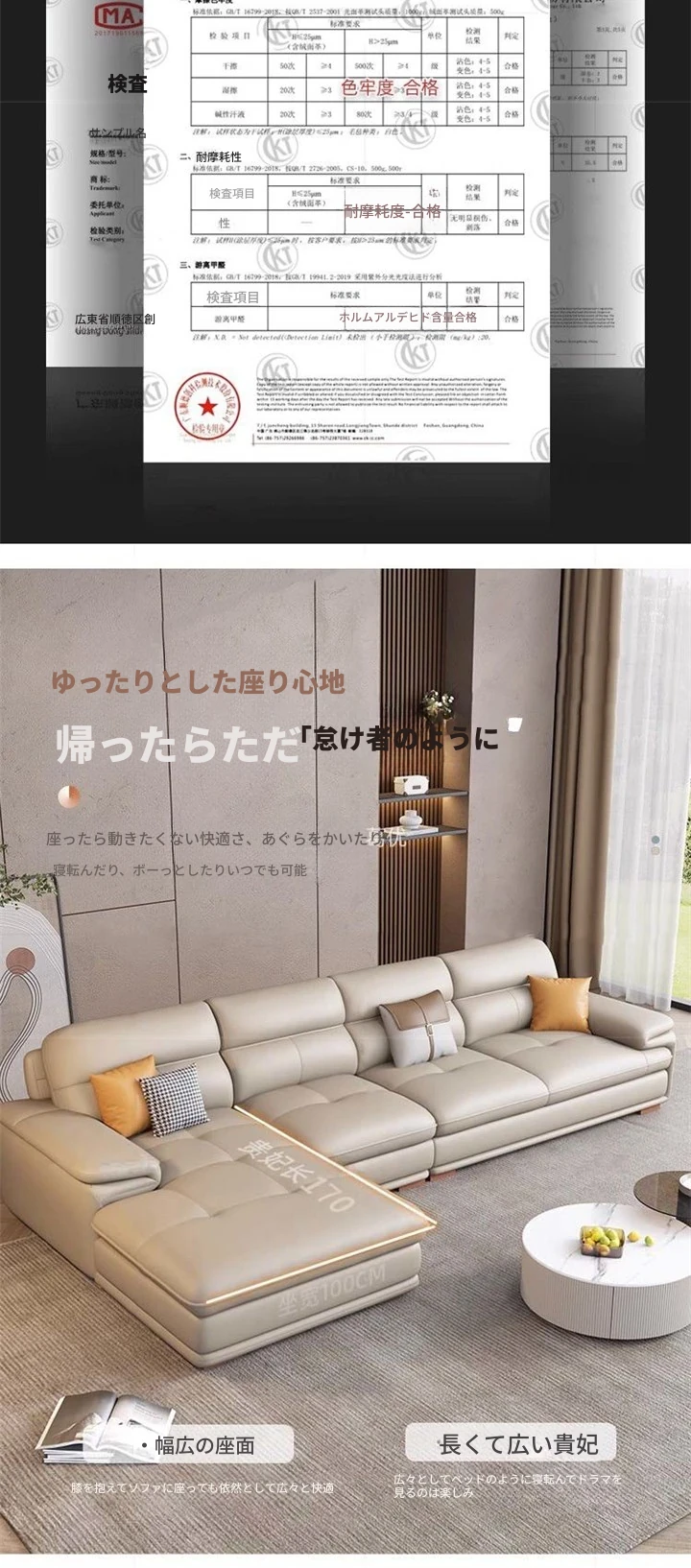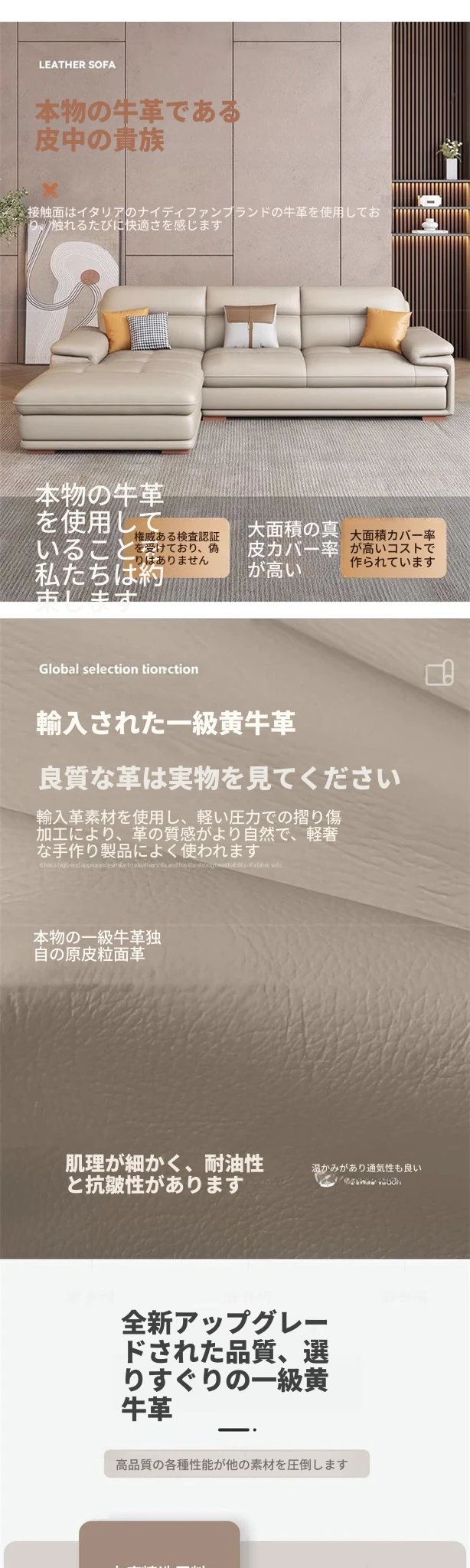 イーシェ現代ミニマリスト人気全包カバー!ナイディーフィン牛皮ソファー、リビングルーム用、貴妃スタイル、ヘッドレスト付き、トップグレードの牛皮使用。スタイリッシュで快適な空間を演出!