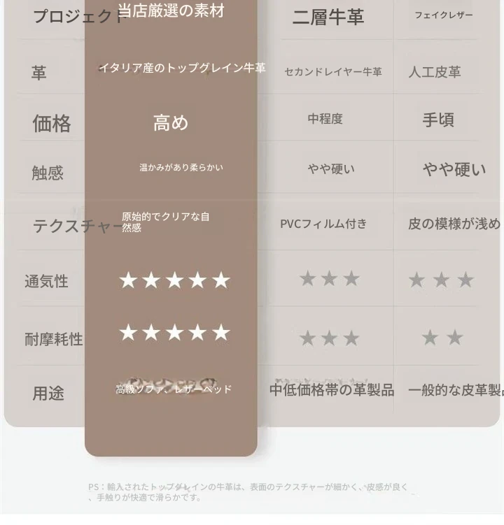 【接触面】ナイディファンの牛革-ラテックスシートソファ