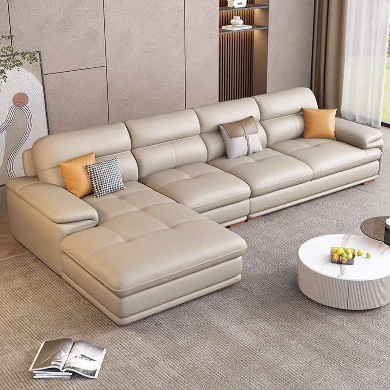 イーシェ現代ミニマリスト人気全包カバー!ナイディーフィン牛皮ソファー、リビングルーム用、貴妃スタイル、ヘッドレスト付き、トップグレードの牛皮使用。スタイリッシュで快適な空間を演出!