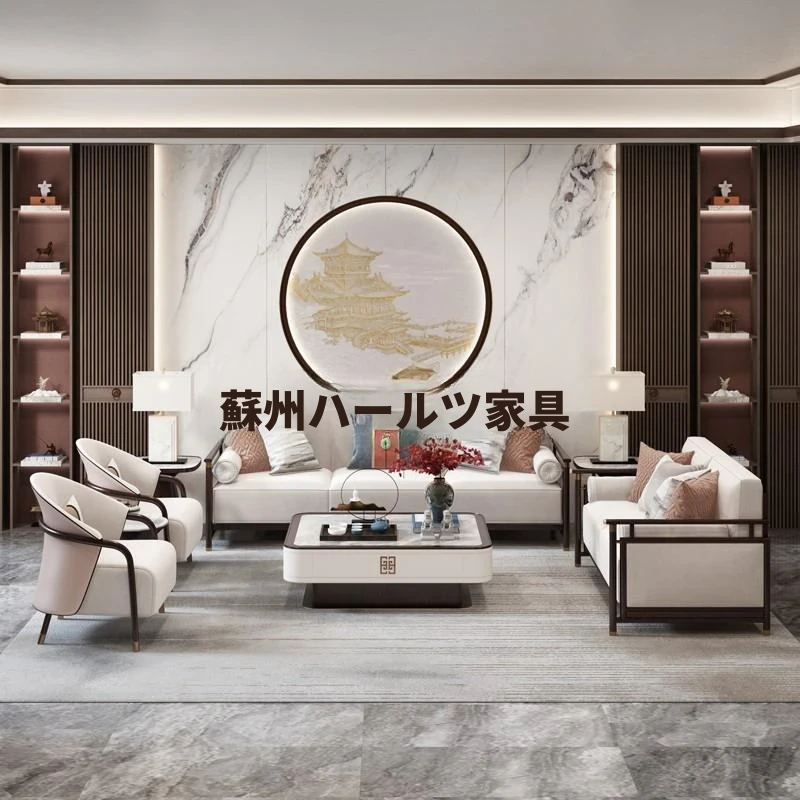 新中式の無垢材ソファセット - モダンでシンプルなデザイン、豪華さを感じるリビング・ヴィラのインテリアに最適!広々とした空間を演出する、中国風の高級家具。あなたの家に優雅な雰囲気をプラス!
